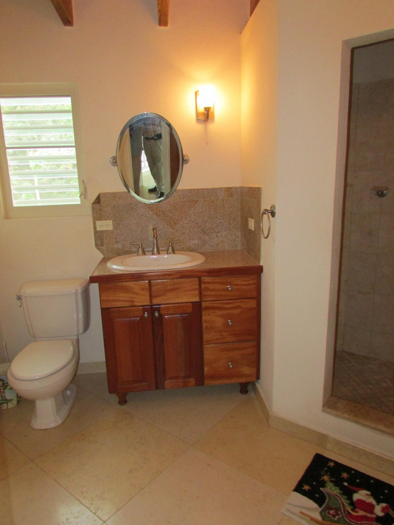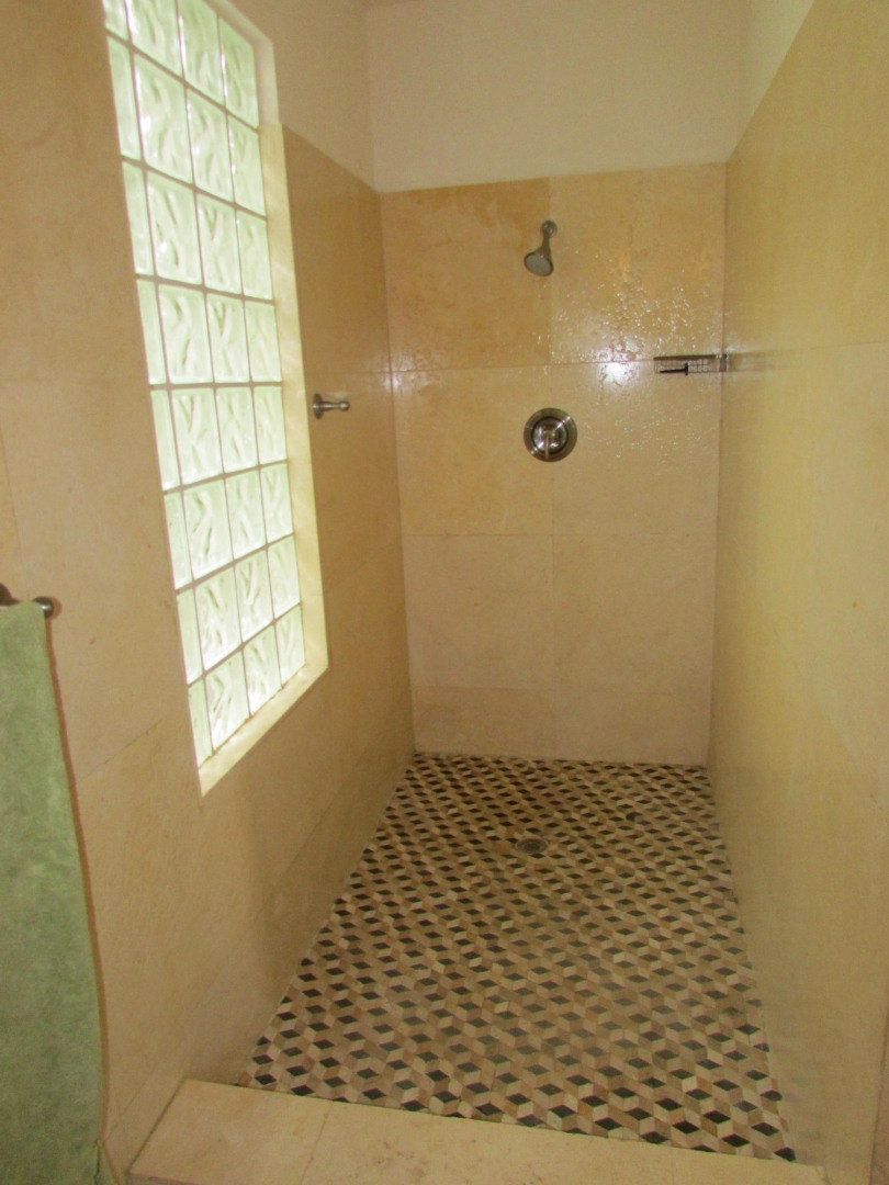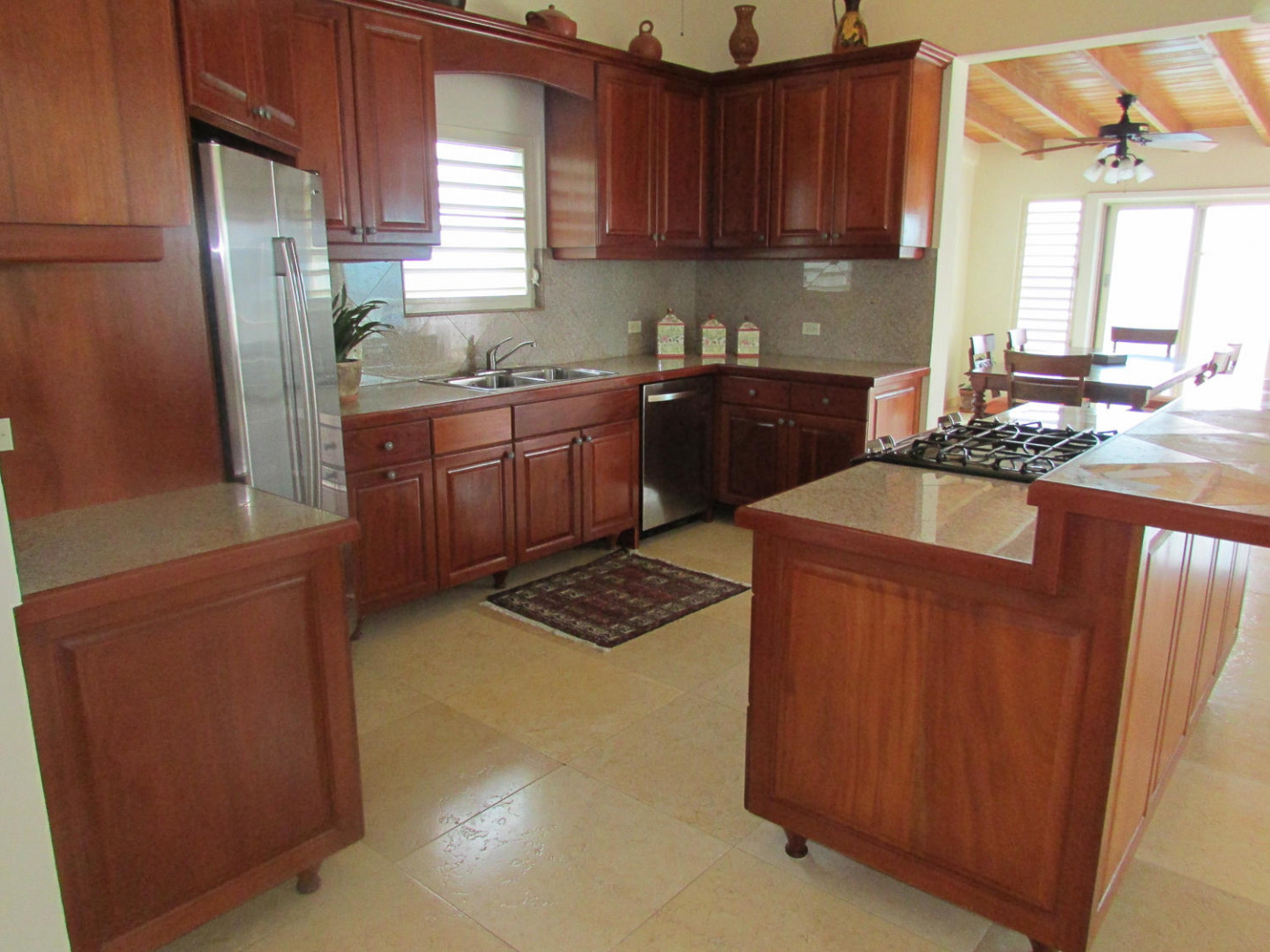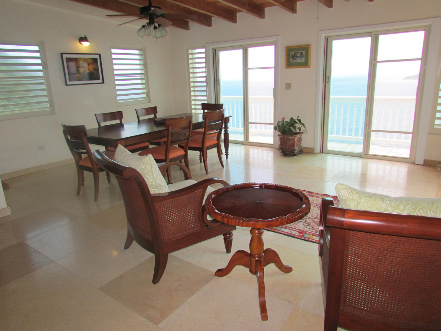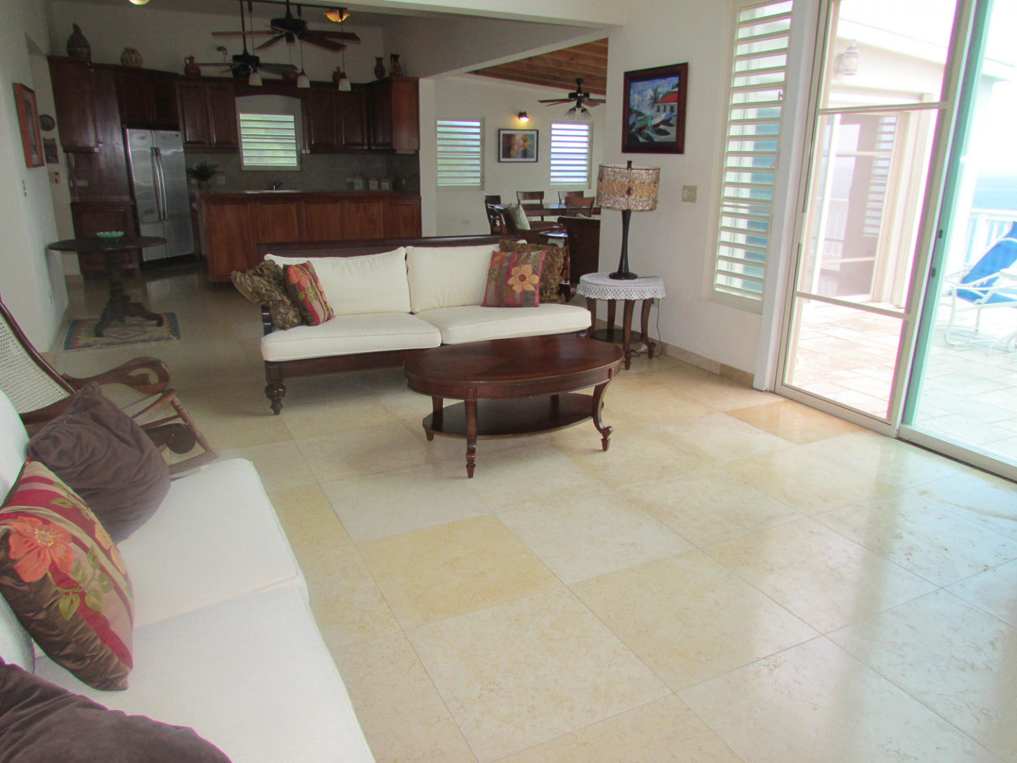 THIS WATERFRONT HOME offers dramatic down-island views and a dramatic cathedral-ceilinged Great Room. Ocean breezes and natural light pour into the Great Room's 2-story windows. Step onto the deck and watch the waves crashing below. Each bedroom has its own bathroom and waterfront balcony. Granite. Limestone tiles. Walking distance to Platform Beach and the spectacular Peterborg Point. See MORE:ADDITIONAL FEATURES... See "As-Built" under DOCUMENTS Tab Poured concrete structure Hurricane impact sliders and windows (except for louvered windows) 24-inch limestone tiles throughout Twelve foot to 25-foot ceilings Mahogany cabinetry Cypress ceilings Roughed-in for split AC units throughout the house Roughed-in apartment below the house Pool (to be tiled) is a monolithic pour with epoxy steel reinforcements Wetland septic system, 85-ft poured concrete trough from the 3X3 septic tank to the filtration bed Two hot water heaters Five cisterns, totalling 40,000 gallons. Owner says he's never bought water. Door handles, stainless steel
