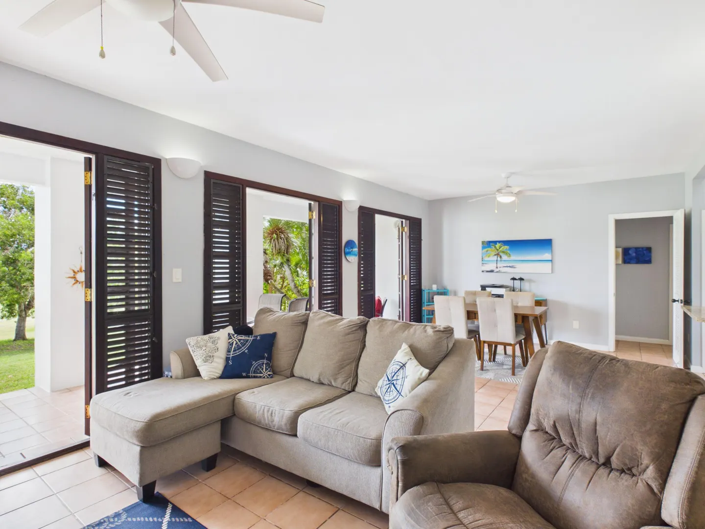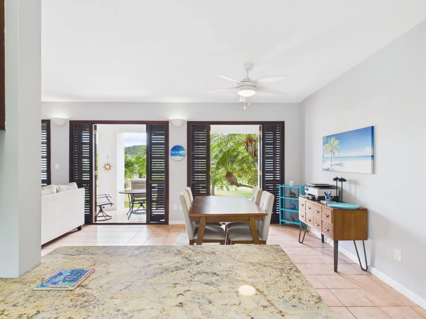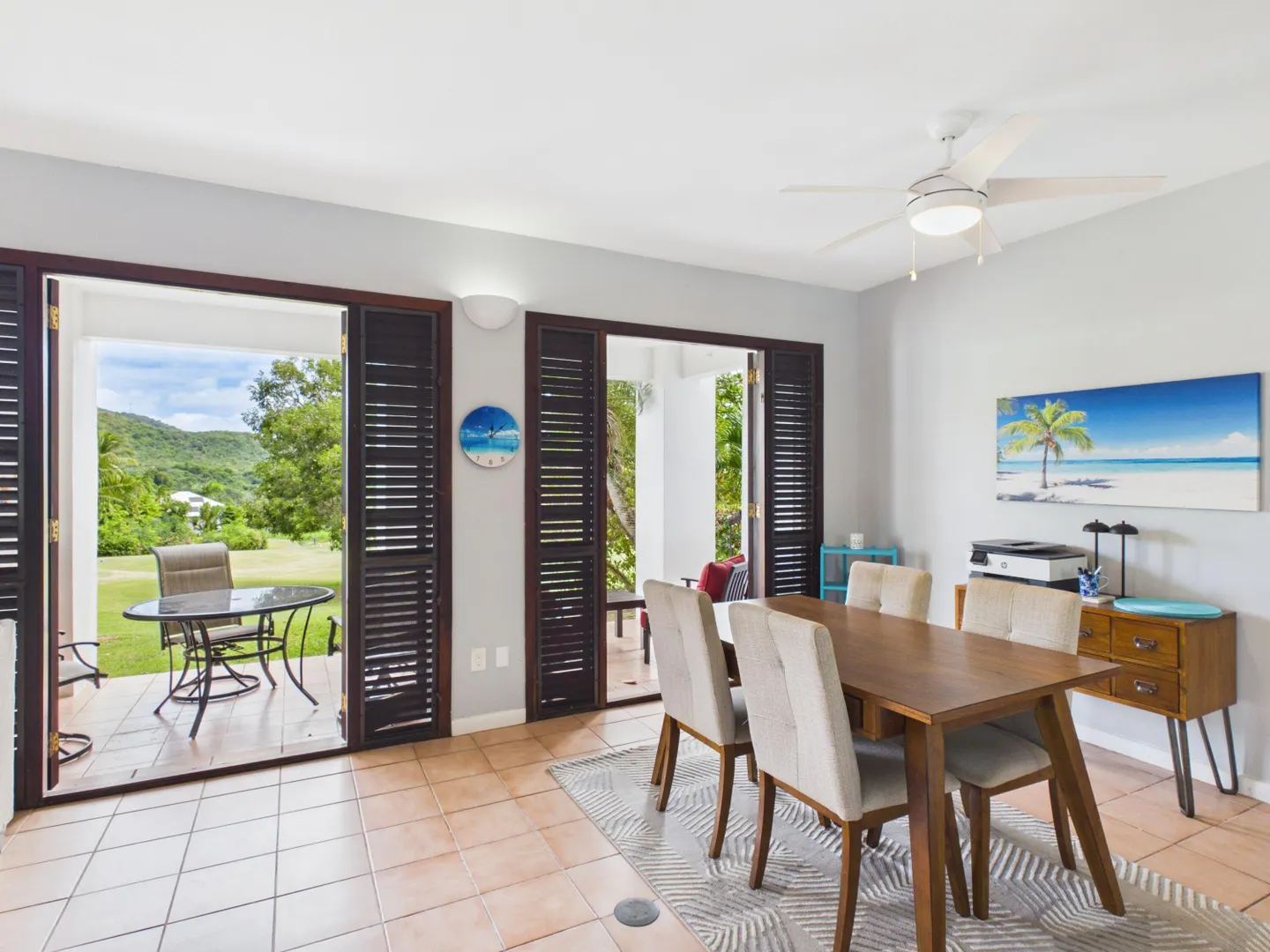 Perfectly positioned on the 2nd Tee Box at Carambola Golf Course, this beautifully maintained condo offers true island living on St. Croix. Enjoy both front and back covered patios, with the backyard opening directly onto the #2 Tee Box. Updated with all new appliances including refrigerator, dishwasher, stove/oven, front-loading washer/dryer, and new water heater. Features include new window screens, landscape lighting, propane grill, new 55'' TV, and 5500-watt portable generator. Completely furnished inside and out. Turn key and move-in ready.