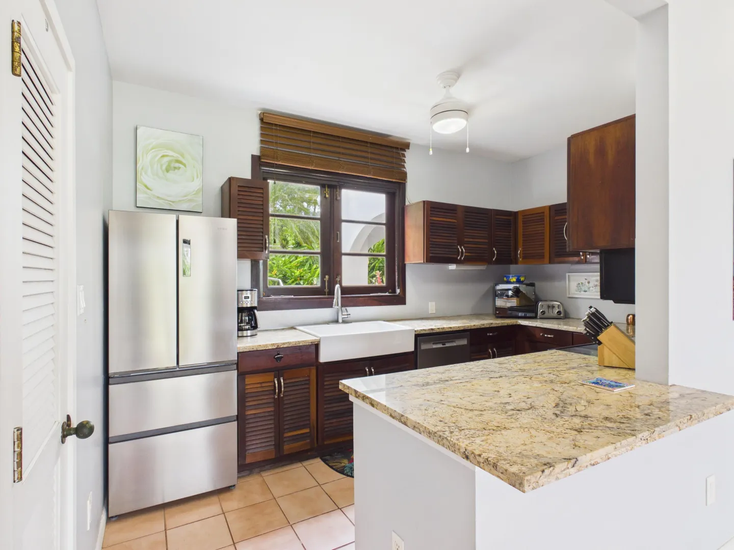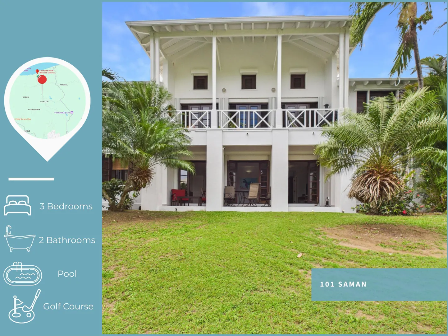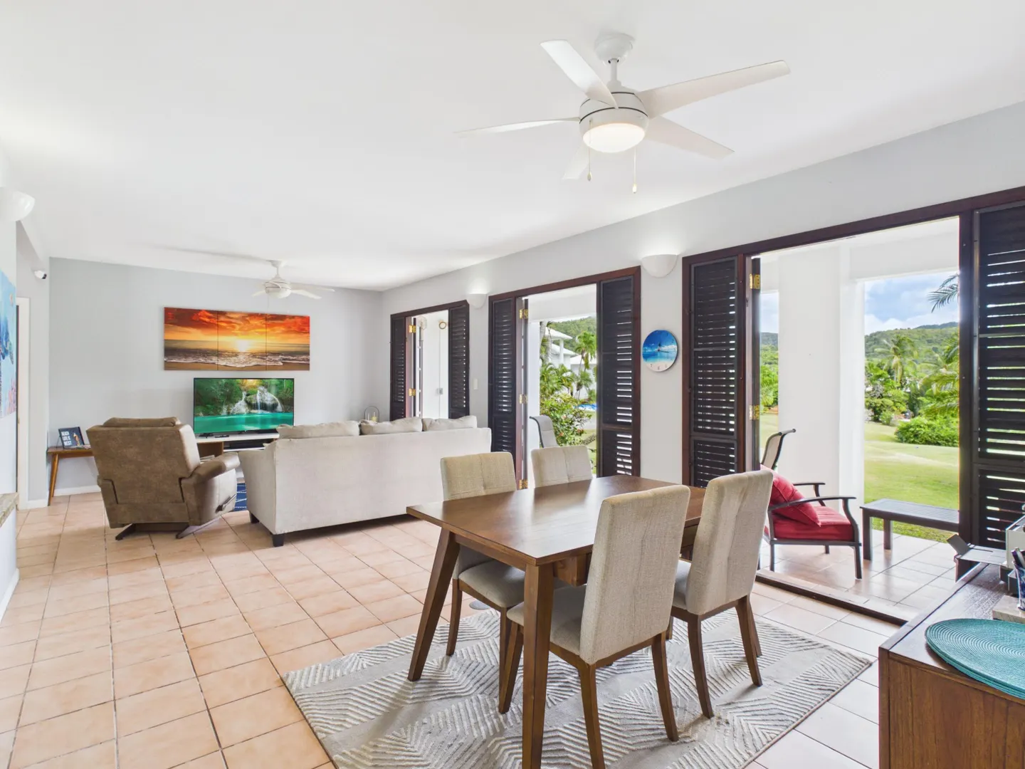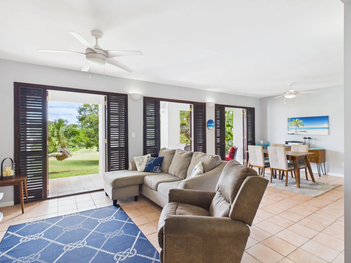 Perfectly positioned on the 2nd Tee Box at Carambola Golf Course, this beautifully maintained condo offers true island living on St. Croix. Enjoy both front and back covered patios, with the backyard opening directly onto the #2 Tee Box. Updated with all new appliances including refrigerator, dishwasher, stove/oven, front-loading washer/dryer, and new water heater. Features include new window screens, landscape lighting, propane grill, new 55'' TV, and 5500-watt portable generator. Completely furnished inside and out. Turn key and move-in ready.