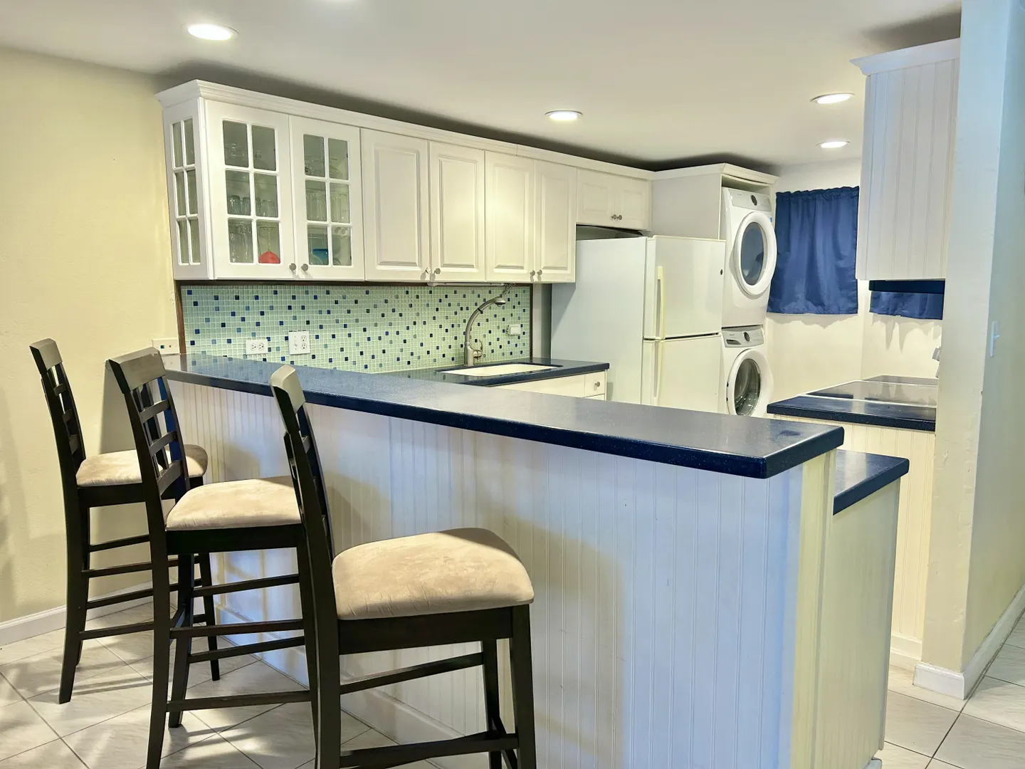 Welcome to your private slice of island serenity; where resort-style living meets everyday convenience. This 2-bedroom, 2-bath waterfront condo is tucked within a lush, palm-filled community that feels worlds away, yet remains just minutes from shopping, dining, and the charm of our historic Christiansted town. With a palm lined drive, tropical landscaping, and a beautiful pool the complex offers a true resort ambiance, perfect for relaxed island living or a peaceful retreat. Inside, the condo features a spacious layout, a large kitchen, and the comfort of an in-unit washer and dryer ideal for full-time living or extended stays.Make the most of the expansive private gallery, where soothing Caribbean sea views and tradewind breezes create the perfect setting for morning coffee or evening dinners dining alfresco. The residence has been thoughtfully maintained and offers an excellent opportunity for a new owner to personalize and enhance the space to their taste, adding value while making it truly their own.