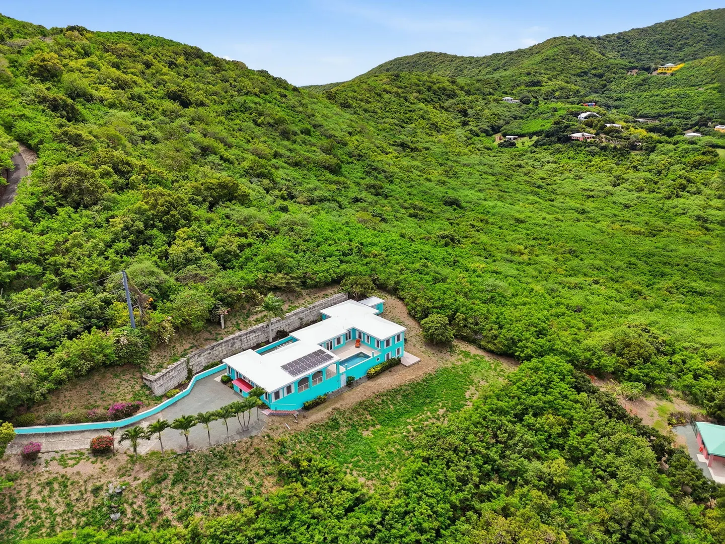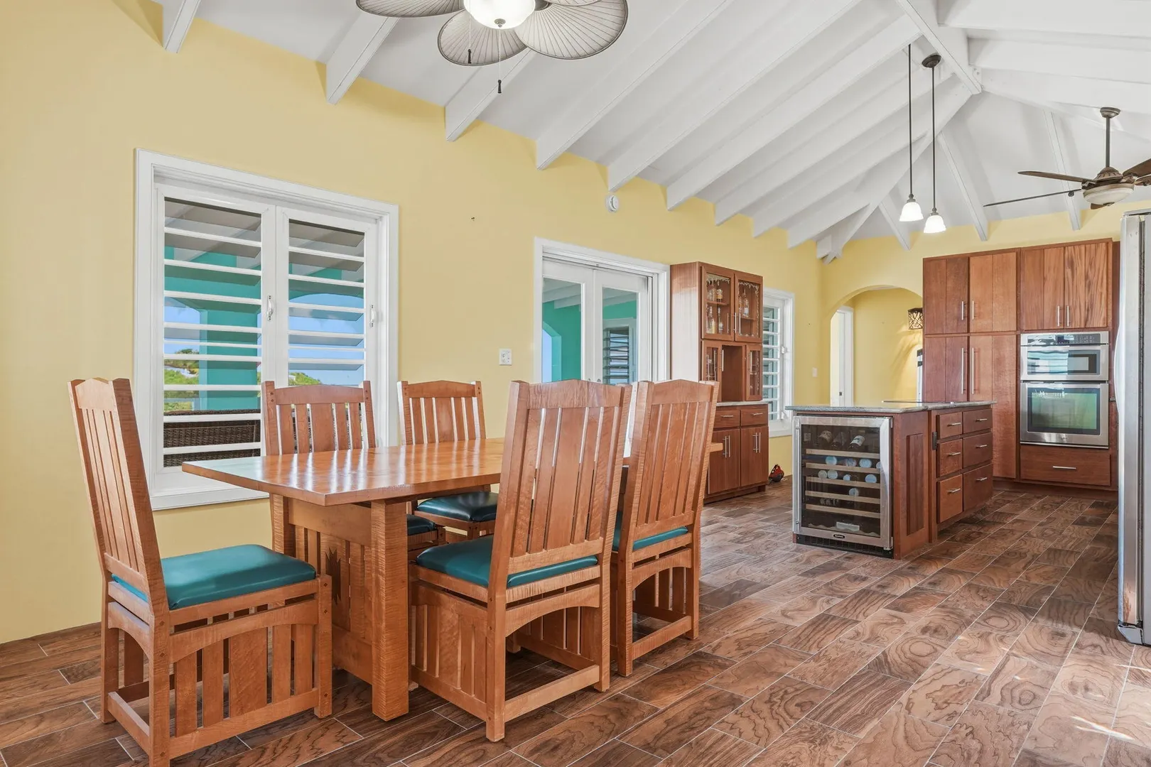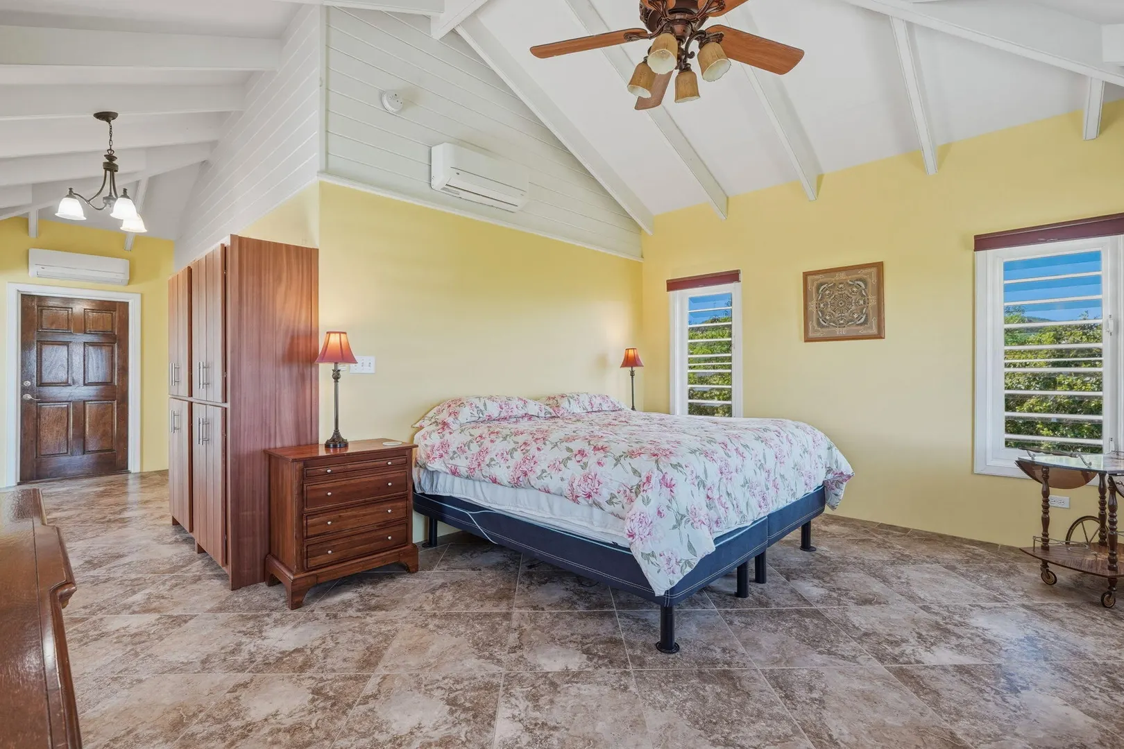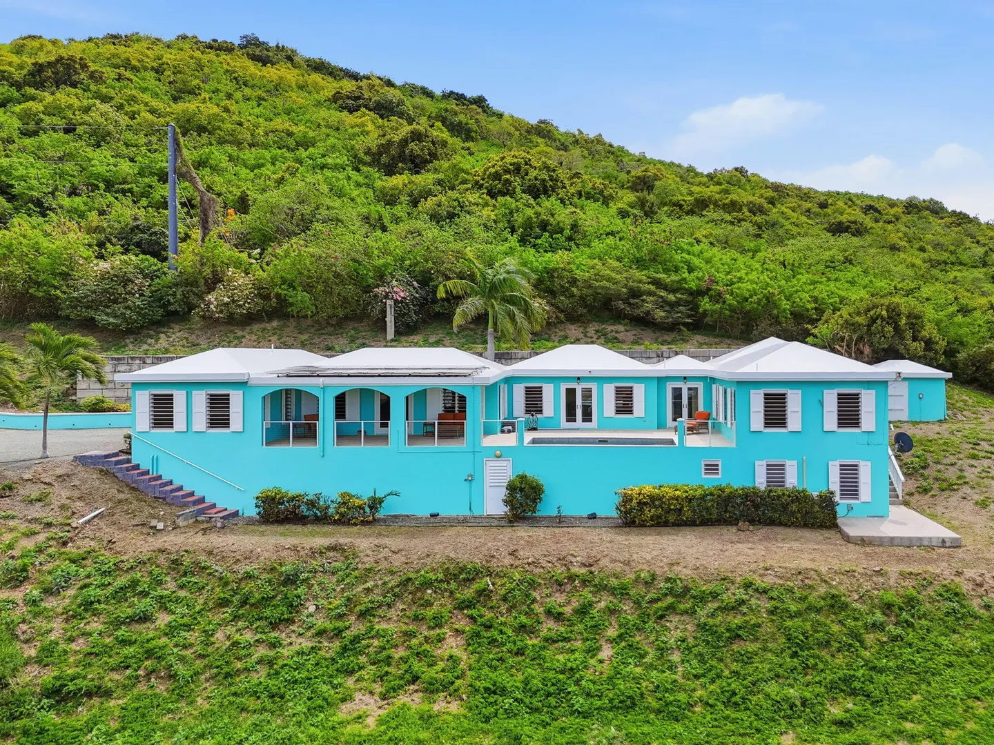 This East End villa has it all -- four bedrooms, four and a half baths, BIG Caribbean Sea views including Buck Island, the Reef Golf Course and St. Croix Yacht Club (The Teague Bay view). The sea view spans 330 degrees north-west to 90 degrees east. The villa has a sea-facing swimming pool, solar with net metering, expansive covered outdoor living space, an ideal layout for easy living and entertaining the Caribbean way, beautiful finishes throughout, a rare two-car garage, granite countertops and custom made solid mahogany cabinets in kitchen and primary bathroom. A sweeping deck spans the entire seaside elevation of the home, with one half shaded by a generous covered gallery for dining and lounging, and the other half sun-drenched for poolside enjoyment.High-impact, hurricane glass French doors with pocket screens open seamlessly from the main living areas to the covered patio and pool deck. Cathedral ceilings enhance the sense of volume and light, while Caribbean-style storm shutters add both charm and function.