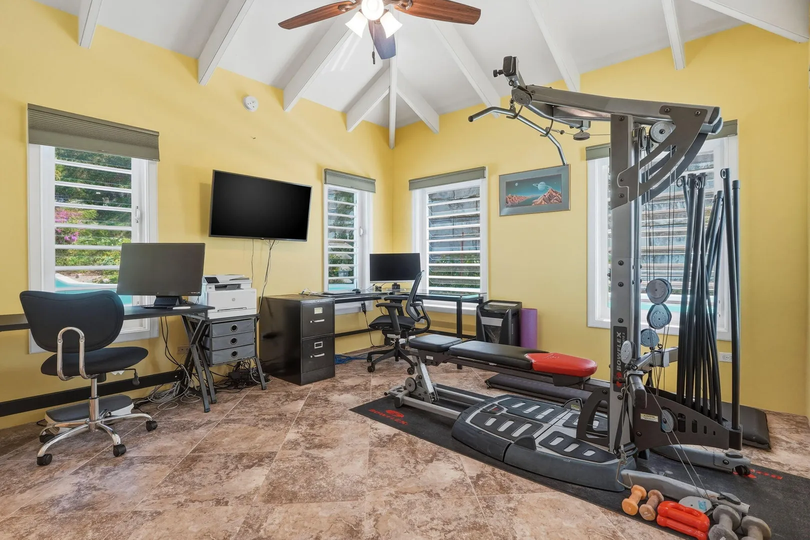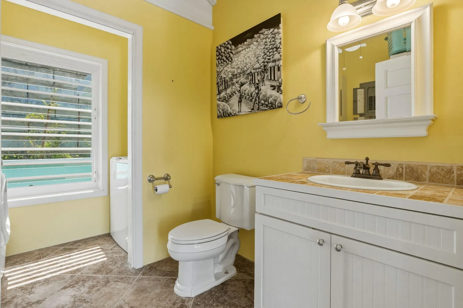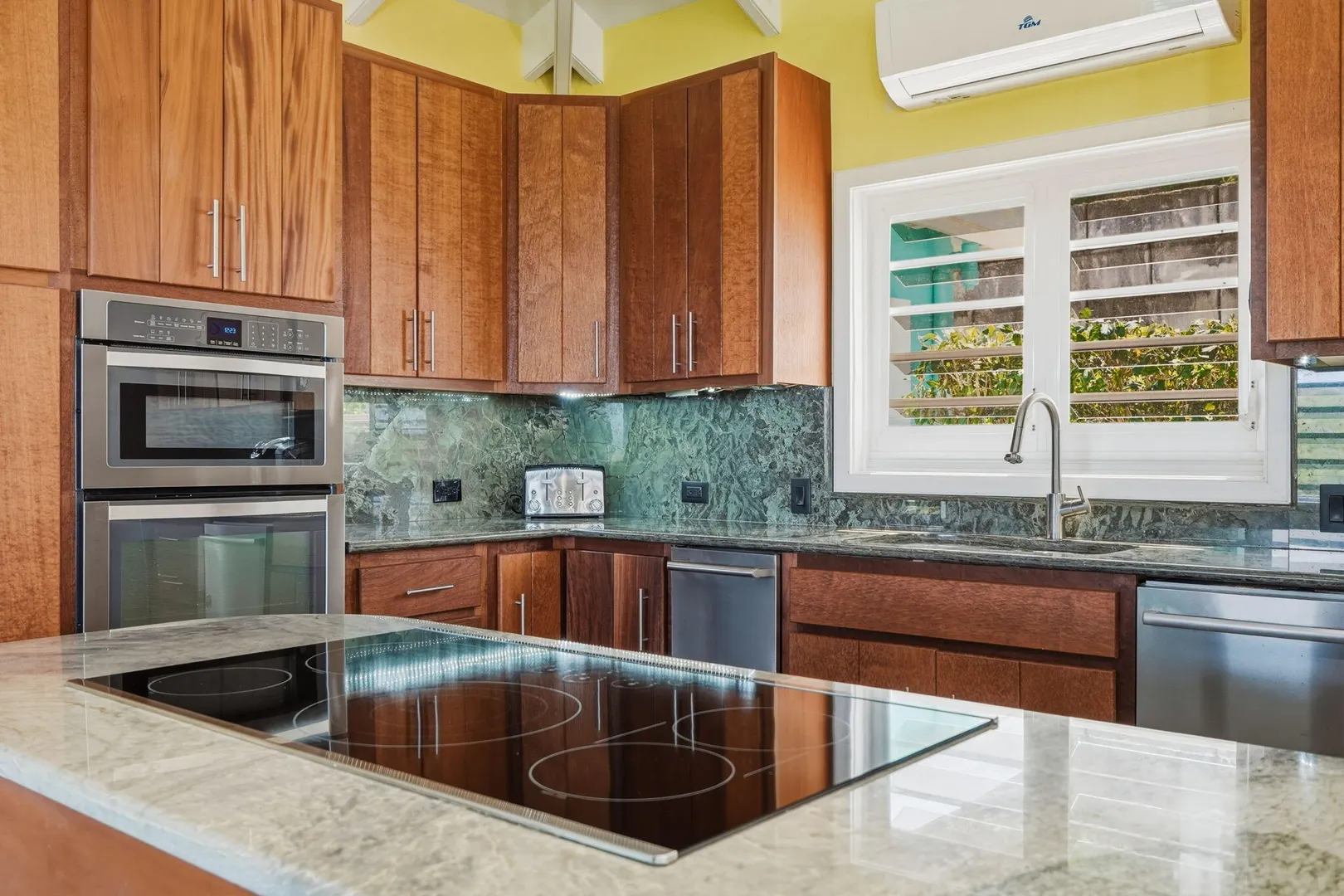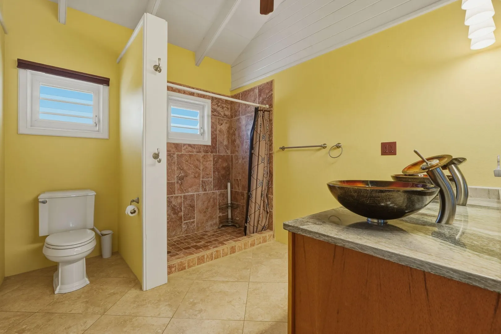 This East End villa has it all -- four bedrooms, four and a half baths, BIG Caribbean Sea views including Buck Island, the Reef Golf Course and St. Croix Yacht Club (The Teague Bay view). The sea view spans 330 degrees north-west to 90 degrees east. The villa has a sea-facing swimming pool, solar with net metering, expansive covered outdoor living space, an ideal layout for easy living and entertaining the Caribbean way, beautiful finishes throughout, a rare two-car garage, granite countertops and custom made solid mahogany cabinets in kitchen and primary bathroom. A sweeping deck spans the entire seaside elevation of the home, with one half shaded by a generous covered gallery for dining and lounging, and the other half sun-drenched for poolside enjoyment.High-impact, hurricane glass French doors with pocket screens open seamlessly from the main living areas to the covered patio and pool deck. Cathedral ceilings enhance the sense of volume and light, while Caribbean-style storm shutters add both charm and function.