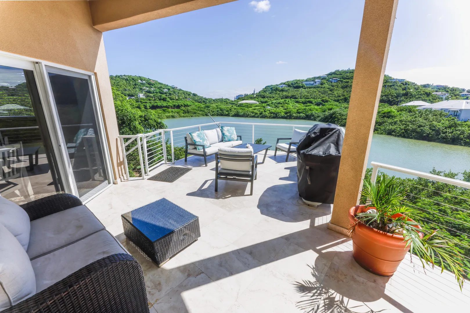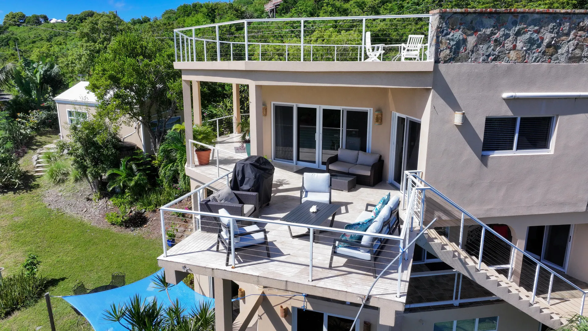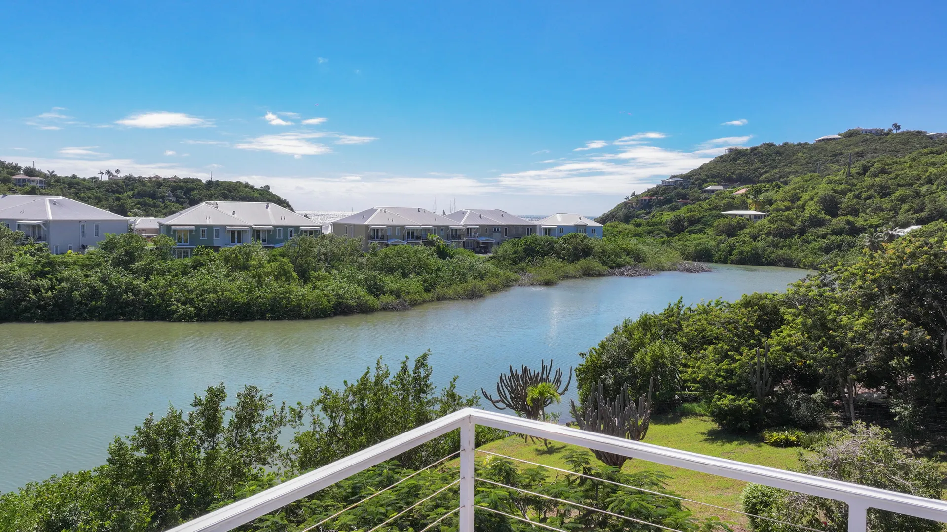Perched gracefully into the hillside of coveted Chocolate Hole, 109A is a refined multi-unit estate offering exceptional sunset views, strong rental performance, and an extraordinary level of mechanical modernization -- a rarity in the St. John market.Framed by one of the island's most expansive and nearly level lawns, this property captures the essence of Caribbean luxury living. From the rooftop terrace, watch golden sunsets melt into the horizon while ducks drift peacefully across the pond below. Gentle tradewinds and the serene location provide both privacy and a peaceful atmosphere -- all less than five minutes from the vibrant heart of Cruz Bay.
