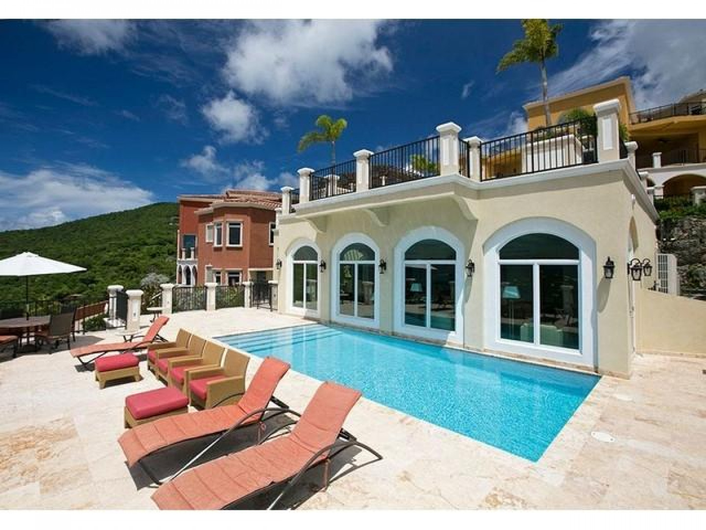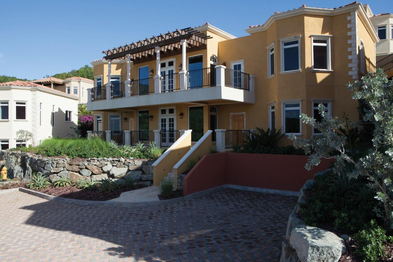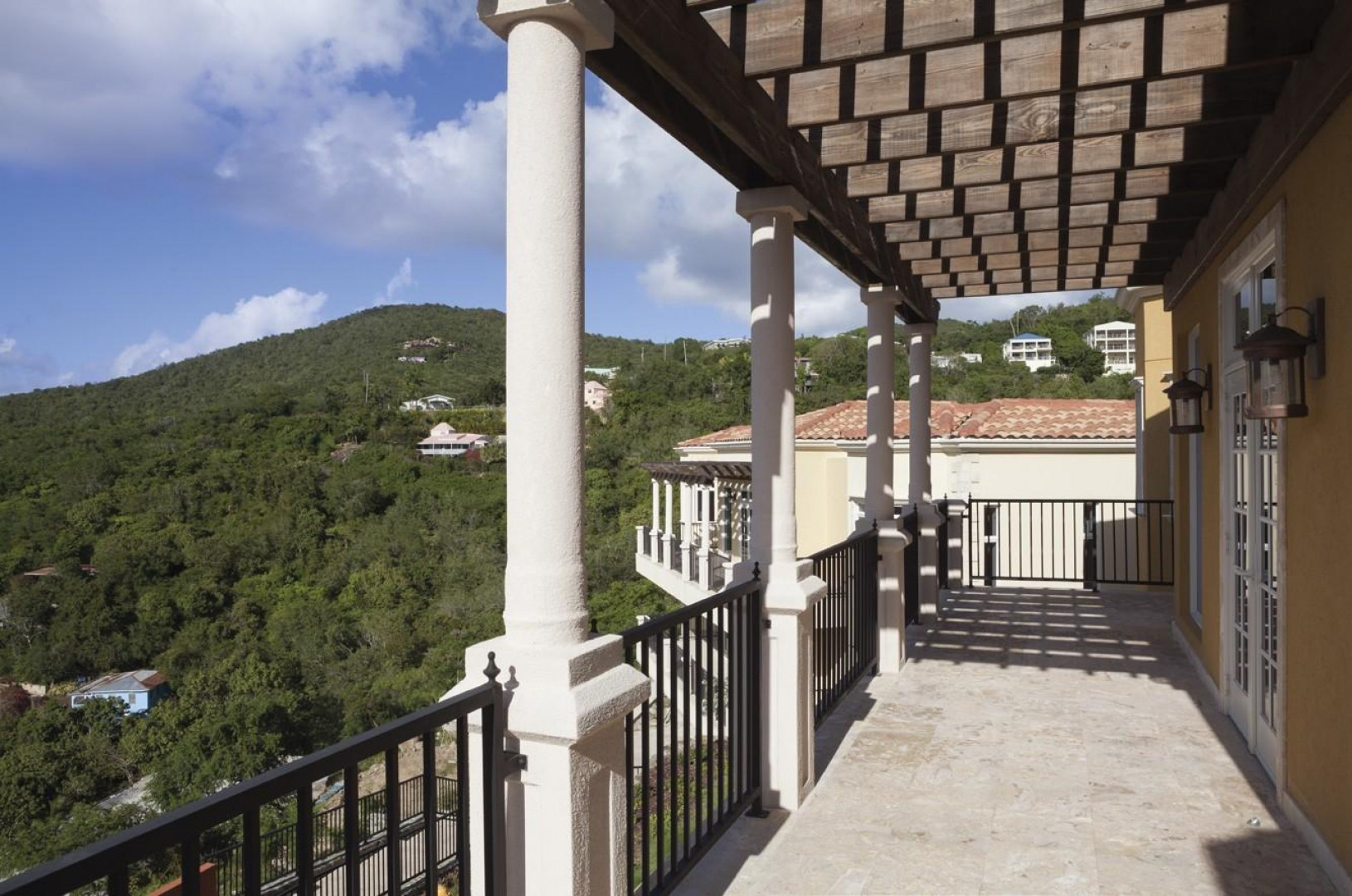 This Italian-inspired resort village is sewn together by cobblestone serpentine roadways bursting with tropical foliage. Eleven Tuscan-style buildings, each with two luxury villas, feature expansive windows, marble flooring and stone-lined kitchens and bathrooms; Sirenusa (pronounced "seer-a-NU-sa"), with its quaint yet sophisticated ambiance offers you the ultimate in gracious home away-from-home experiences. Whether looking out across the sea or the verdant island landscape, each room in the 3 bedroom, 3.5 bathroom Villa Capri has its own island charm. Schedule your next vacation in the Residences at Sirenusa to experience first hand why this property could be your next island home or call your broker to set up a private tour.The balcony at Villa Capri includes a cypress trellis supported by stone column; everything with an Italian touch. Your gourmet kitchen features broad countertops with high quality polished granite surfaces, custom cherry solid hardwood Italian cabinets. Reflecting the refined qualities of an elegant island home, Capri provides generous living areas for family and friends. Finishing touches include natural cypress wood ceilings, spacious mahogany walk-in closets and travertine tile walk-in showers. The clubhouse is an ideal location for business meetings and events. Soak in the sun as you relax by the pool or start your day off in the gym. From the time you drive through the gates of Sirenusa, tucked high in the hills over Cruz Bay, St, John, and you’ll have to catch your breath at the sight of deep ocean blues and sparkling turquoise against a sprawling backdrop of Caribbean islands. By night, as those islands turn a stony grey, dusted by glimmering lights, you’ll know, for certain, that you have found the perfect vacation villa.