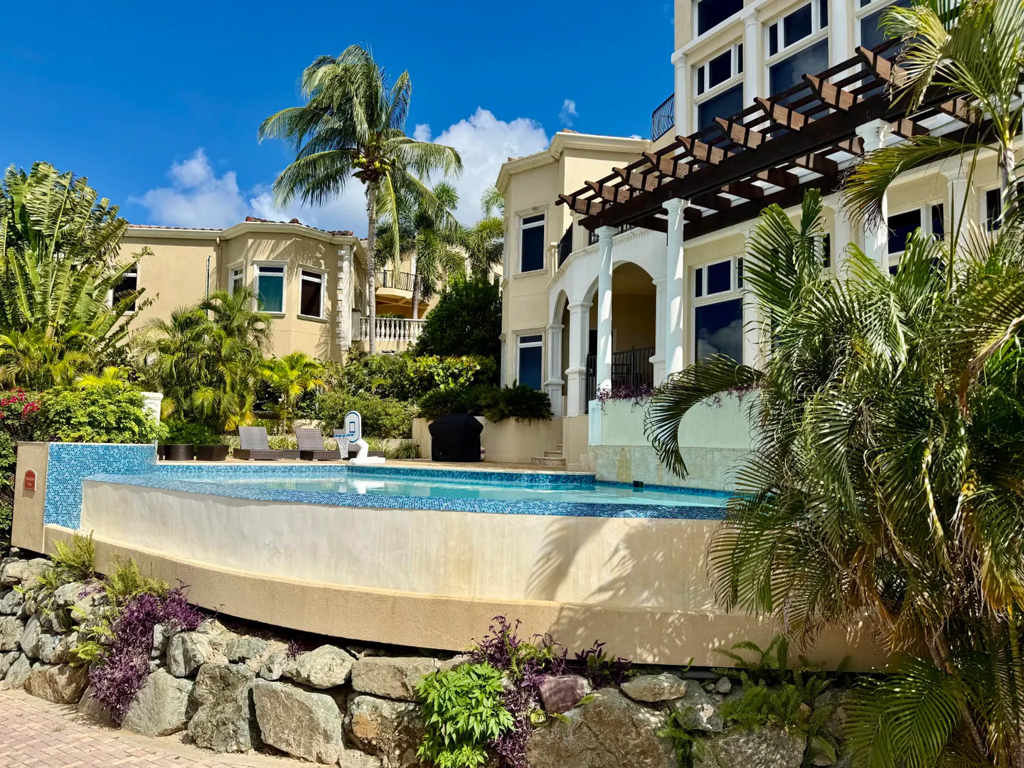 Offering all the luxury accommodations you need for your island home, Villa Frangipani is recently refreshed: New kitchen, updated bathroom vanities, fresh paint throughout, and a refinished pool! Property is being sold fully furnished and provides ample amounts of space for families and friends to stay with plenty of privacy. This 3 bedroom, 3.5 bathroom unit was designed for island comfort and is completely functional. This condo has a private pool and is a perfect St. John vacation rental. The development features an onsite gym, clubhouse, security, and professional landscaping. The evening sunsets over St. Thomas will take your breath away. Listing agent is a licensed Virgin Islands real estate agent.