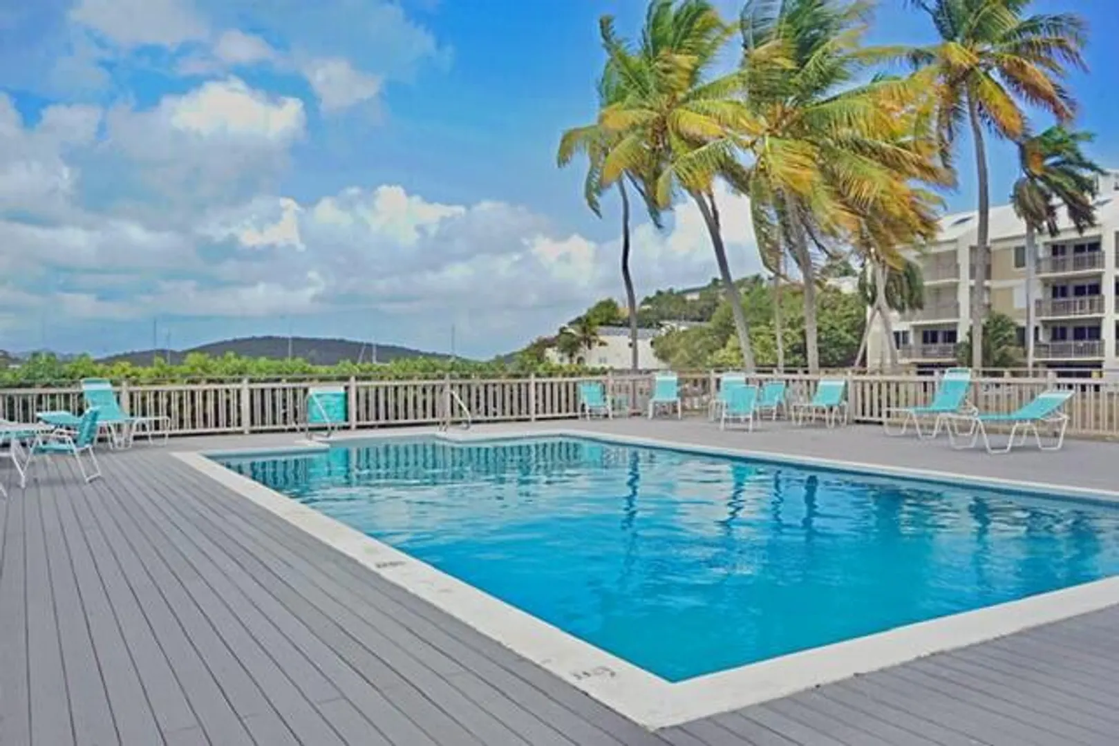 Rare opportunity to buy a walk in unit in this complex with a beach, pool and Tennis courts. Located close to Restaurants and shopping in Red Hook and St John Ferry. Fully furnished, this unit just came out of short term rental. Move in ready or rent it. Easy parking, generator on site and low condo fees.