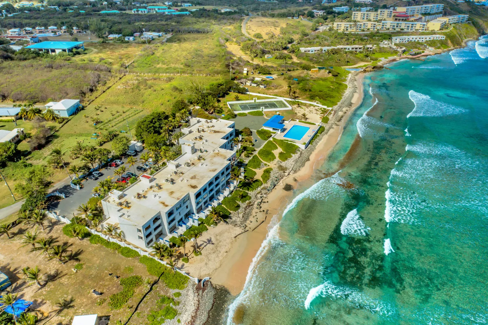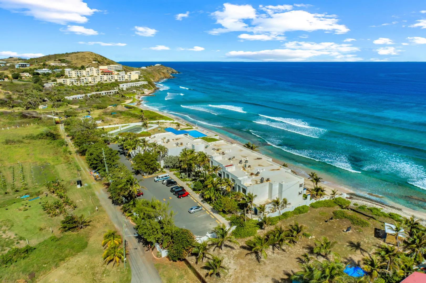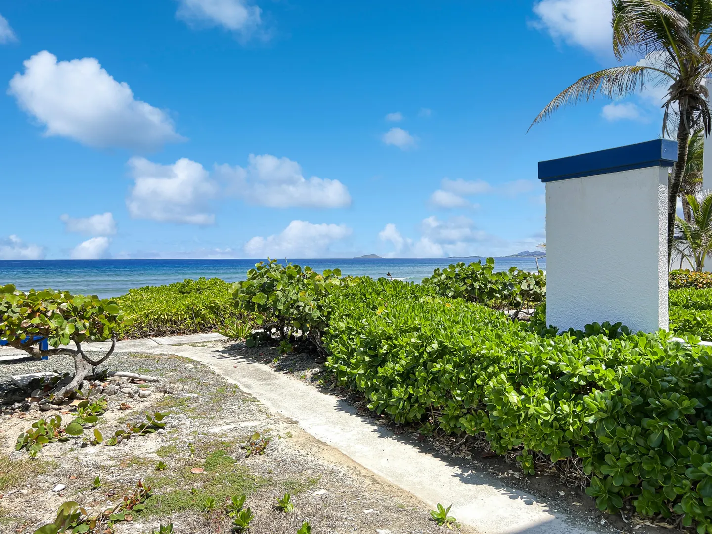Do you dream of stepping from your condo directly onto the sand while gazing at the azure Caribbean Sea? This could be the condo of your dreams! You'll see Buck Island, the neighboring islands, & countless shades of beautiful blue! Drift to sleep with the peaceful sounds of the waves. This lovely 2 bedroom 2 bathroom condo is an established vacation rental, & features new accordion shutters on the sliders, an enclosed gallery, & a sunny seaside patio. Central AC gives a touch of luxury. The complex has a diesel generator. This end unit is closest to the large pool with a pool deck, common area & coin op laundry. Access is either by a short staircase, or from parking lot, around the building on a paved walkway to the patio with just one step up. Small pets allowed, board approved.