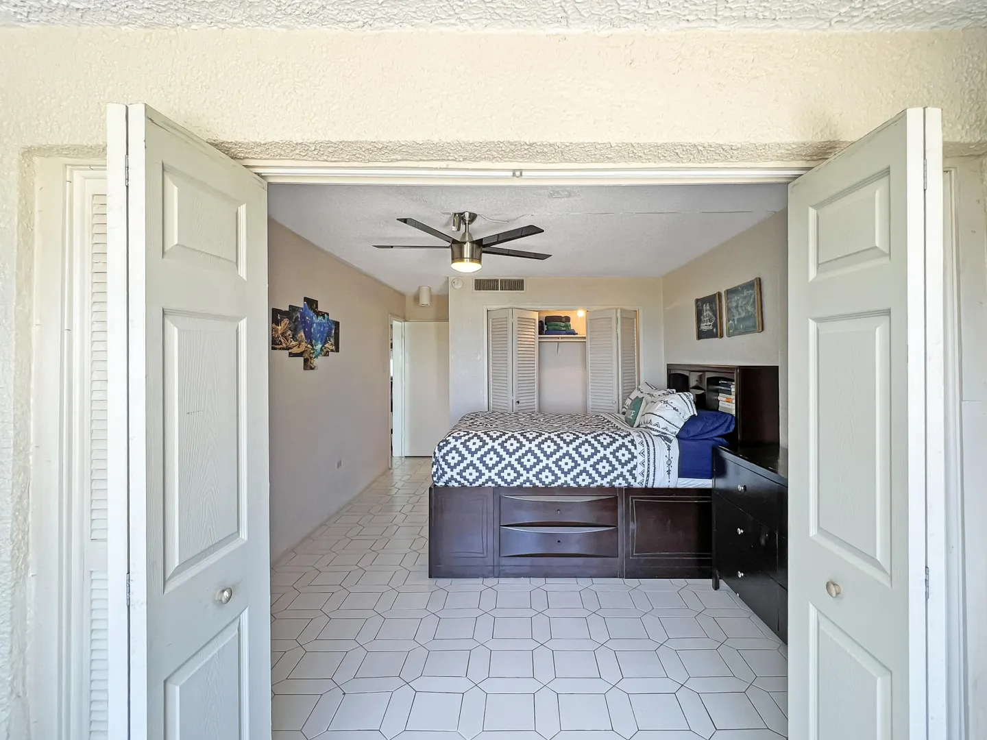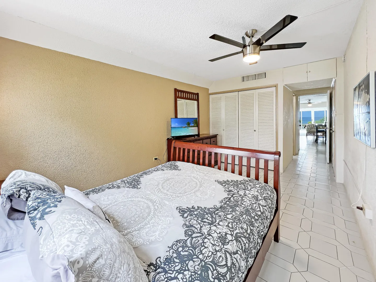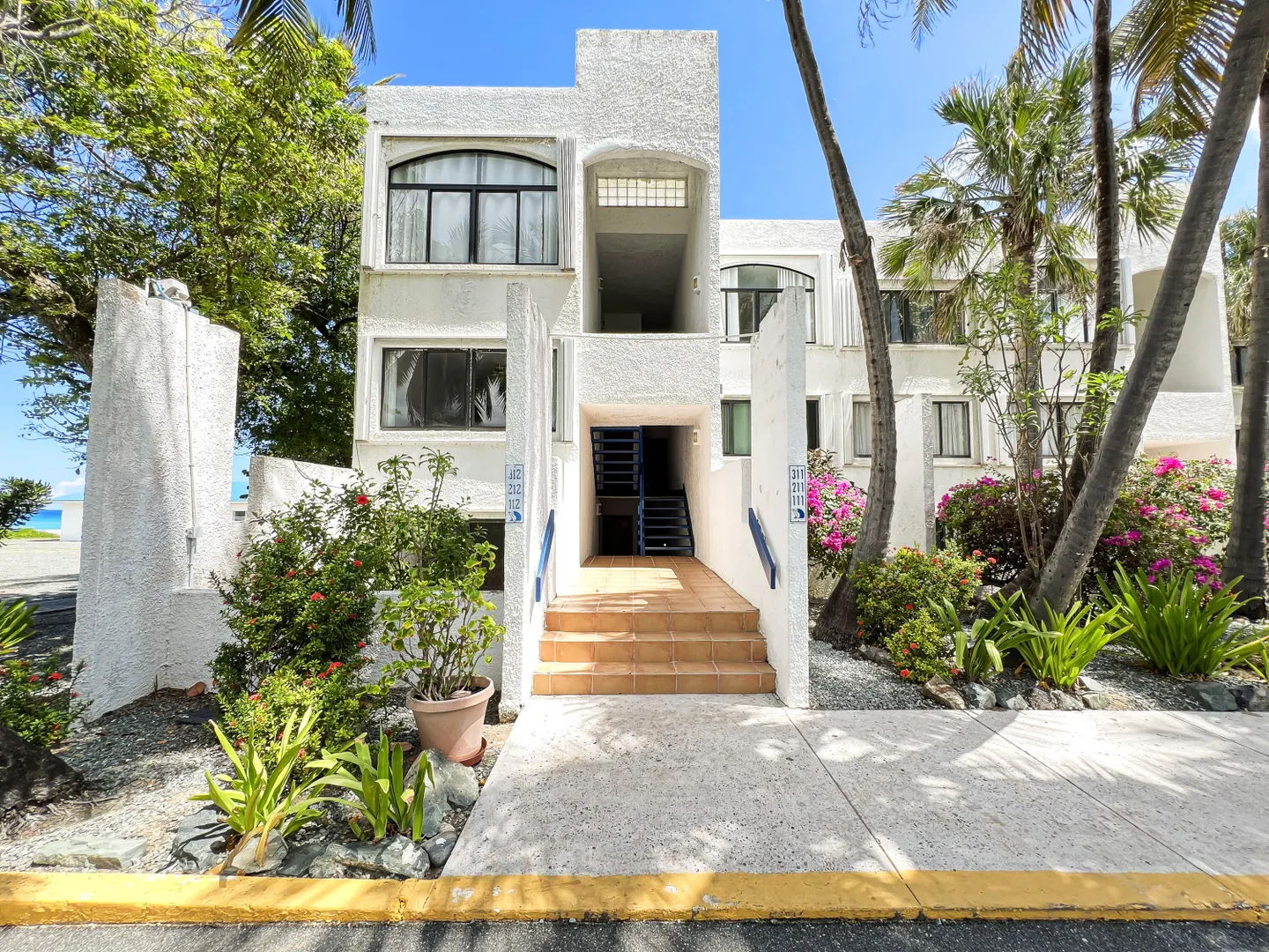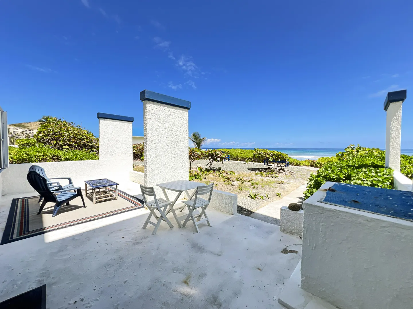 Do you dream of stepping from your condo directly onto the sand while gazing at the azure Caribbean Sea? This could be the condo of your dreams! You'll see Buck Island, the neighboring islands, & countless shades of beautiful blue! Drift to sleep with the peaceful sounds of the waves. This lovely 2 bedroom 2 bathroom condo is an established vacation rental, & features new accordion shutters on the sliders, an enclosed gallery, & a sunny seaside patio. Central AC gives a touch of luxury. The complex has a diesel generator. This end unit is closest to the large pool with a pool deck, common area & coin op laundry. Access is either by a short staircase, or from parking lot, around the building on a paved walkway to the patio with just one step up. Small pets allowed, board approved.
