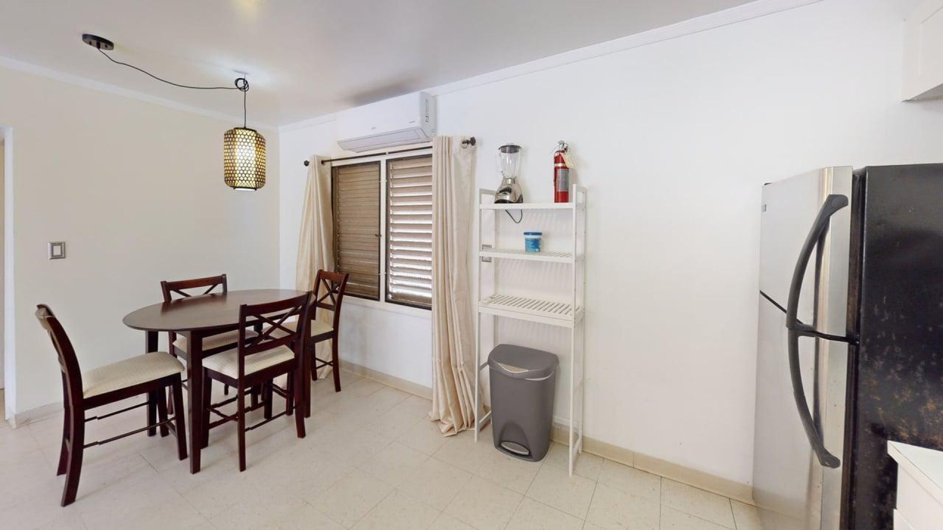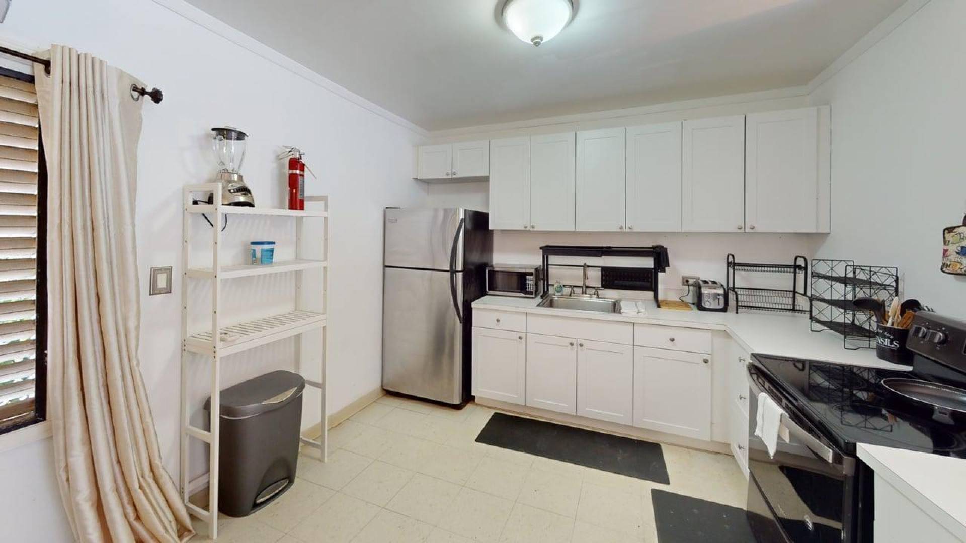 This 720 sq. ft. apartment at 114 Queens Ridge offers a well-designed living space with a single bedroom and bathroom. The layout efficiently utilizes the available area, providing a comfortable living environment. The primary bedroom, measuring 150 sq. ft., features built-in closets and ample natural light through louvered windows. The living room serves as the heart of the home, with a modern entertainment center and stylish shelving units. Large sliding glass doors lead to a private patio, extending the living space outdoors and allowing natural light to flood the interior. The kitchen, while compact, is well-equipped with stainless steel appliances, white cabinetry, and ample counter space. Pool just steps away. Make this your rental today.