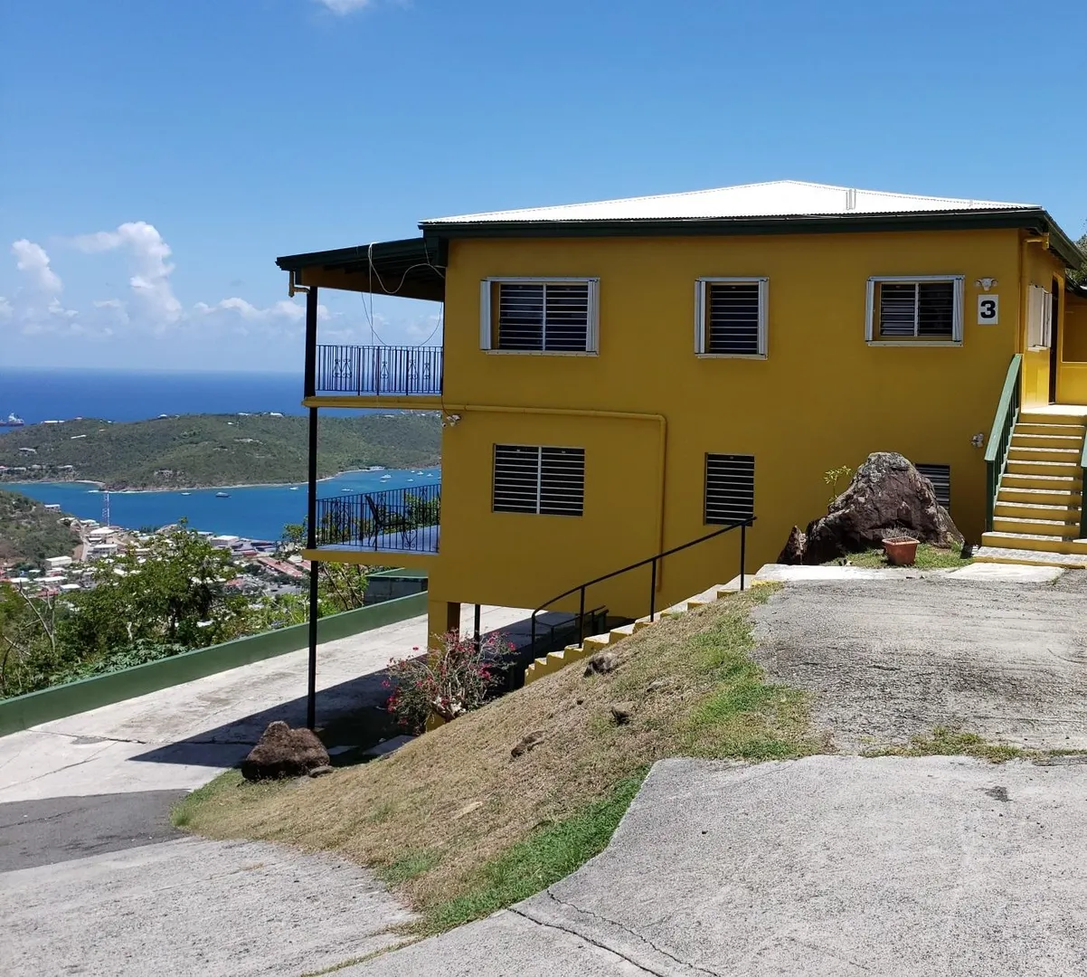 SPACIOUS 2 bedroom 2 bath condo. Enjoy the beautiful views of Charlotte Amalie Harbor and the Caribbean breezes from your 40 foot long porch. It has a large kitchen, generator, 2 COVERED parking spaces, plenty of room for friends to park and locked exterior storage. LOW condo fees and no water fee! Pets allowed with board approval