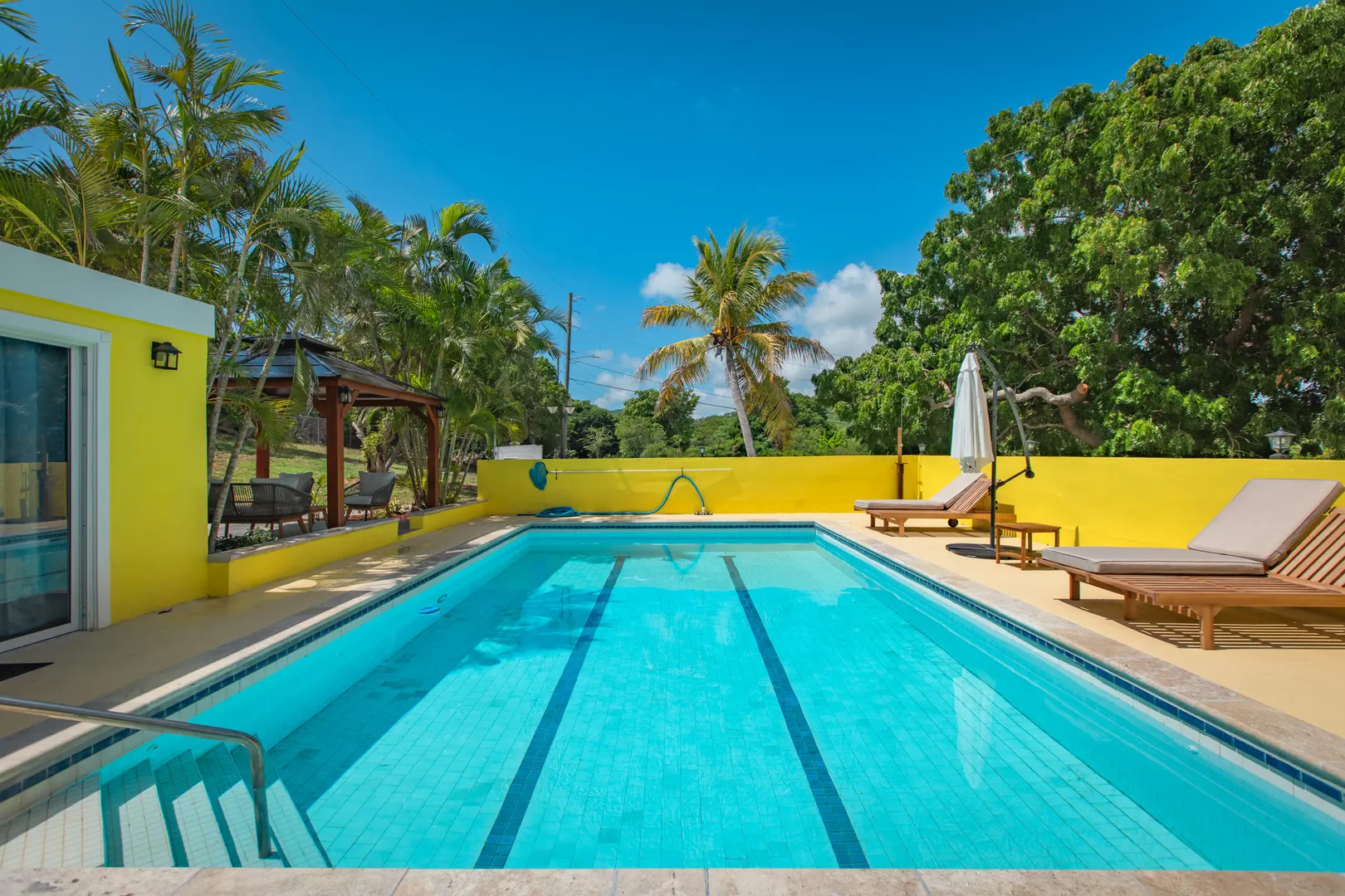 For Rent: Fully Furnished Luxury Estate - 12 Tipperary, East End, St. CroixExperience island living at its finest in this beautifully remodeled and fully furnished estate on the East End of St. Croix. Situated on nearly one acre across three fenced and gated plots, this private residence offers luxury, space, and style--just minutes from stunning beaches, restaurants, and Christiansted town.Main House Features:3 bedrooms, 3.5 bathroomsApproximately 2,400 sq. ft. of interior spaceCathedral ceilings and open-concept livingFully remodeled in 2023Furnished with over $100,000 in high-end furniture and decorModern kitchen and baths with premium finishesOutdoor Living:Over 1,200 sq. ft. of outdoor living and entertaininExperience island living at its finest in this beautifully remodeled and fully furnished estate on the East End of St. Croix. Situated on nearly one acre across three fenced and gated plots, this private residence offers luxury, space, and stylejust minutes from stunning beaches, restaurants, and Christiansted town.