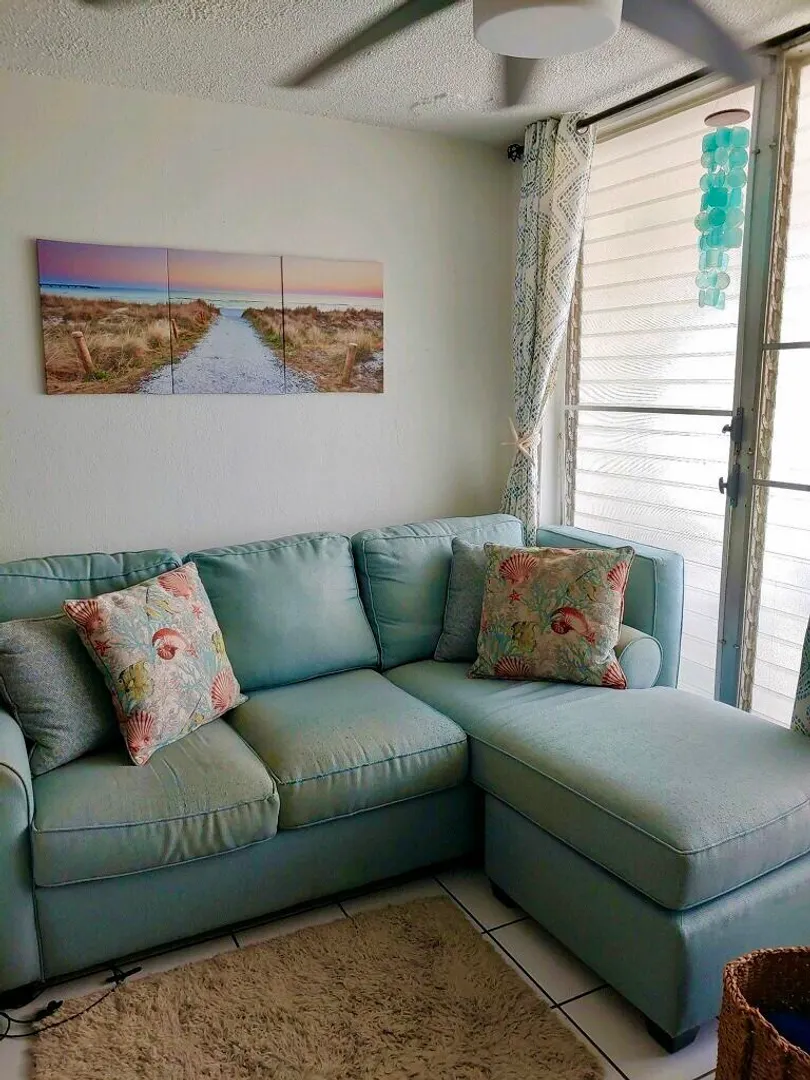 This bright and airy efficiency is located in a gated complex close to town, beaches, and public transportation. Recent renovations include new tile and granite in the kitchen and bath, and a lovely barn door. Second floor location provides a great view from the private patio perfect for enjoying your morning coffee, or afternoon cocktail. Here is your chance to have your own vacation home in St Croix, or use as a vacation rental for extra income.