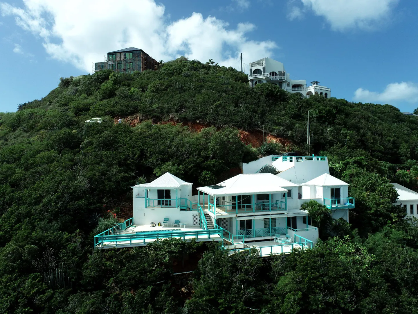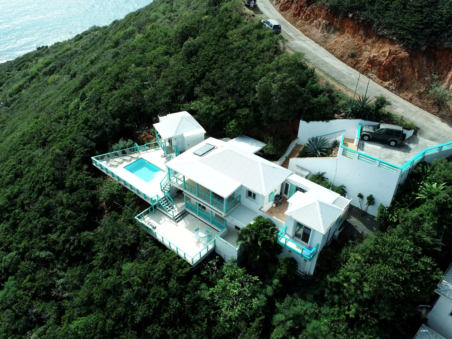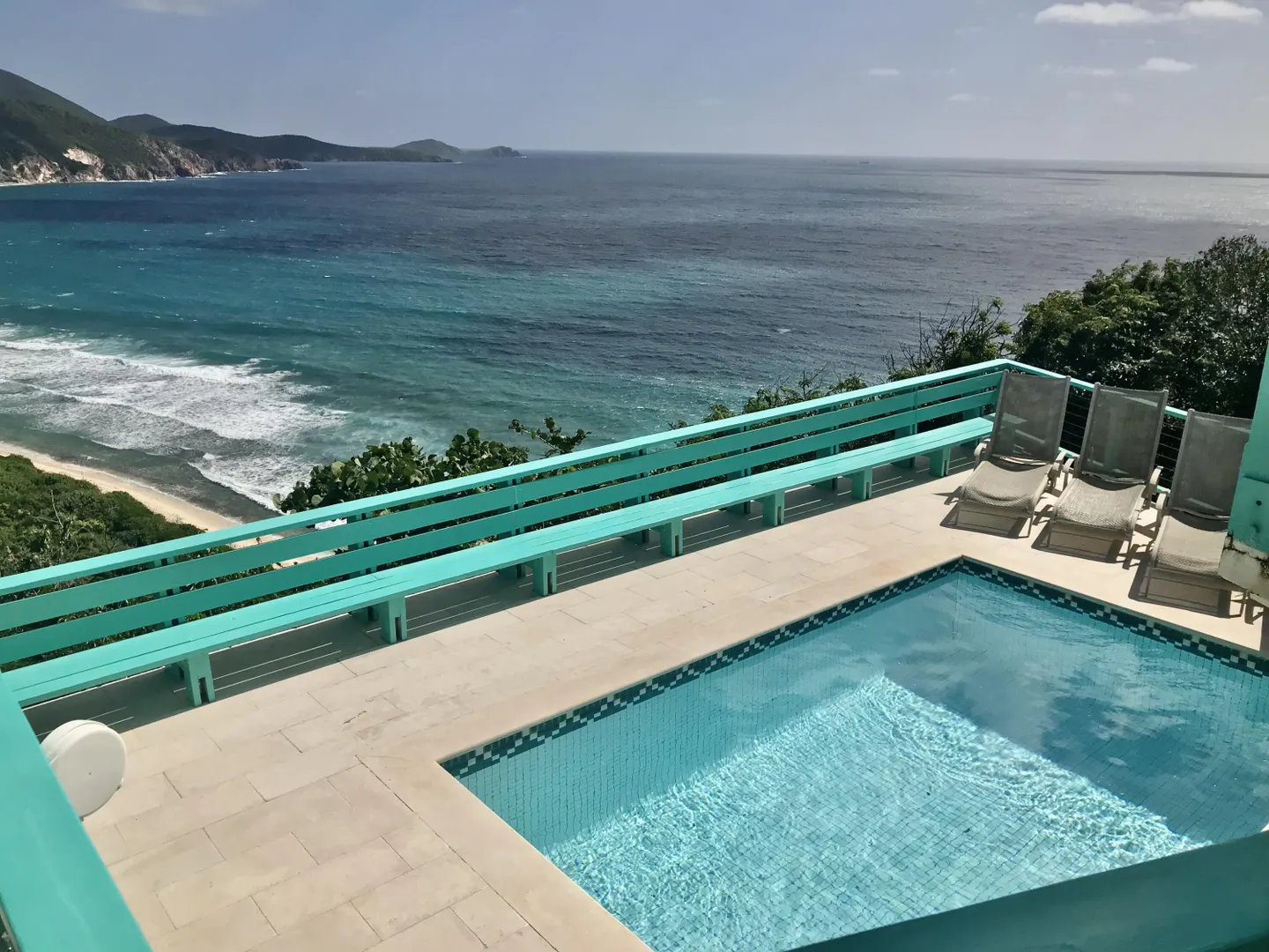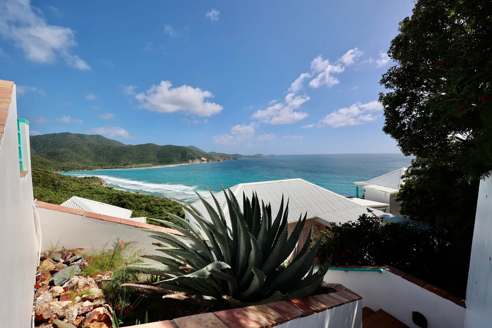 Sweeping, expansive views of Reef Bay and National Park to Ram's Head. Enjoy the breezes and azure seas with the sounds of surf as well as views from the pool to the beach below. Kitchen and living area are in the main house with two bedrooms and full bathroom below. There are two cabanas with private baths and bedrooms.All new stainless steel railings, pool pump, hot water heater and solar collector. This property is loved for its incredible views, soft breezes and privacy. Fall asleep to the rhythm of the surf below and wake up to the sun rising over Ram's Head and the Caribbean Sea. Watch sailboats and potentially humpback whales from the property. Lot is accessible by two roads. Another guest cottage could potentially be built on this .78 acre lot.