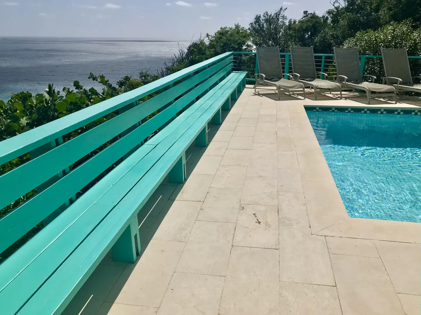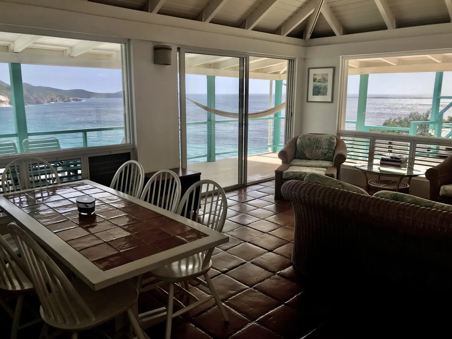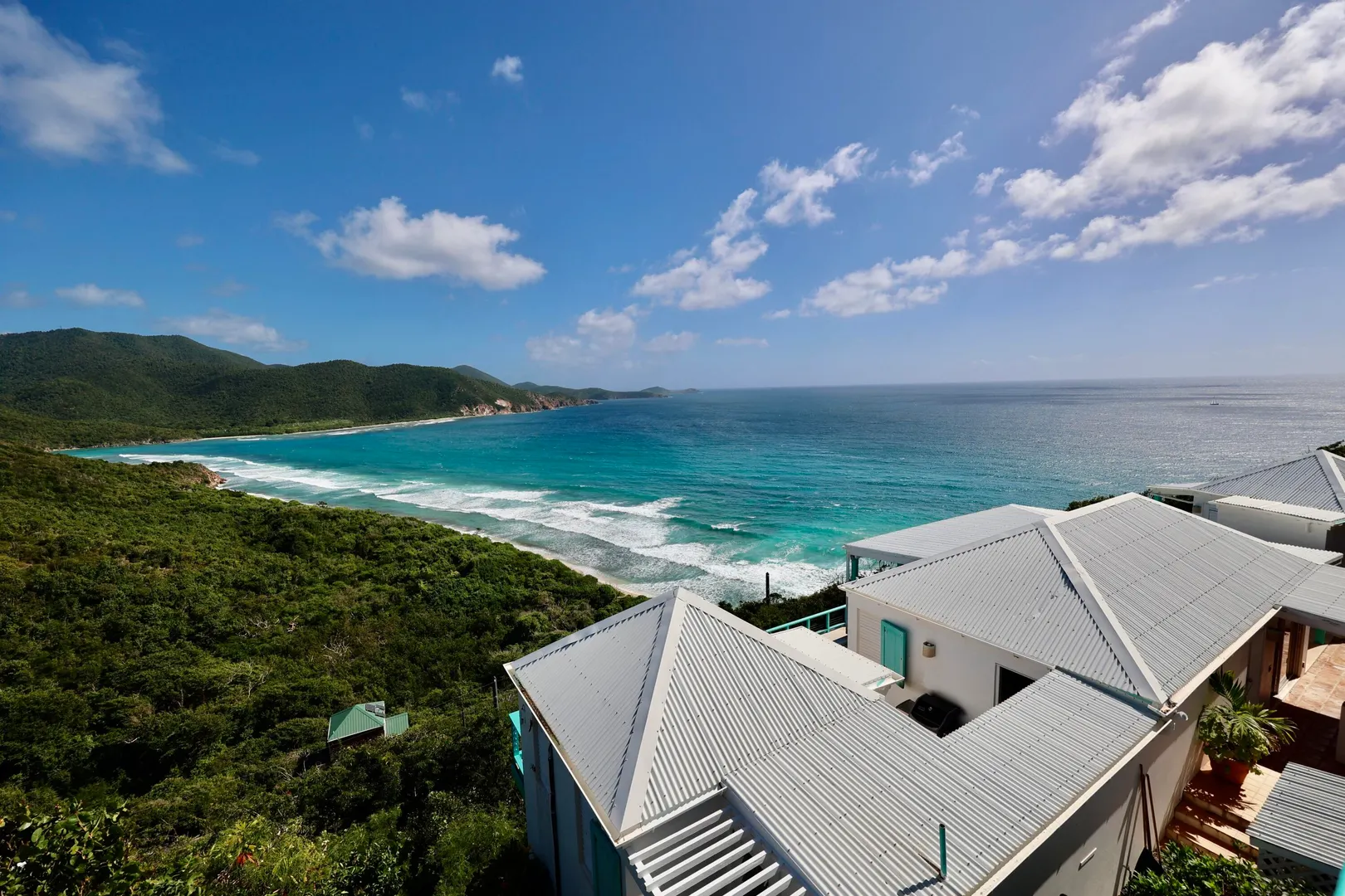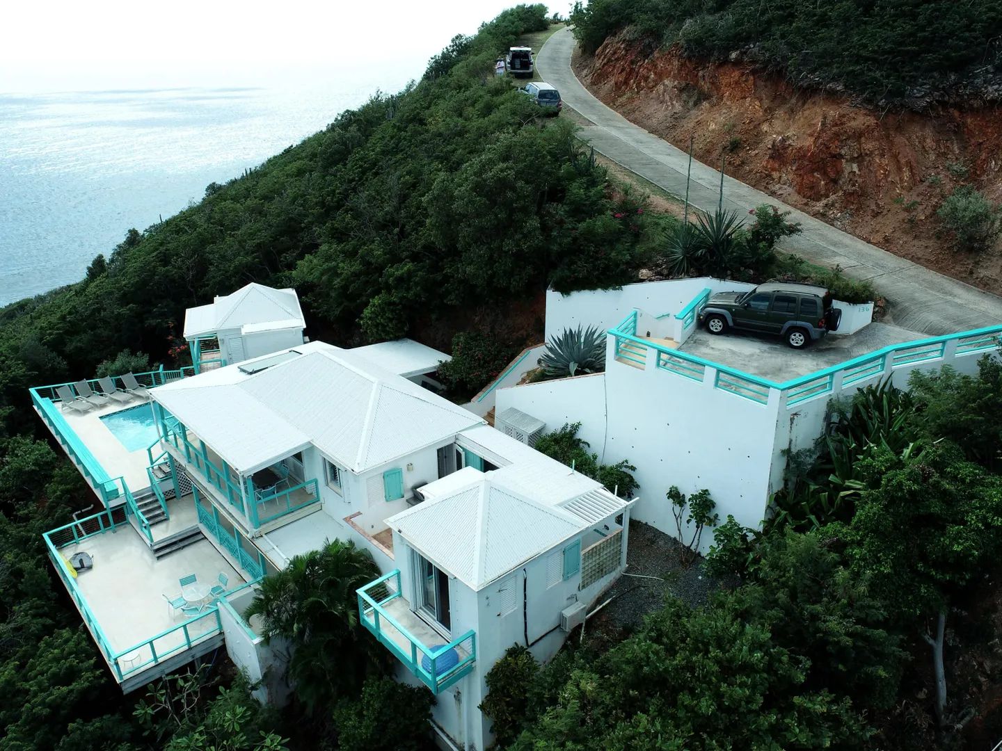Sweeping, expansive views of Reef Bay and National Park to Ram's Head. Enjoy the breezes and azure seas with the sounds of surf as well as views from the pool to the beach below. Kitchen and living area are in the main house with two bedrooms and full bathroom below. There are two cabanas with private baths and bedrooms.All new stainless steel railings, pool pump, hot water heater and solar collector. This property is loved for its incredible views, soft breezes and privacy. Fall asleep to the rhythm of the surf below and wake up to the sun rising over Ram's Head and the Caribbean Sea. Watch sailboats and potentially humpback whales from the property. Lot is accessible by two roads. Another guest cottage could potentially be built on this .78 acre lot.