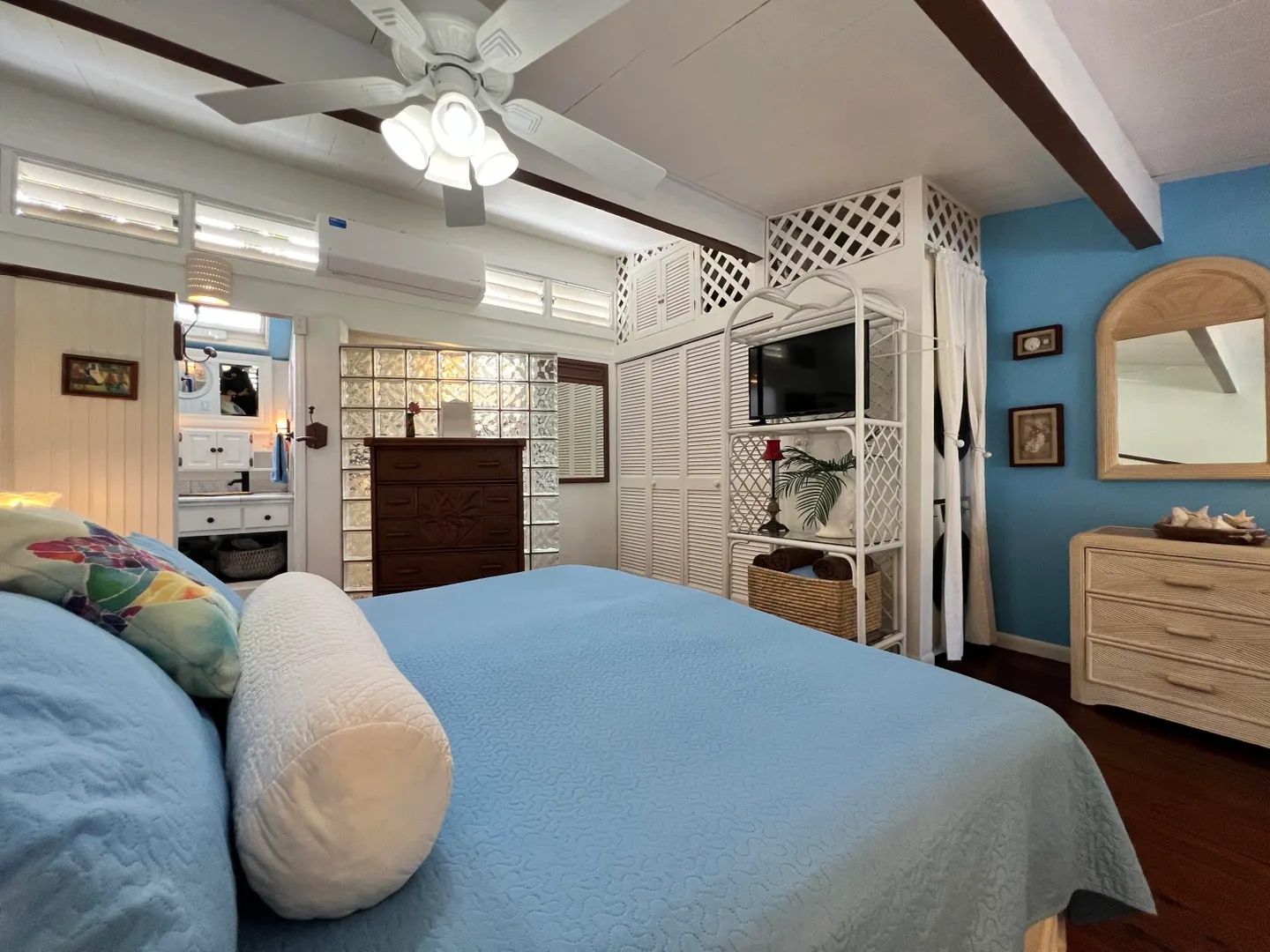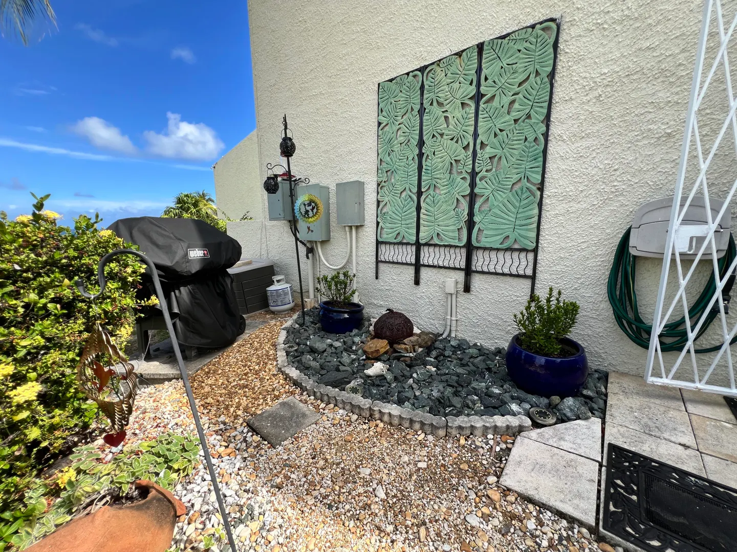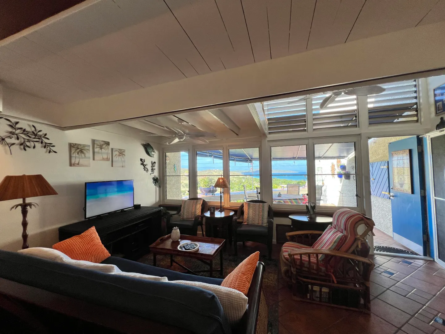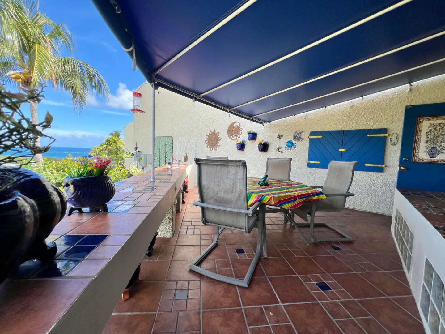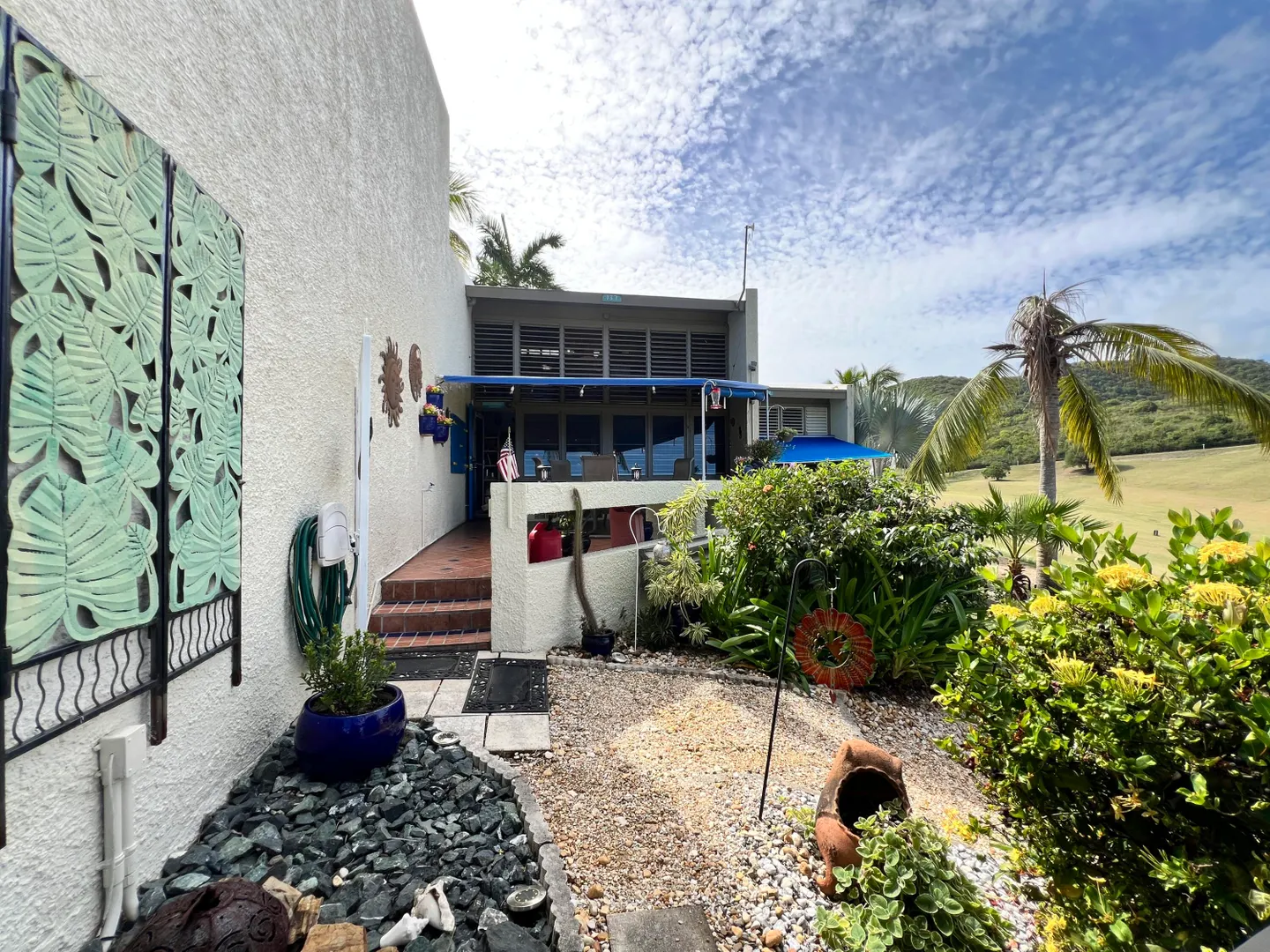 Welcome to Chez Nous! Meticulously maintained 2-bed, 2-bath expertly converted condo tucked into the east end hillside of a gated community. Enjoy 24-hour security, on-site office, and resort-style amenities including a 9-hole golf course, tennis & pickleball courts--all with the beach right across the street. Inside you'll find a custom kitchen with built-ins, propane cooktop, dishwasher, W/D, ceiling fans, split and window A/C units, whole-condo surge protector, and an 8100 kW generator. Extra outdoor grilling space located off the patio with the 12x17 canopy! Offered fully furnished and equipped--just bring your suitcase!