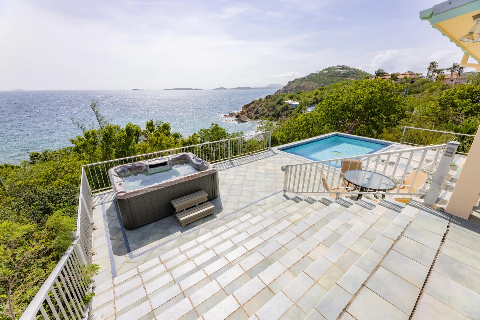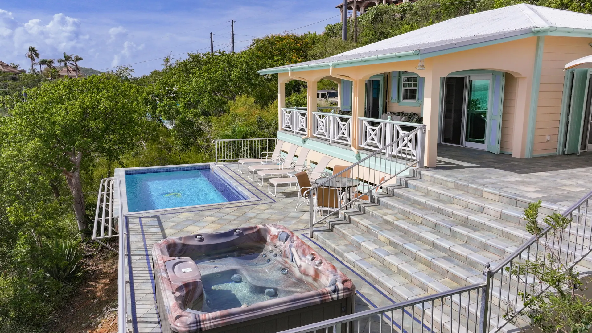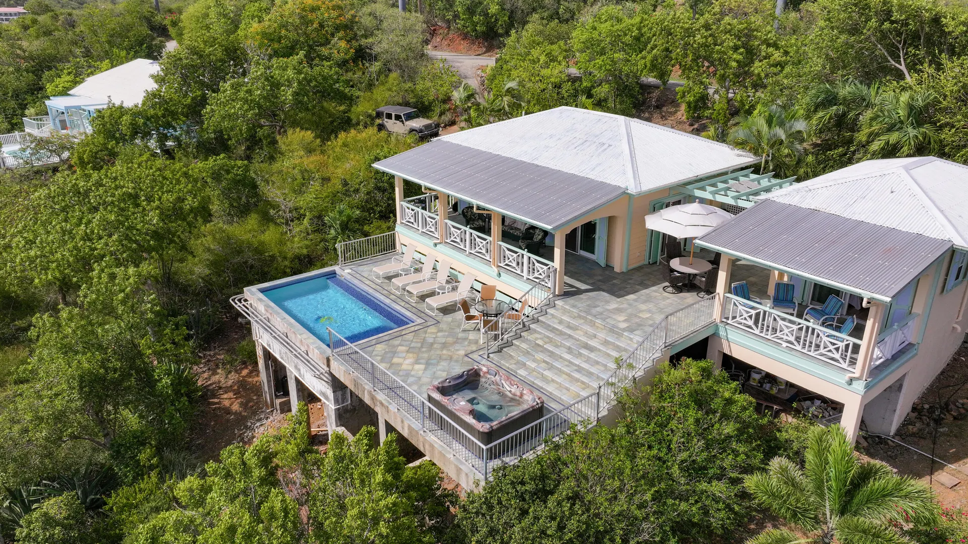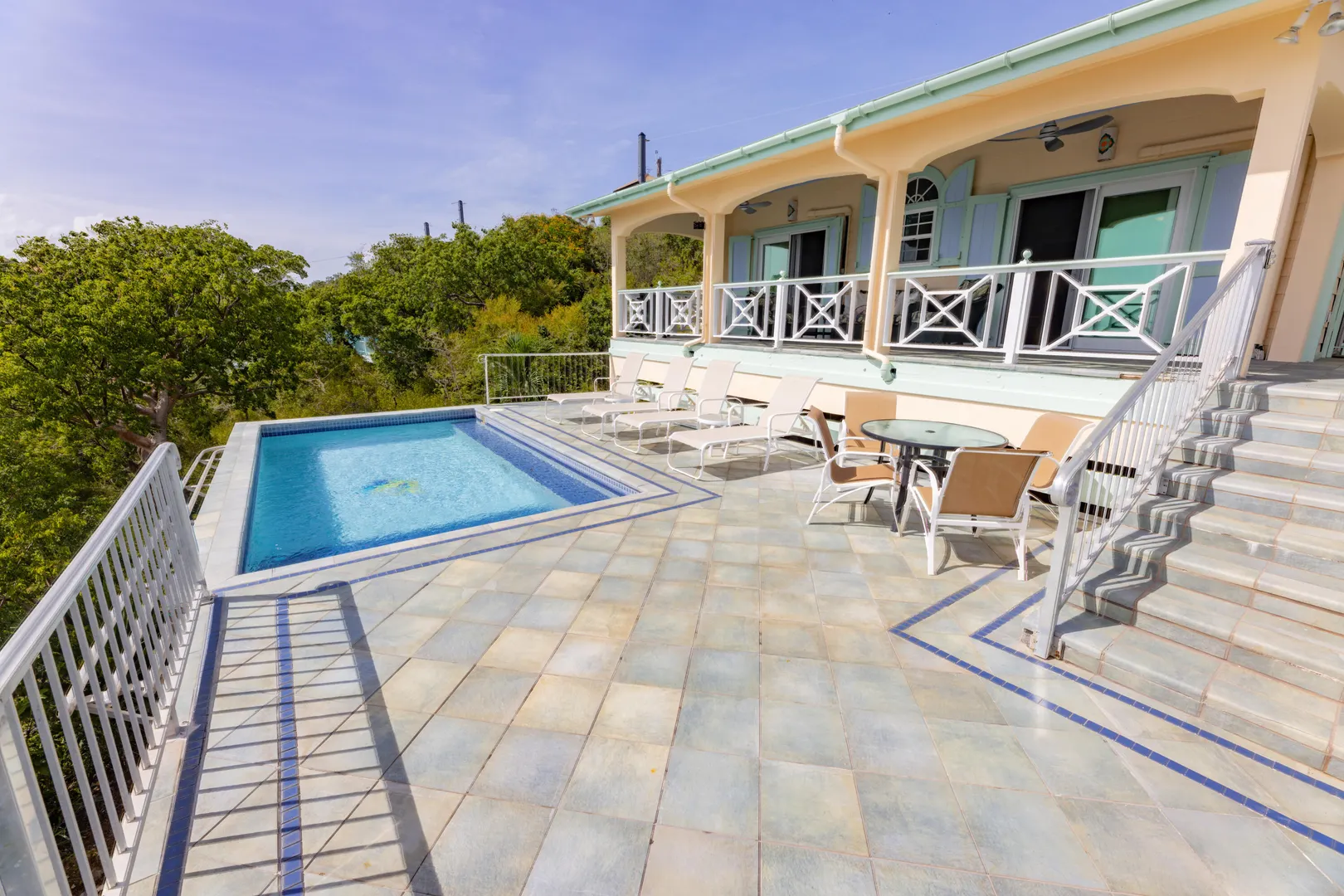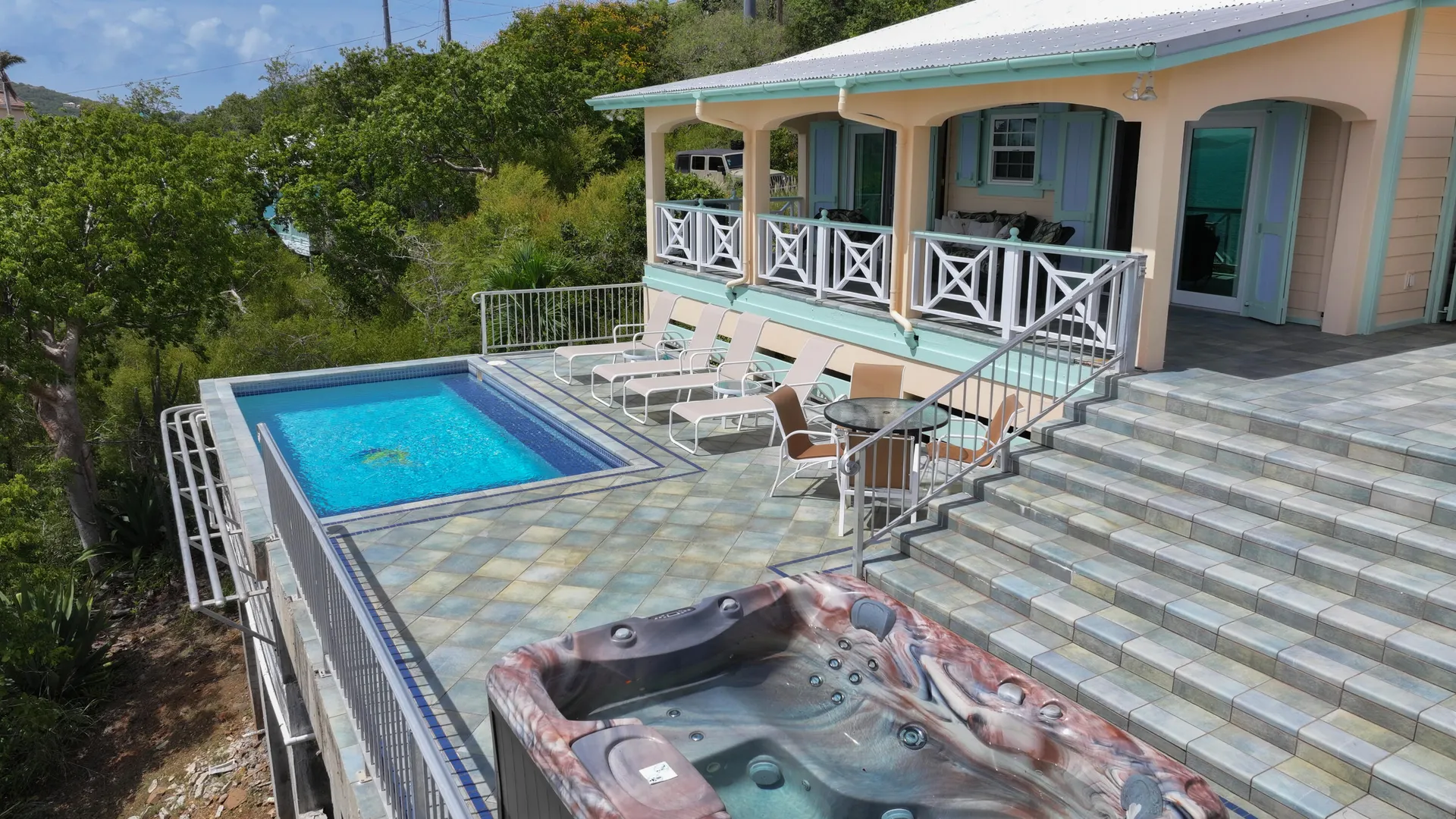 Island Time, aptly named is a charming jewel box of a home offering a rare opportunity to indulge in the ultimate island lifestyle. This 2-bedroom, 2-bathroom in Estate Chocolate Hole offers captivating Devers Bay vistas. Expansive decks frame stunning sunsets, passing ships, and winter whale migrations. Relax by the private pool, soak in the hot tub, and listen to waves on the pebble stone shore below. Currently a thriving short-term rental, it's an investment opportunity too good to miss. With easy access to beaches, trails, and Cruz Bay, your Caribbean dream starts here. Embrace 'Island Living' at its finest!