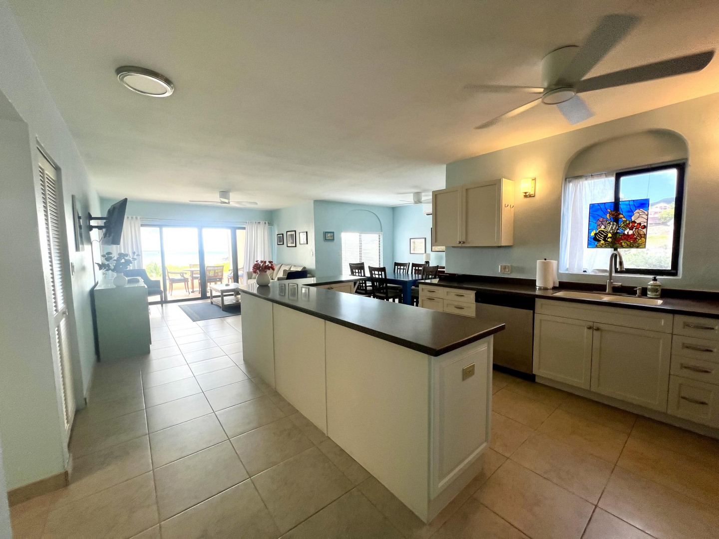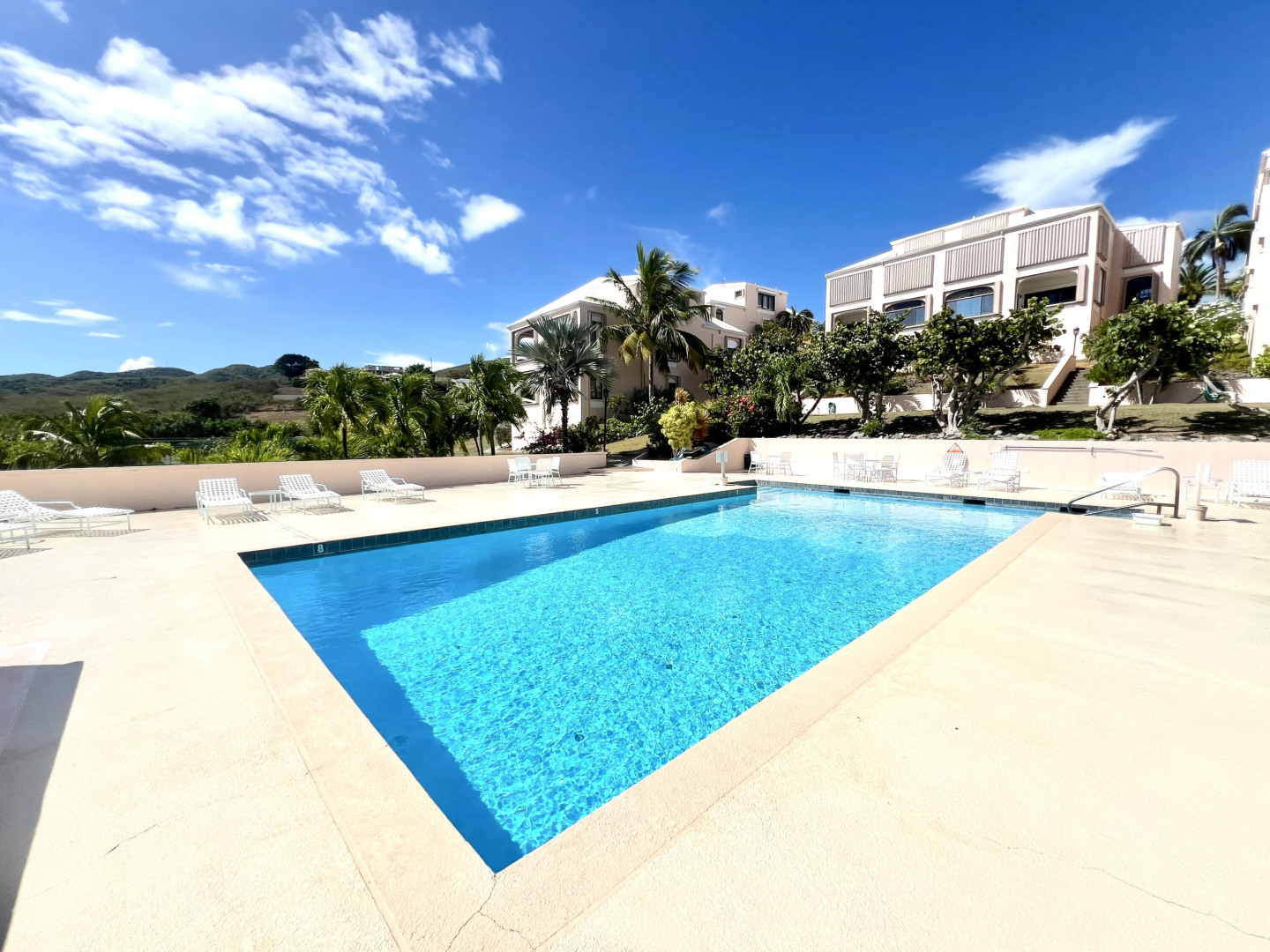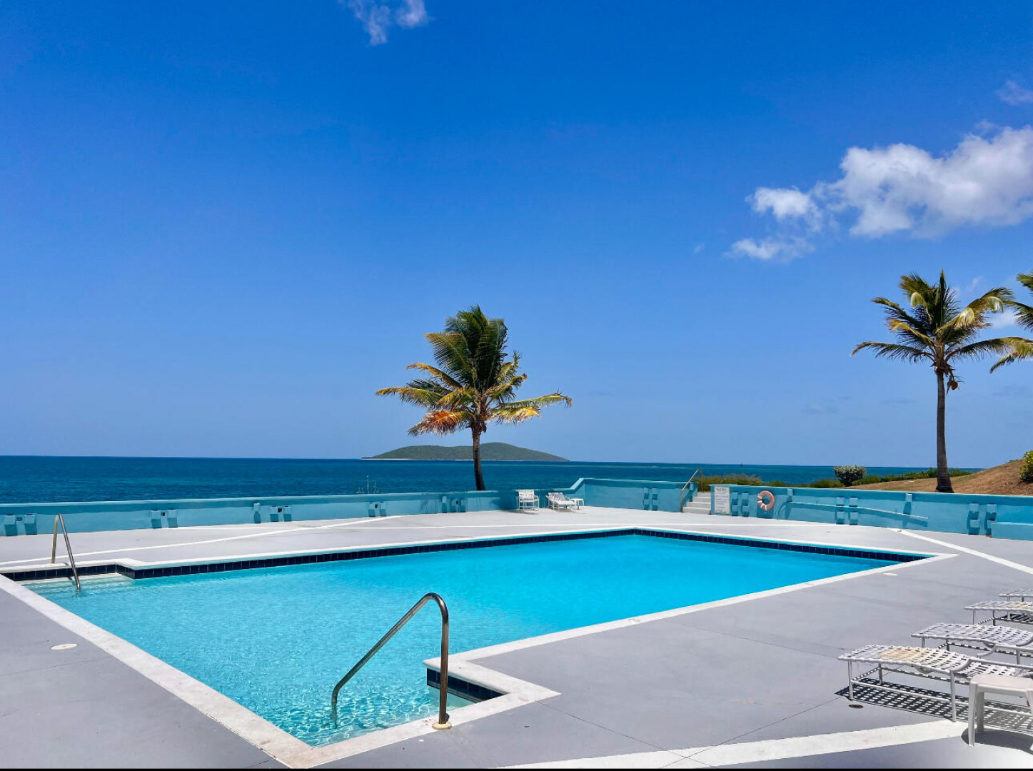 Enjoy stunning Buck Island and sea views from this 2-bedroom, 2-bath lower-level condo, located in a well-maintained beachfront complex. This unit is perfectly positioned to take advantage of the steady island breeze and views. Inside, you'll find two spacious bedrooms and two full bathrooms, along with an open-concept living and dining area filled with natural light and framed by ocean views. Each room is equipped with efficient split A/C units for year-round comfort. The unit has been thoughtfully updated with spacious kitchen for the home chef, sleek bathrooms and clean finishings touches. Step out onto your private covered patio-ideal for relaxing with a morning coffee or entertaining guests while enjoying the sound of the sea and watching boats make their way to Buck.The complex offers a range of amenities including a swimming pool, tennis and pickleball courts, beautifully landscaped grounds and direct beach access.