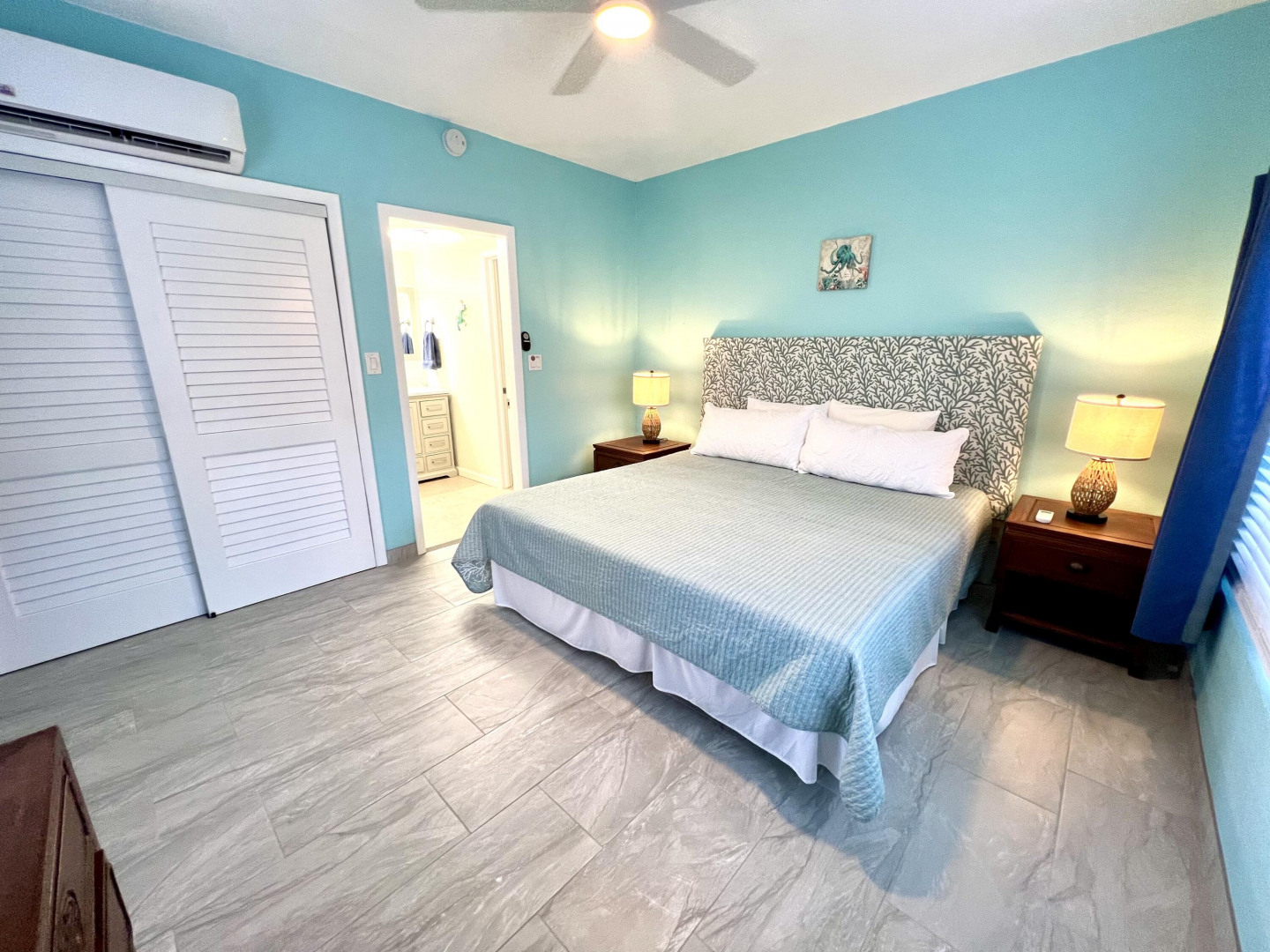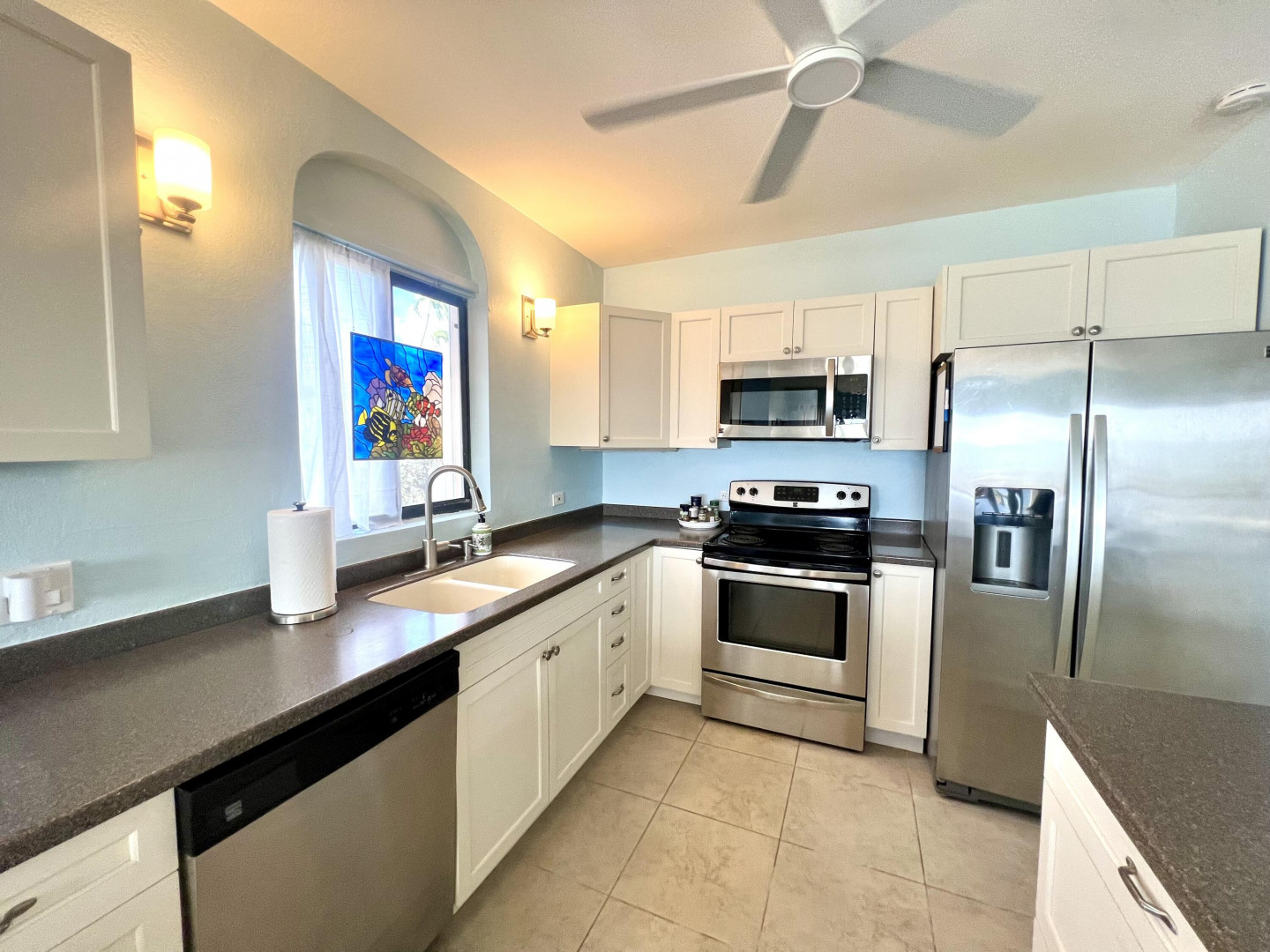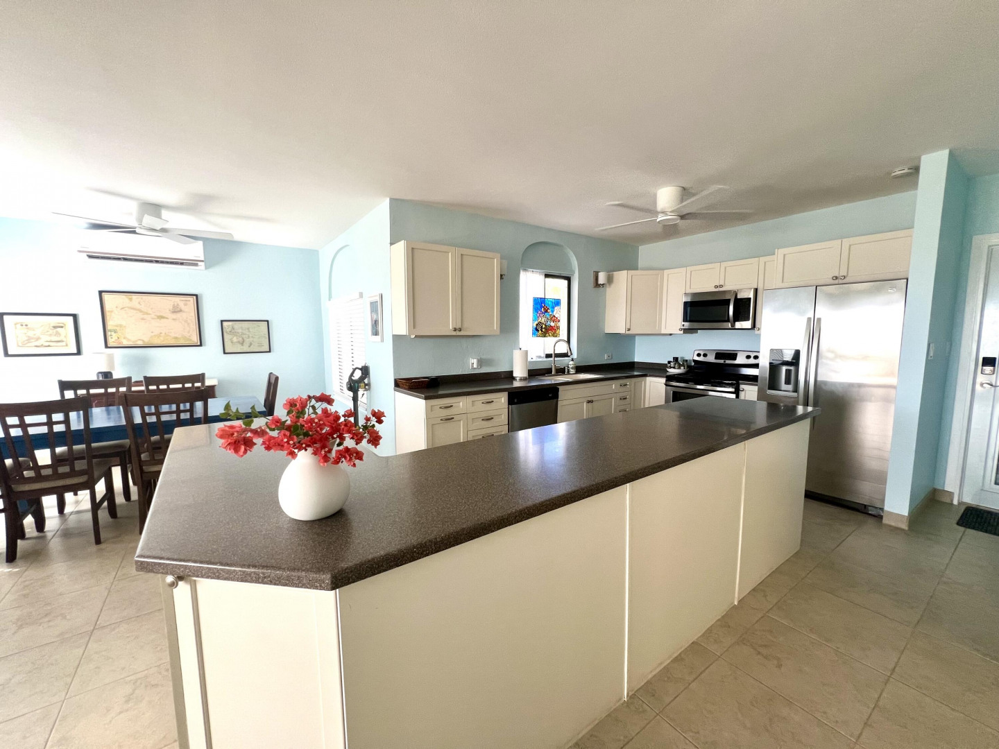 Enjoy stunning Buck Island and sea views from this 2-bedroom, 2-bath lower-level condo, located in a well-maintained beachfront complex. This unit is perfectly positioned to take advantage of the steady island breeze and views. Inside, you'll find two spacious bedrooms and two full bathrooms, along with an open-concept living and dining area filled with natural light and framed by ocean views. Each room is equipped with efficient split A/C units for year-round comfort. The unit has been thoughtfully updated with spacious kitchen for the home chef, sleek bathrooms and clean finishings touches. Step out onto your private covered patio-ideal for relaxing with a morning coffee or entertaining guests while enjoying the sound of the sea and watching boats make their way to Buck.The complex offers a range of amenities including a swimming pool, tennis and pickleball courts, beautifully landscaped grounds and direct beach access.