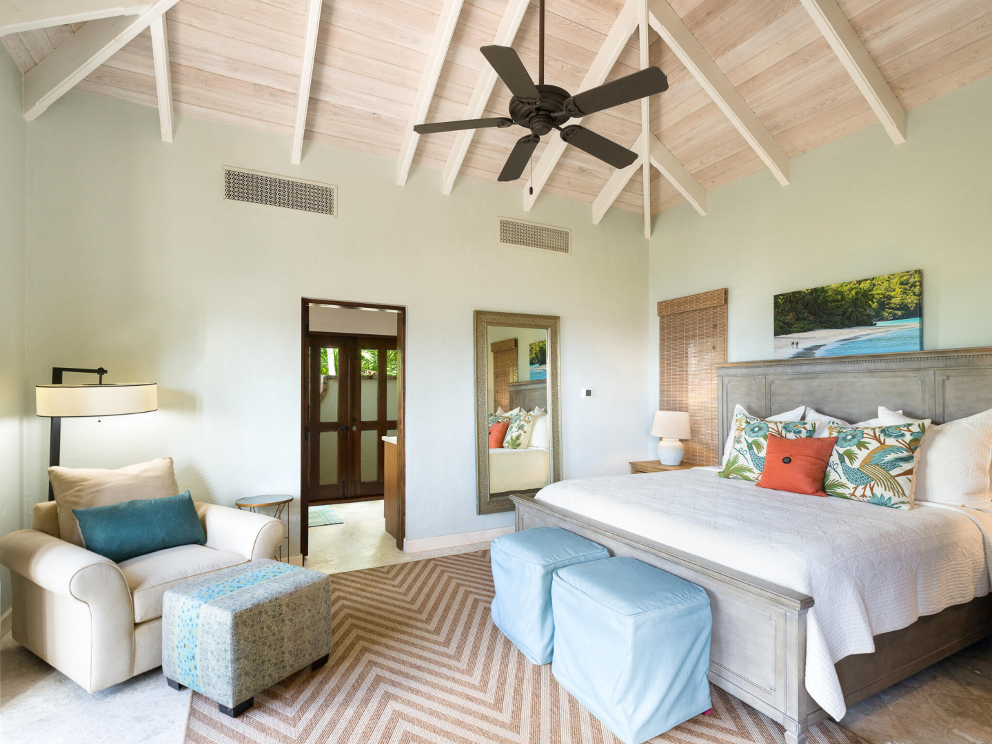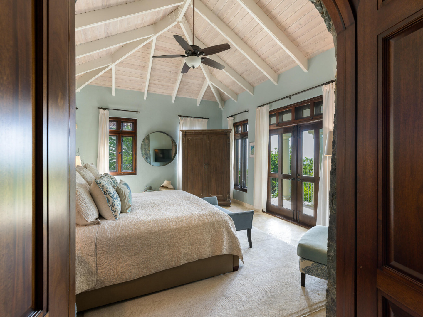 Rare Private Beachfront Beauty! Nestled on a lush acre this beautiful private villa takes your breath away with its charm & serenity. Located in the desirable Chocolate Hole neighborhood, only 5 minutes to town, TRANQUILITY VILLA provides 5+bedrooms, 5 bathrooms & boasts stunning ocean views. This gated home is steps away from your own white sand beach where you can enjoy paddle boarding, kayaking & snorkeling in the pristine bay, take an afternoon nap or watch spectacular sunsets. Beautifully appointed with numerous upgrades and benefits including: Newly remodeled kitchen, solar power, large capacity generator, new appliances, new high-end furniture, oversized two car garage, saltwater pool, private gym plus yoga deck overlooking the the Caribbean. Come live the dream at Tranquility!