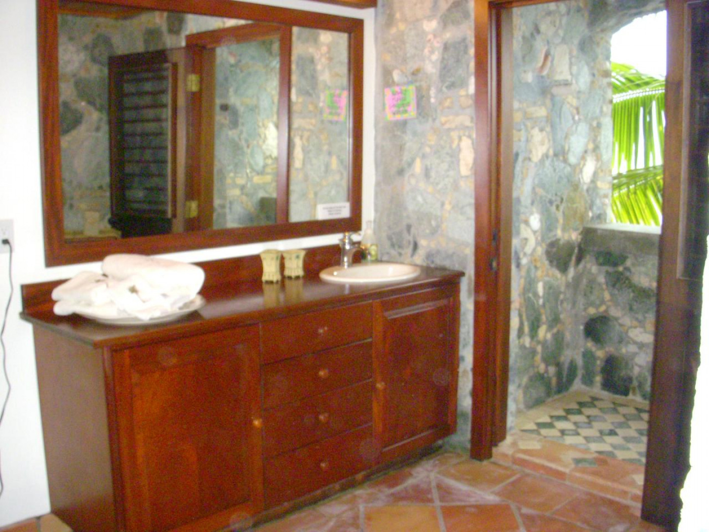 WATERFRONT on Dever's Bay! 'CHOCOLATE BLISS' is a 5 bedroom estate on over an acre. This private and extremely quiet masonry/stone home has all the amenities one would desire. Recently updated to today's luxury standards with top end appliances, beautiful Caribbean style Mahogany furnishings,infinity edge pool, stone garage & amazing tropical gardens. Private path to beach. SEE SUPPLEMENTWATERFRONT ON DEVERS BAY! CHOCOLATE BLISS is a 5 bedroom estate on over an acre of gently sloped land. This private and extremely quiet masonry and stone home has all the amenities one would desire. Recently updated to todays luxury standards with top end appliances and beautiful Caribbean style Mahogany furnishings. Must be seen to be appreciated- mahogany doors and custom cabinetry by local craftsmen, 2 stained glass panels in great room, porcelain tile floors and tiled covered galleries with attractive concrete balustrades , exotic hardwood kitchen with inlaid countertops, wine cooler, 2 ovens, stainless appliances, bar sink, creative island stone or tumbled marble showers and mahogany cabinetry in all baths; Stunning pool with negative edge waterfall, tiled mermaid mural on pool bottom and custom stone & glass pool side bar area w/ icemaker & mini fridge; lush landscaped grounds with paths & stone walls; paved driveway and large garage that can be opened up to use as a shaded, breezy workshop. Separate building houses generator. Spectacular water views to St. Thomas, the St. James Islands, French Cap and beyond. Glorious sunsets! This home is located away from the hustle of construction & Cruz Bay traffic yet very convenient to town; Let the gentle sound of the surf to lull you to sleep...Short 2 min. walks to Hart Bay and Mampoo beaches. BUYER AND SELLER TO SPLIT TAX STAMPS EQUALLY. Artwork not included. Buyer to cooperate with necessary documentation if Sellers do a 1031 Tax Free Exchange.