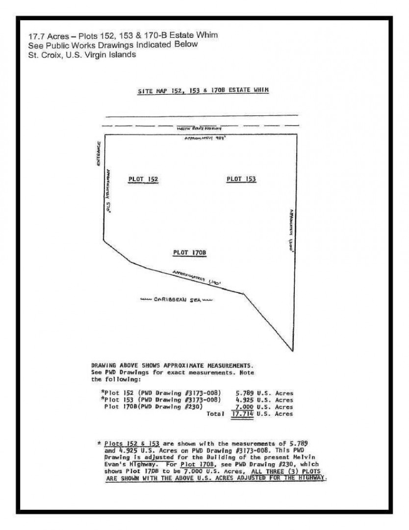 Extraordinary Waterfront Development Opportunity in America's Paradise awaits you! Presenting the magnificent Estate Whim offering, spanning over 55 acres of prime land zoned R-3. Strategically positioned, the site offers direct access spanning over 3,000 feet onto Melvin Evans Highway, merely 7 minutes from Henry Rohlsen International Airport, the Frederiksted cruise port, St. Croix Heritage Trail, Historic Free Town Frederiksted, the Leatherback Turtle and Nature Preserve, and an array of other amenities, ensuring unparalleled convenience and accessibility. Revel in the soothing melody of ocean waves, breathtaking south shore panoramas, and an expansive stretch of over 3,200 feet of pristine sandy coastline - equivalent to more than 10 city blocks!