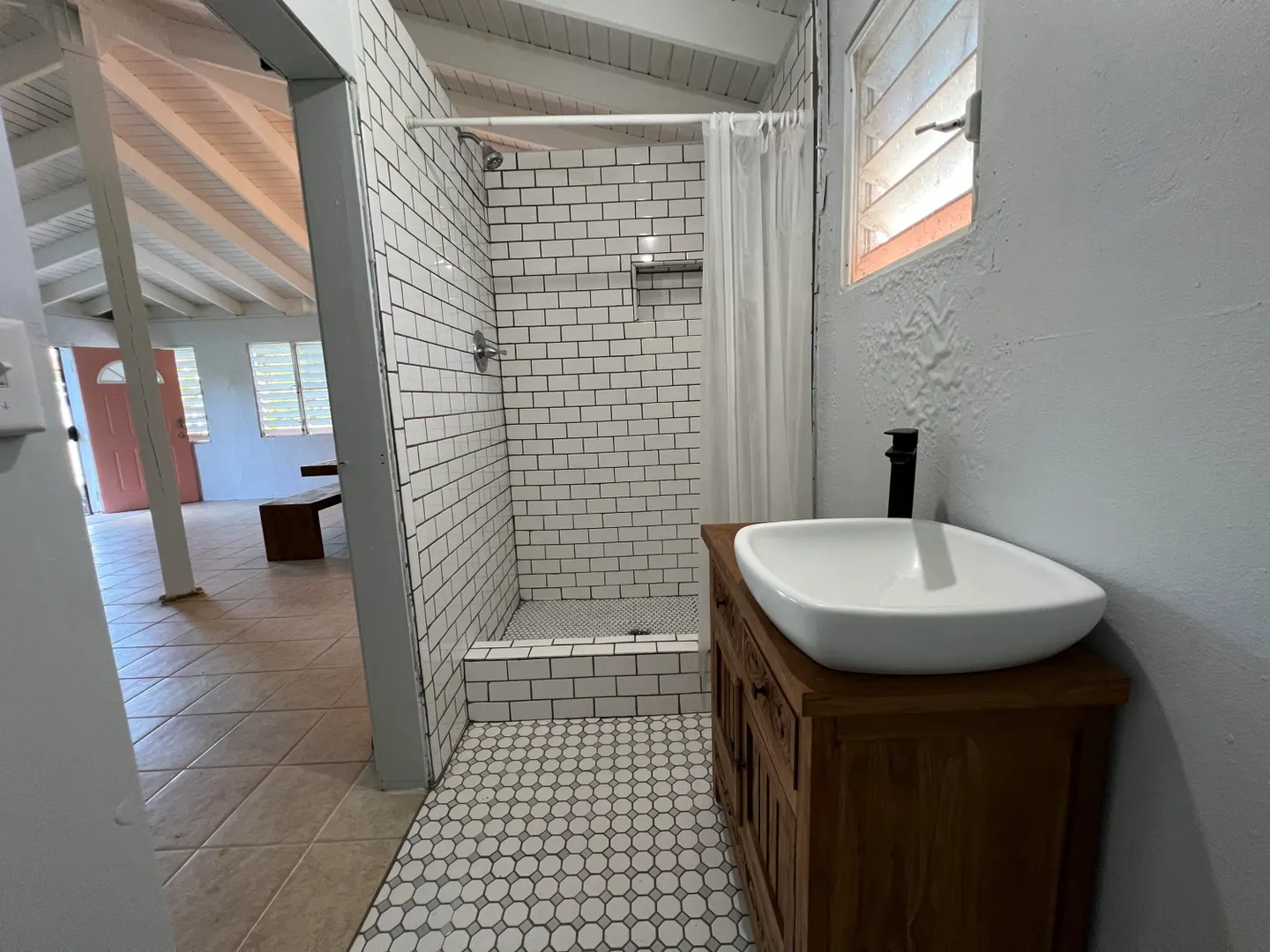 **CASH OFFERS ONLY** Fully solar powered 1-bedroom, 1-bath off grid cottage! Recently renovated by sellers, freshly painted inside & out, tile floors, spacious great room with vaulted ceiling, new kitchen with Spanish cedar shelving and countertops, brand new appliances, farm sink, new bathroom vanity, toilet, fixtures, barn doors on bedroom and bath, new lighting, ceiling fans, solar powered water pump, water buffalo, lithium-ion battery, 2 inverters, 6 solar panels. Solar panels have been mounted on the roof and need to be tied into inverters. The WAPA junction box is already in place if you want to hook that back up! Located in a residential neighborhood near schools & shopping, 10-minute drive to downtown Christiansted. No active HOA.