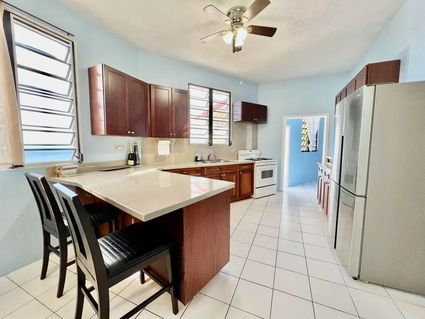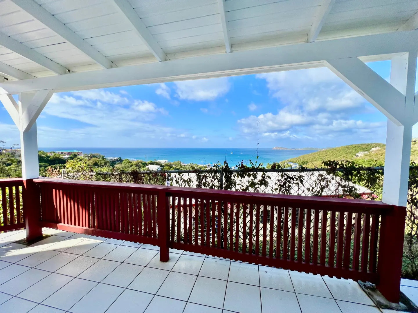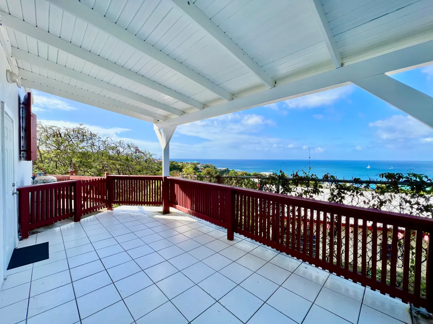 Large 2 bedrooms - 1 bath. Large patio with amazing ocean views and walking distance to Limetree Beach. Split A/C, Generator and 2-car parking. Only 2min to Antilles School and 5-10min to town.