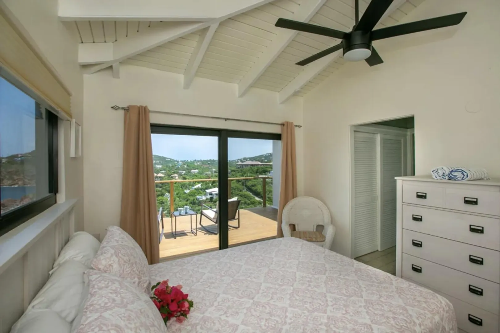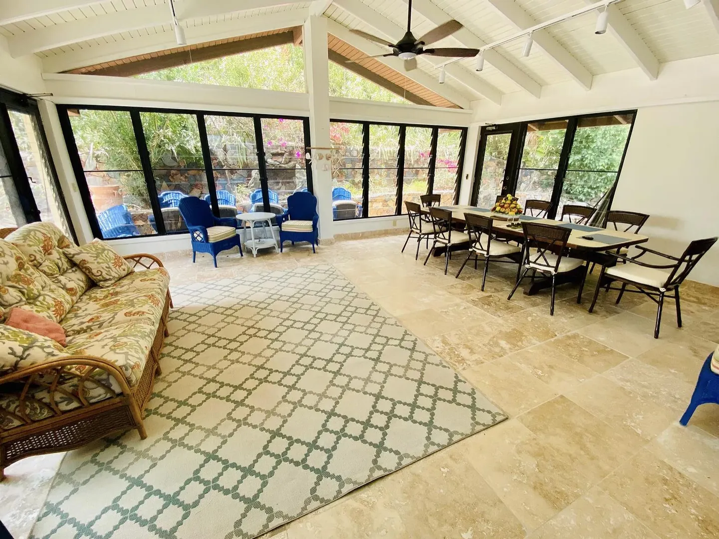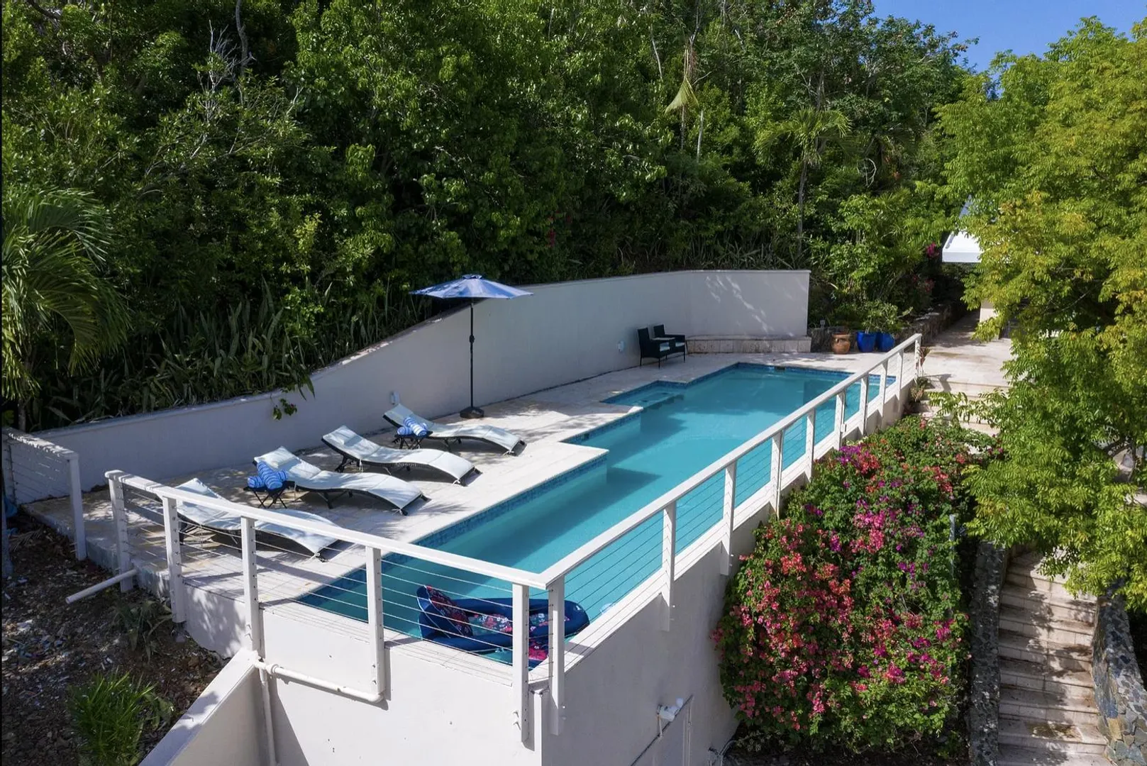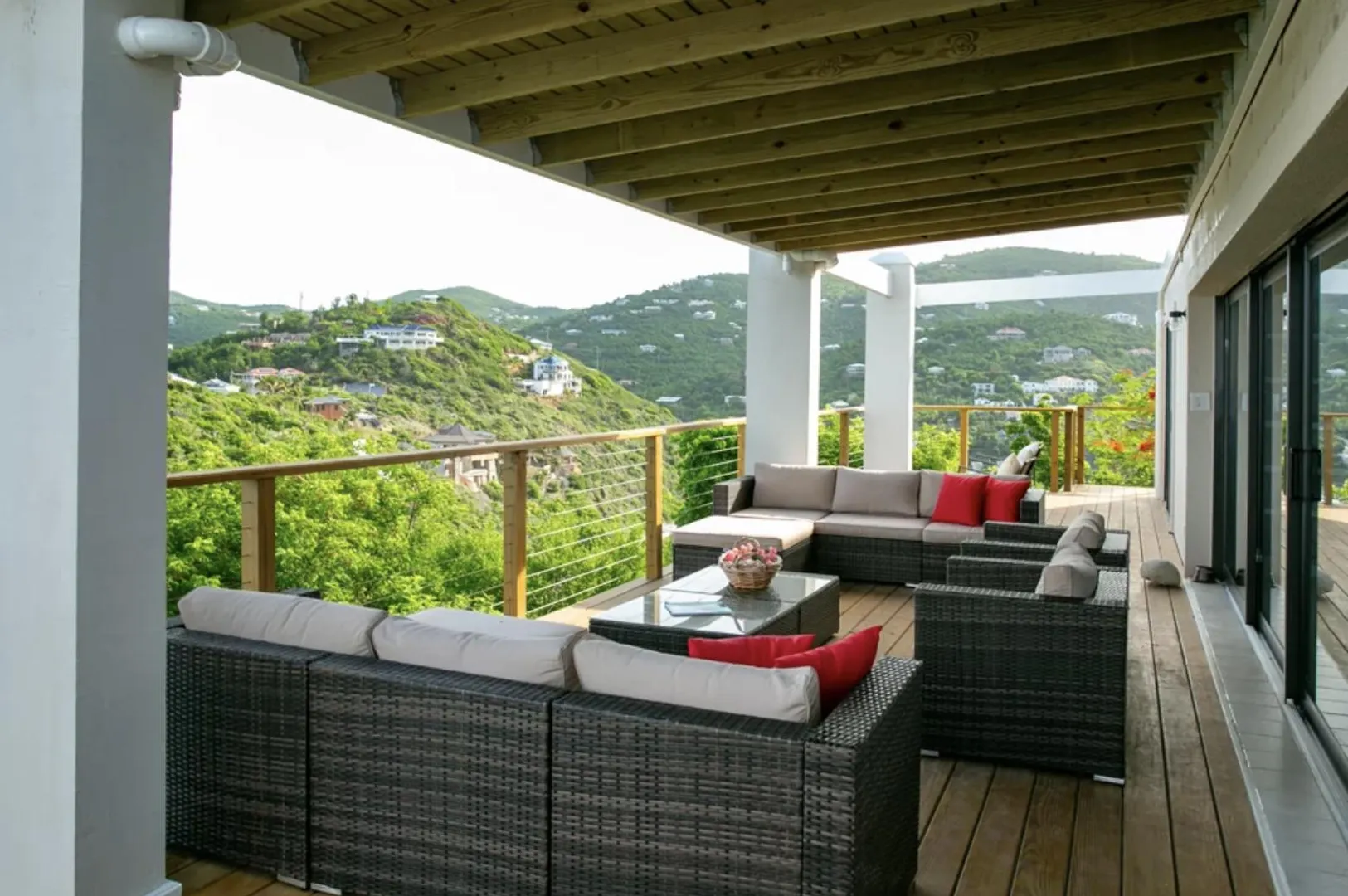 As seen on HGTV's House Hunters International, AVONTUUR VILLA is a perfect escape into the paradise that is St. John with dual water views! This extremely successful vacation rental offers a flexible layout with opportunity for multiple units. Resting high on the hilltop on a full acre of land in desirable Chocolate Hole, this breathtaking villa is just minutes from Cruz Bay's beaches, shopping, and the ferry to St Thomas & BVI. Completely renovated in 2019, with over 3,000 sq. ft. of interior living space and over 5,000 sq. ft. of outdoor space, unparalleled panoramic views of Hart Bay, Dever's Bay and Chocolate Hole, Avontuur Villa brings together true island decor with modern amenities to offer the full experience of St John.