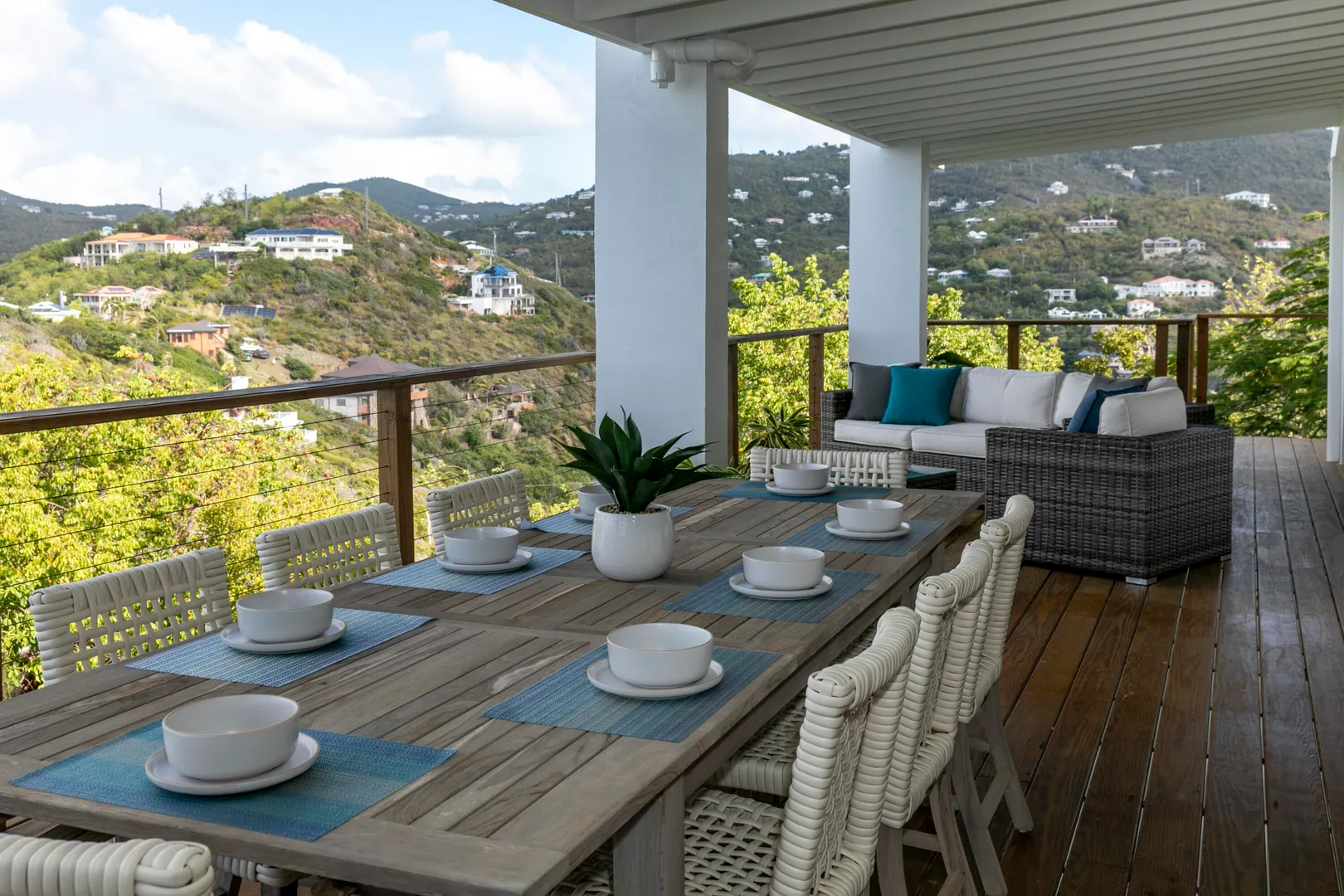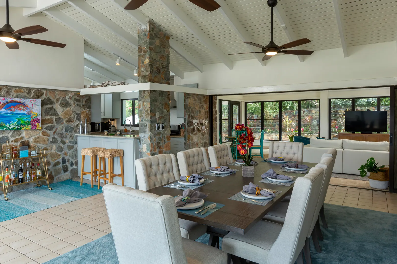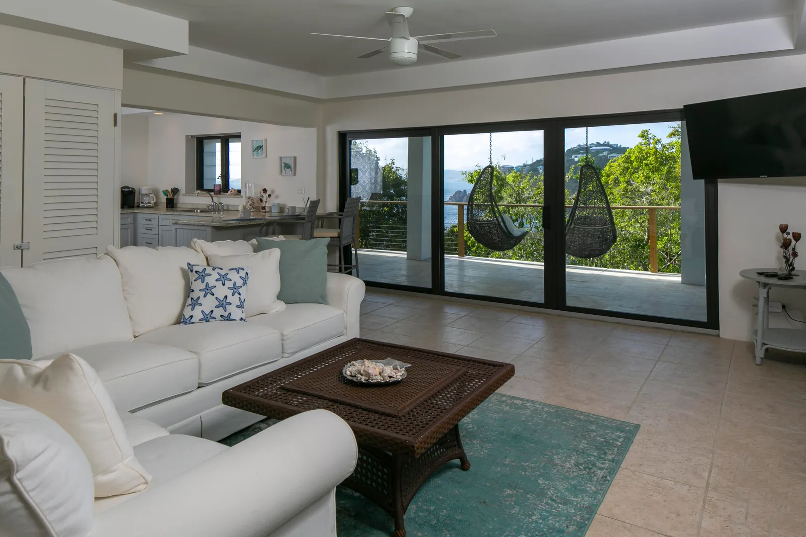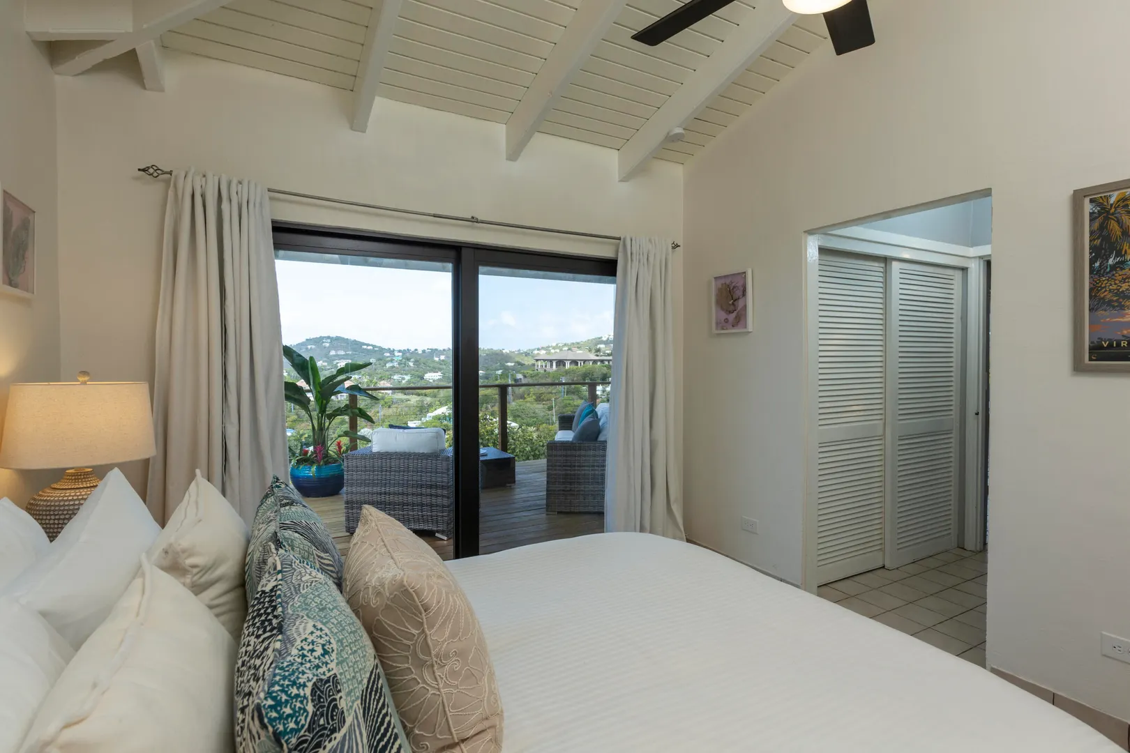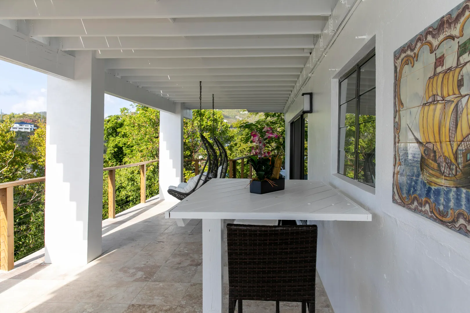 Enjoy spectacular year round sunsets and watch the boats pass by from your private decks surrounded by lush tropical greenery at Moondance Villa. This popular and successful rental villa rented over 32 weeks in 2021 and is on track to rent even more in 2022. Located in desirable Chocolate Hole with unparalleled panoramic views, Moondance Villa brings together stylish island decor with modern amenities, privacy, and a 50' pool featuring brand new Restoration Hardware pool lounges, umbrellas and more. Currently rented as a 4 bedroom with 4 Master ensuite bedrooms and an open floor plan, there is space for everyone to relax in privacy and gather in luxury.