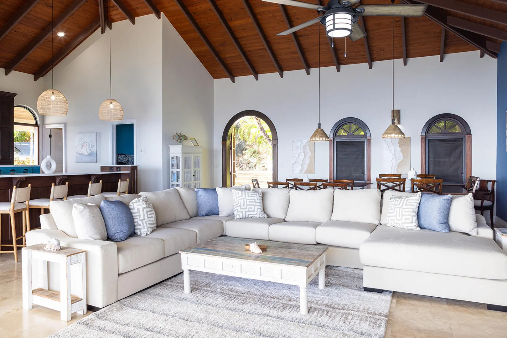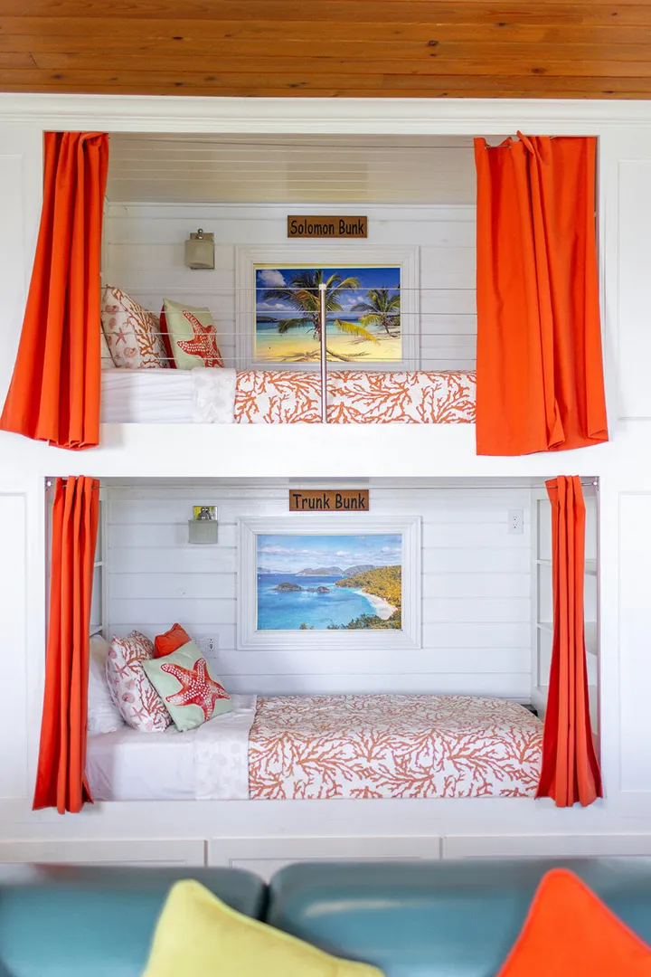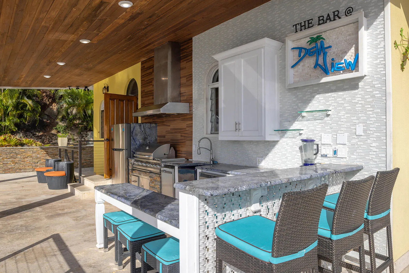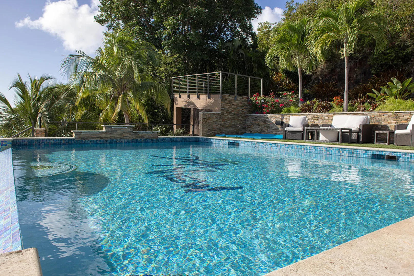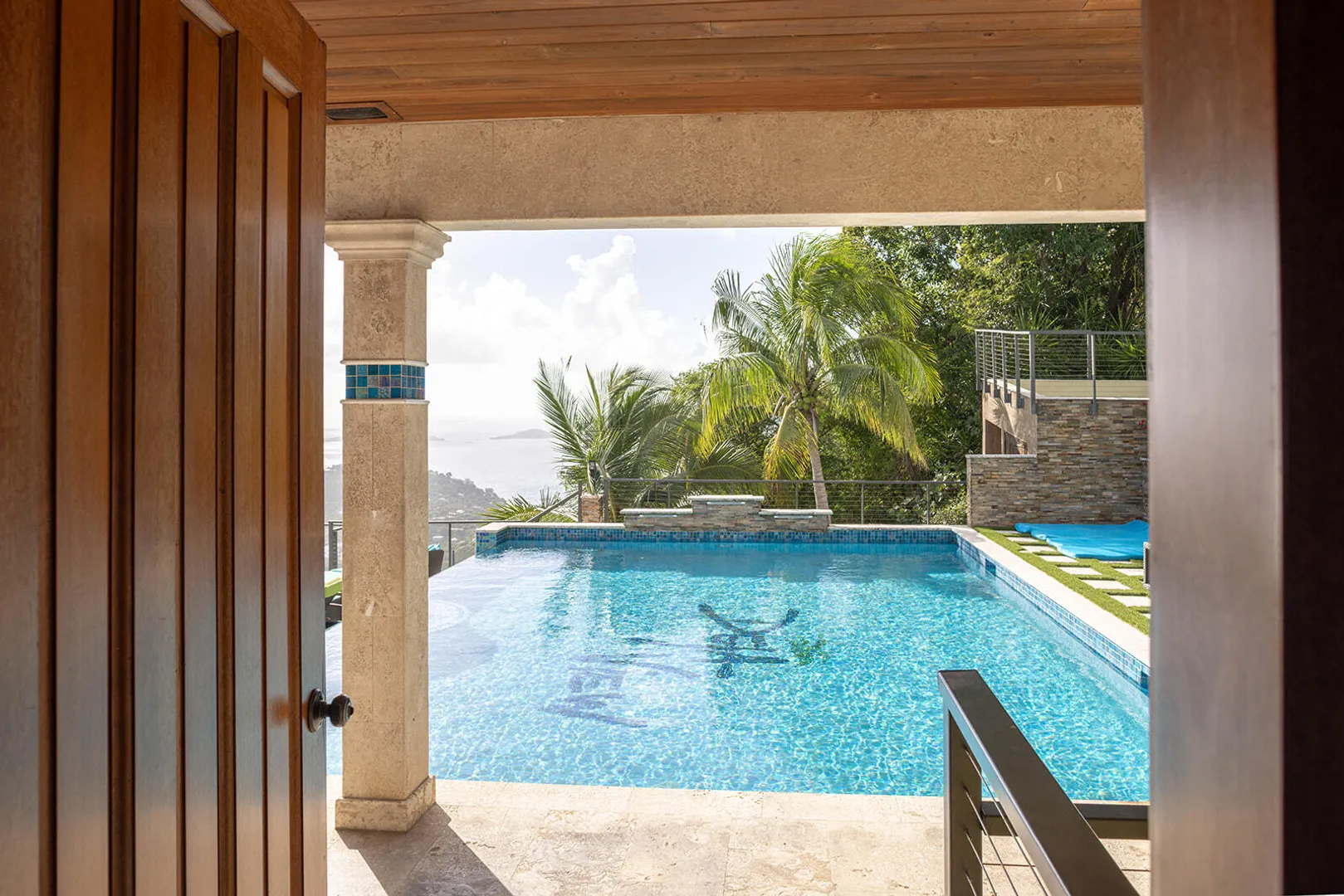 DEJA VIEW, the villa of your dreams. Resting on the hilltop above Rendezvous Bay, this incredible 6 bedroom luxury home is unlike anything on St John. At the end of a private road, the extremely successful rental boasts 5,000 sq. feet outdoor living area with resort style ambiance, an oversized infinity pool + 3 waterfalls. The amenities are endless - renovations and new furniture in 2025, 72 solar panels, coral stone decks, full house auto generator, indoor & outdoor kitchen, + a Jacuzzi crow's nest overlooking the turquoise waters below. With an 800 sq ft Bunk/Game room, the villa comfortably sleeps 21 people, providing the perfect location for an array of vacationers. Deja offers everything one could dream of in the perfect residence or investment property, with impressive income.