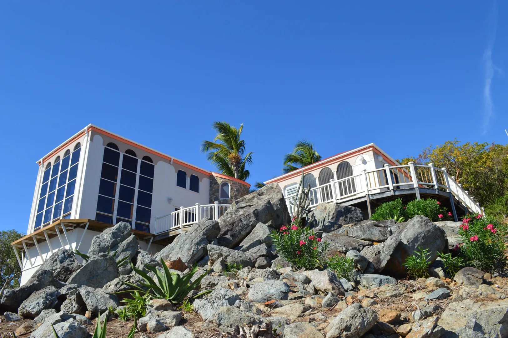 Extreme privacy and magnificent south shore views from Ram's Head to St. Thomas from this classic island home. Stone Court has recently gone under extensive renovations from top to bottom and is a must see! Two spacious bedroom suites with outdoor showers and a third loft style bedroom that double as a den. This home was designed and sited with the utmost care to capture Leeward and Windward breezes and 180-degree unobstructed water views. On almost an acre of land, Stone Court features many private terraces and gardens which one can find the perfect amount of sun, shade or fresh air they desire at any given point. Boatman Point is an upscale neighborhood with paved road, water access, and underground utilities. Possibility to add a pool or additional living pods.