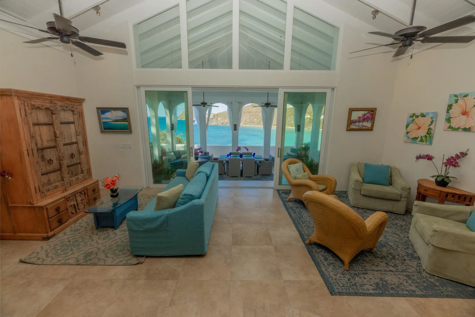 MONTE BAY $200,000 PRICE REDUCTION!! This impressive 5 bedroom, 51/2 bath waterfront villa with a 2 bedroom, 2 bath stone guest cottage is set on the crystal clear turquoise waters of Rendezvous Bay and is the ultimate in elegant island living. Hear the sounds of the surf from this beautifully appointed and tasteful tropical retreat which generates outstanding rental income. Featuring all amenities including gourmet kitchen, charming living area, formal dinng room, unique Mediterranean style open air gallery with 12 ft. archways, inviting 30 ft. pool, drip irrigation system and a BRAND NEW 22 KW generator. The lush tropical grounds and gardens include banana, papaya, palms, bougainvillea, hibiscus, numerous palms and other unique tropical plants. OWNER FINANCING AVAILABLE TOO!