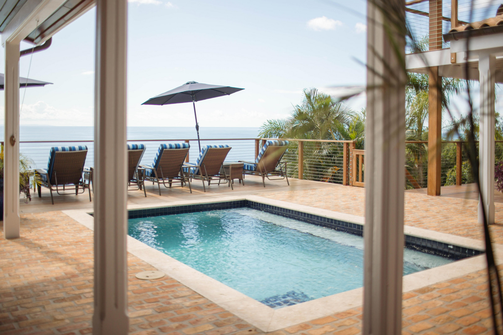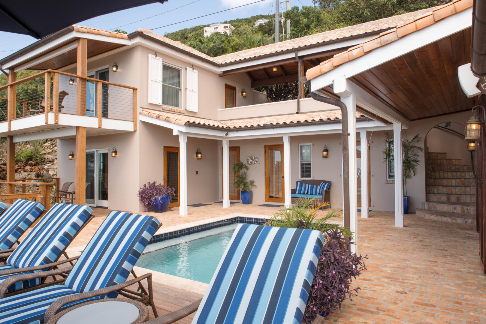 Villa Zusammen is nestled above the stunning Klein Bay, this 3 BR, 4 BA house is a true gem. The pool and brand-new IPE deck offers a seamless blend of luxury and comfort, creating an inviting atmosphere for both relaxation and entertainment. The recently completed deck provides the perfect setting for outdoor gatherings, allowing residents and guests to admire the breathtaking views over the bay. Each expansive bedroom is complemented by its own private bath, ensuring unparalleled convenience and privacy. With just a 7-minute drive to town, the property offers easy access to amenities while providing a peaceful retreat away from the hustle and bustle. Primarily owner-occupied, this residence also presents rental income potential. Don't miss this rare opportunity to own it yourself