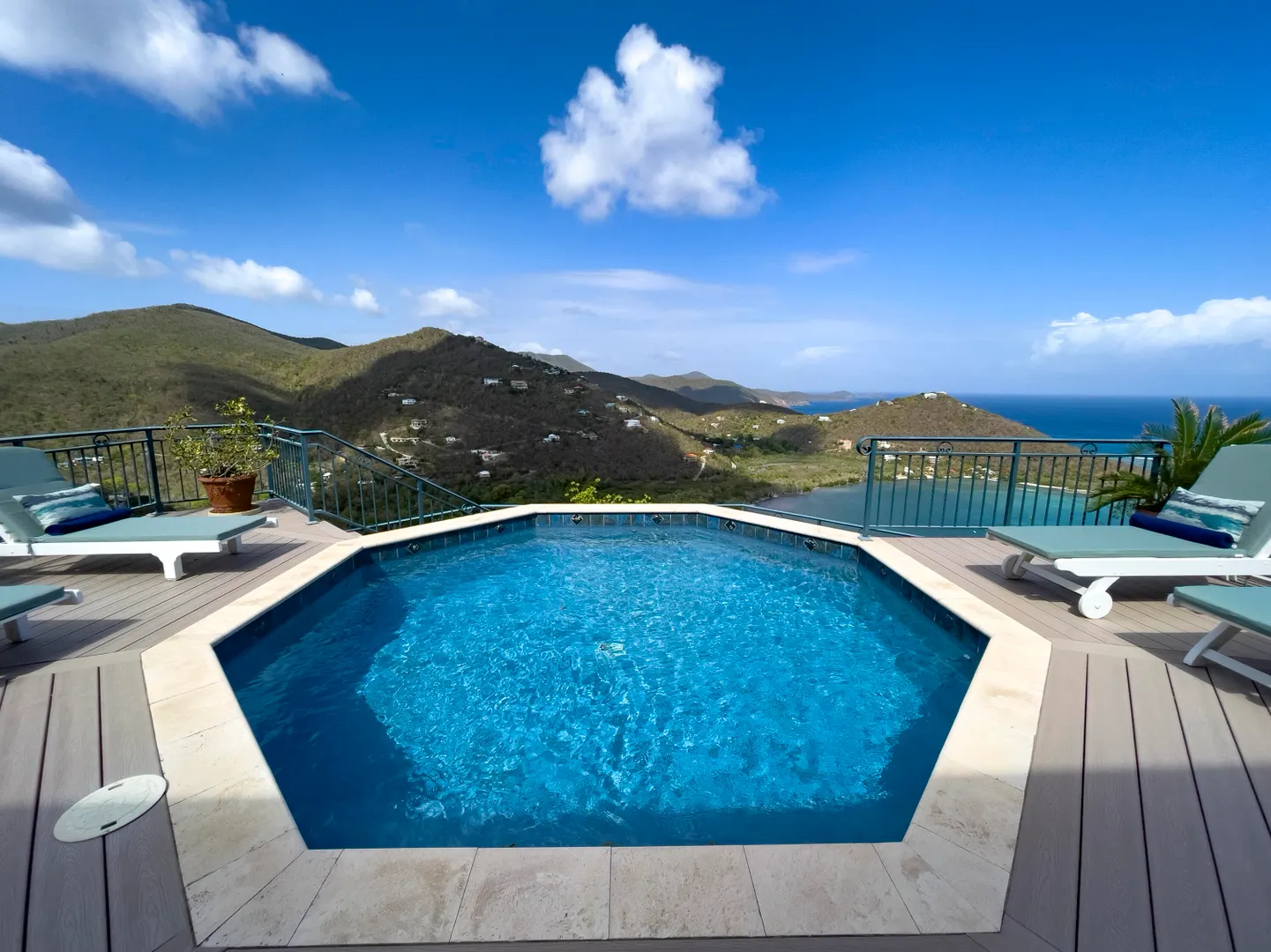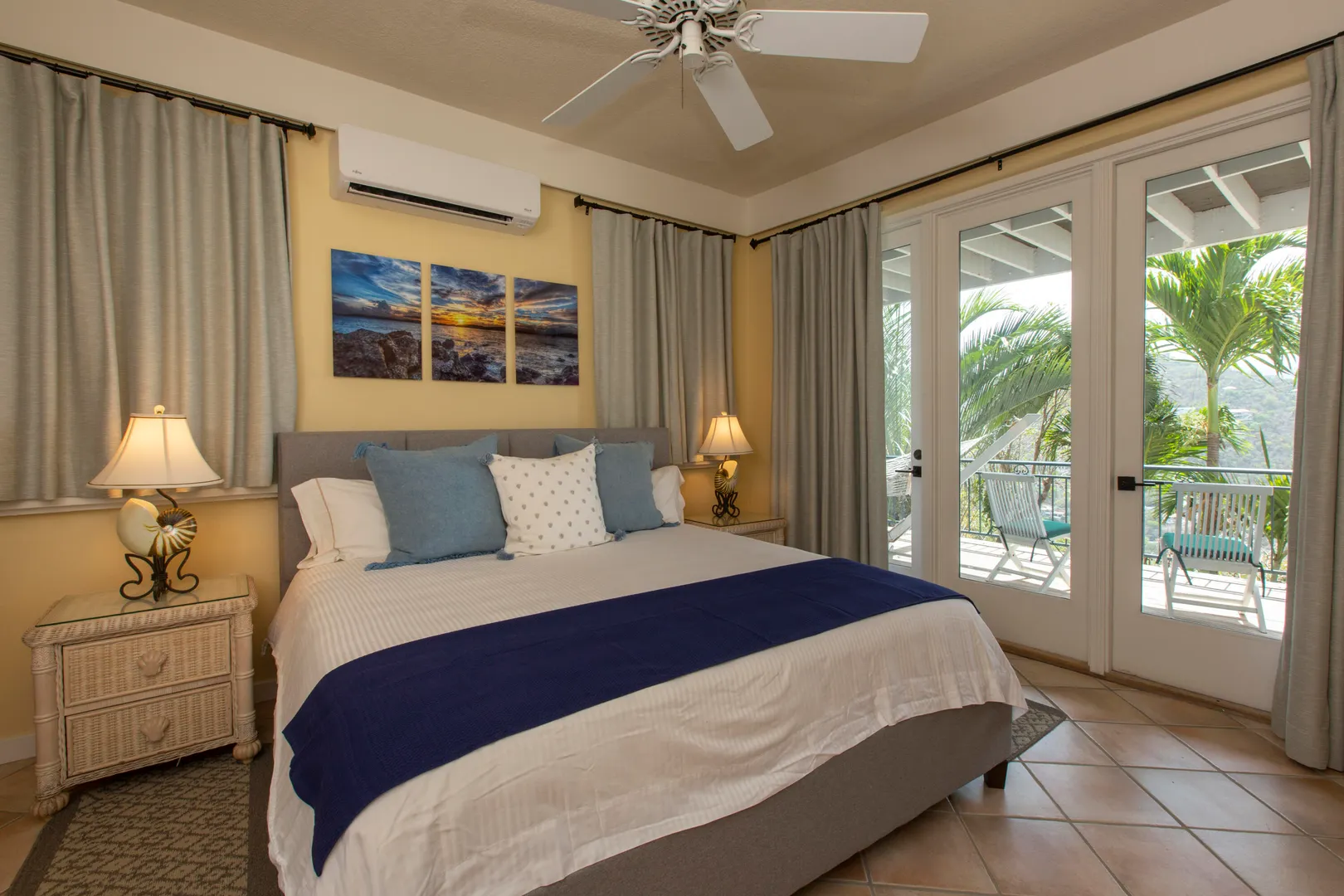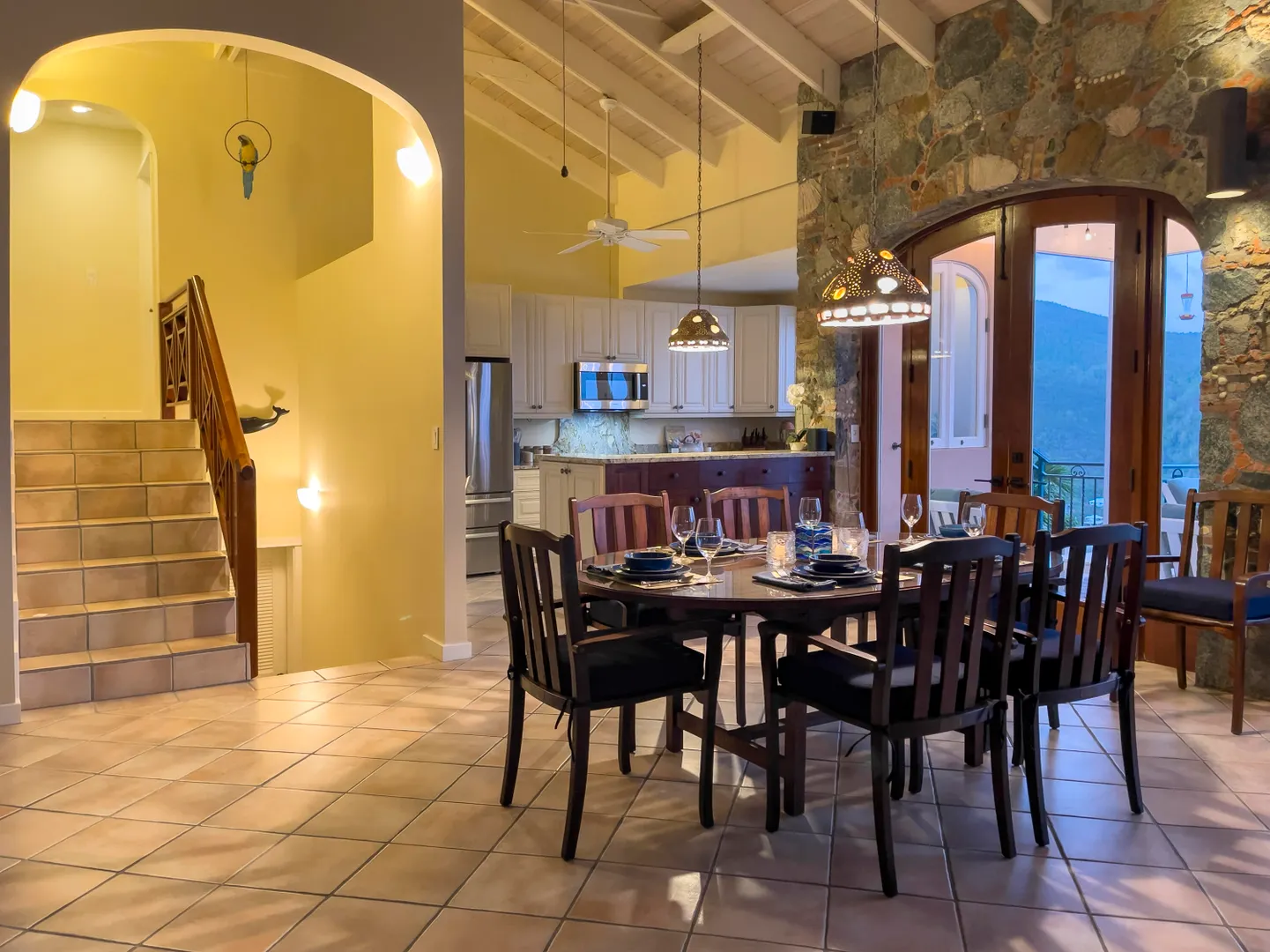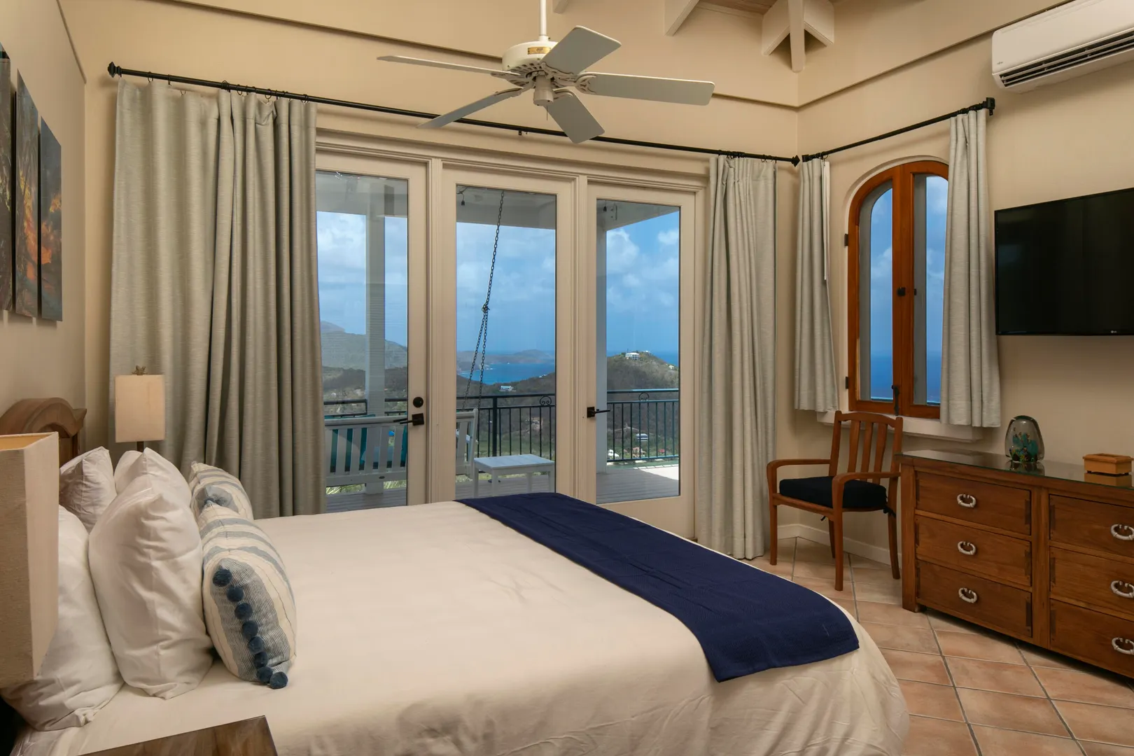 Welcome to WindSong Villa! This enchanting property showcases classic island luxury with modern conveniences. Beginning with the inviting entryway, a warm welcome is complete with intricate arched native stone and brickwork that leads to jaw-dropping views of Fish Bay and the lush green hills of The VI National Park. The views greet you immediately as you enter the front door and continues throughout every room of this lovely home. Framed by large mahogany doors, WindSong Villa can be fully opened to the cooling breezes and lulling ocean waves, or closed up to the comfort of air conditioning while enjoying a cocktail at the luxurious brand new Mahogany wet bar.