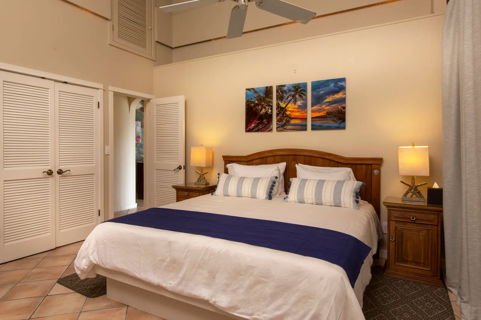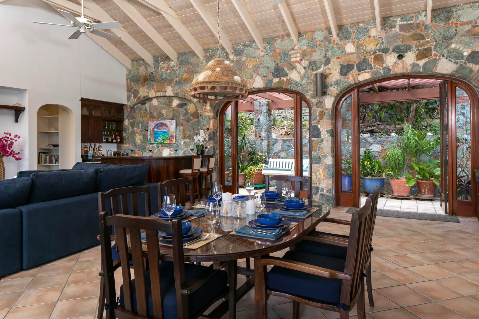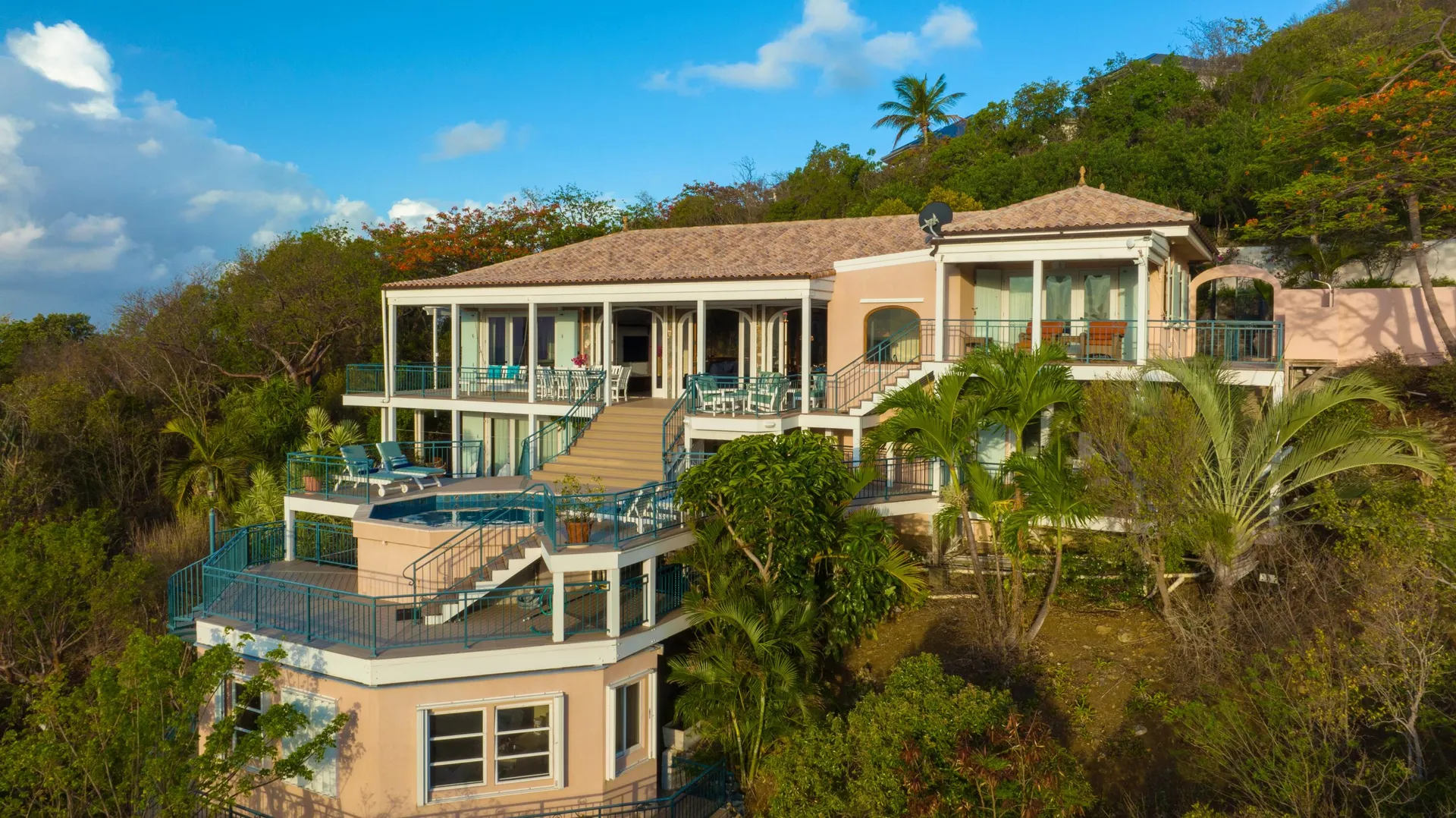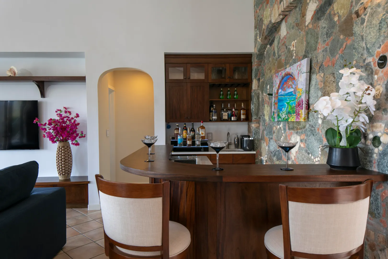 Welcome to WindSong Villa! This enchanting property showcases classic island luxury with modern conveniences. Beginning with the inviting entryway, a warm welcome is complete with intricate arched native stone and brickwork that leads to jaw-dropping views of Fish Bay and the lush green hills of The VI National Park. The views greet you immediately as you enter the front door and continues throughout every room of this lovely home. Framed by large mahogany doors, WindSong Villa can be fully opened to the cooling breezes and lulling ocean waves, or closed up to the comfort of air conditioning while enjoying a cocktail at the luxurious brand new Mahogany wet bar.