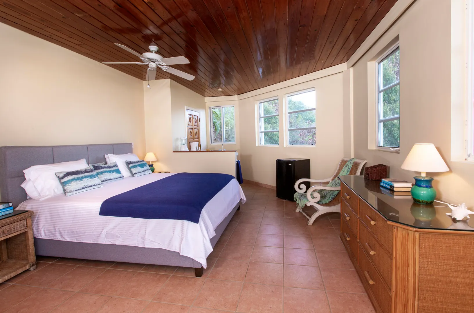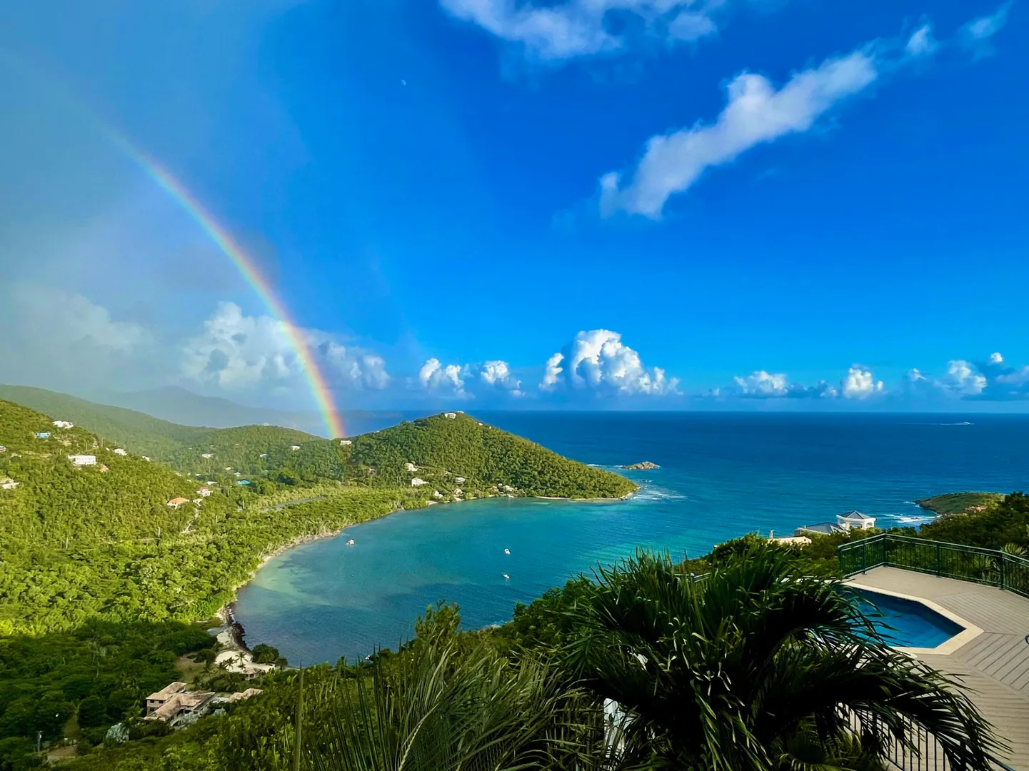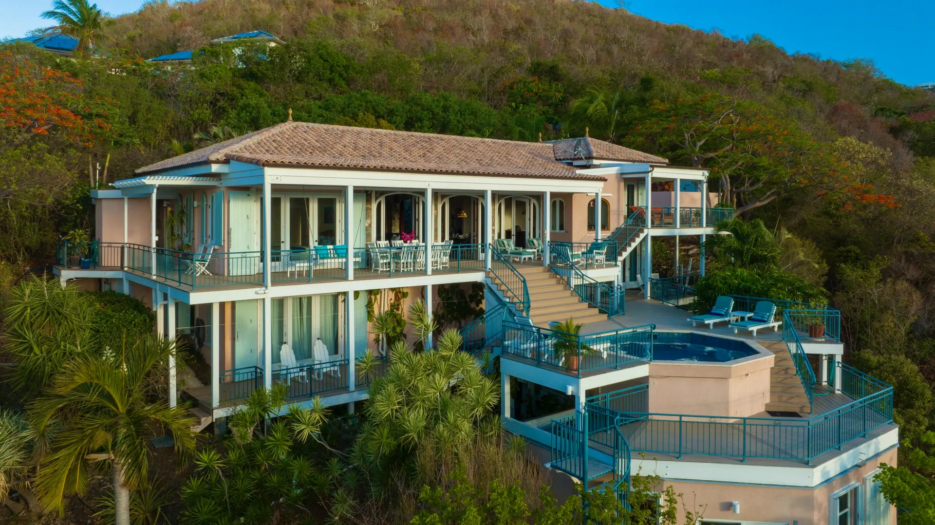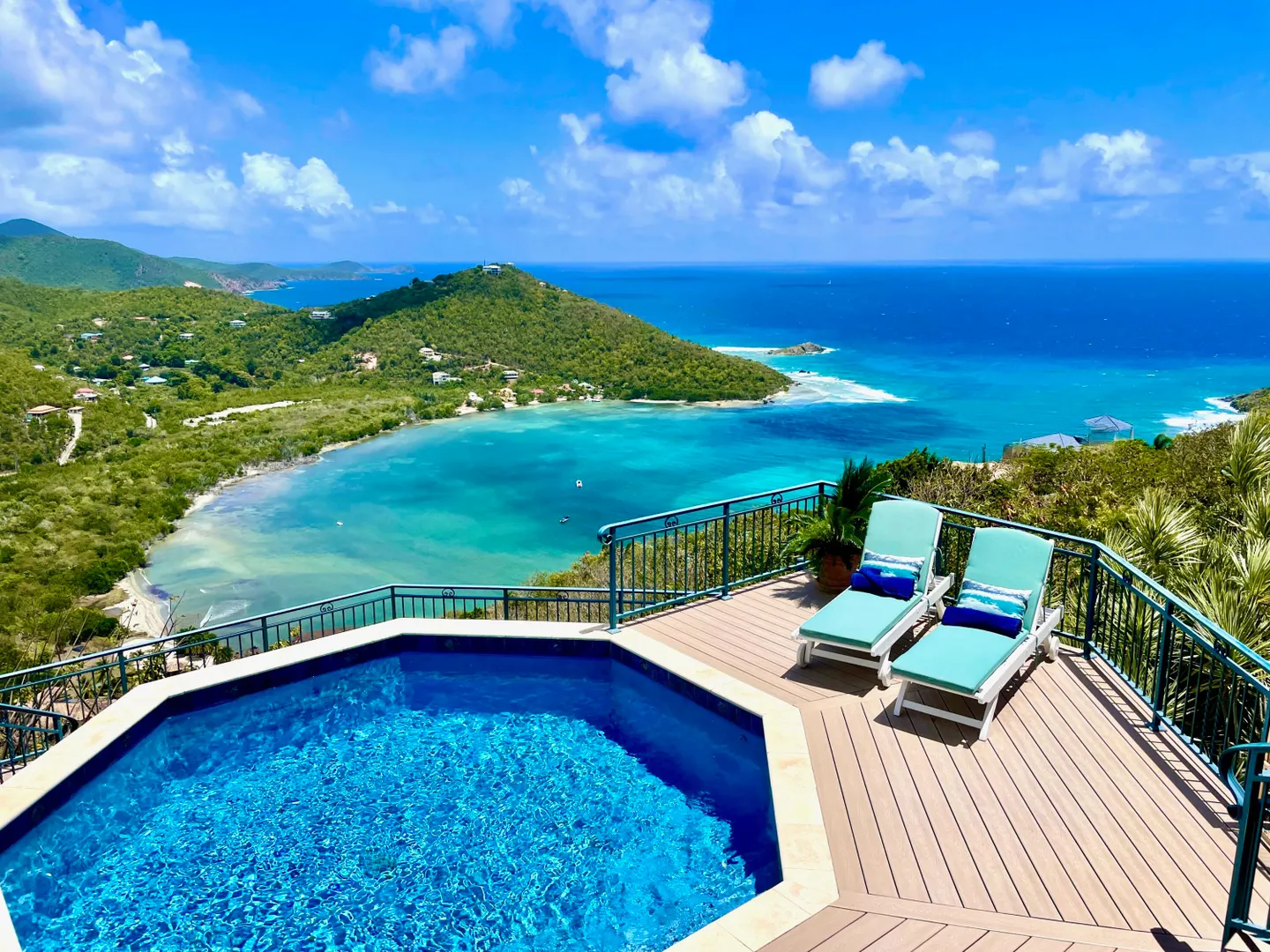Welcome to WindSong Villa! This enchanting property showcases classic island luxury with modern conveniences. Beginning with the inviting entryway, a warm welcome is complete with intricate arched native stone and brickwork that leads to jaw-dropping views of Fish Bay and the lush green hills of The VI National Park. The views greet you immediately as you enter the front door and continues throughout every room of this lovely home. Framed by large mahogany doors, WindSong Villa can be fully opened to the cooling breezes and lulling ocean waves, or closed up to the comfort of air conditioning while enjoying a cocktail at the luxurious brand new Mahogany wet bar.