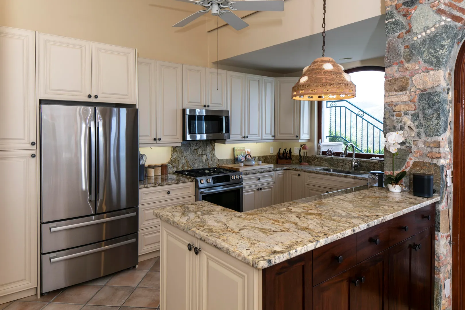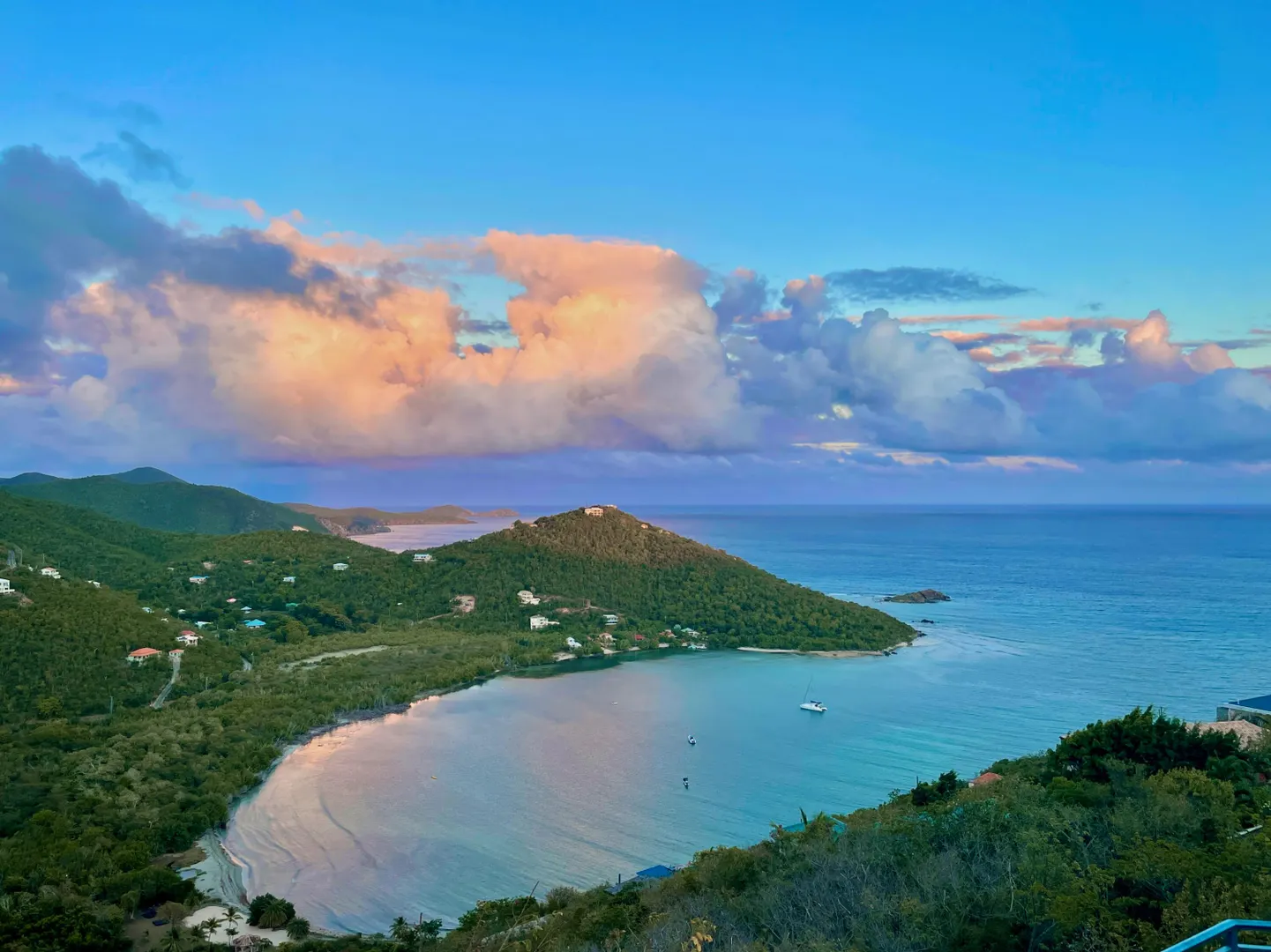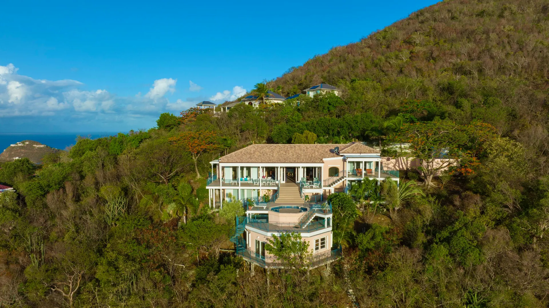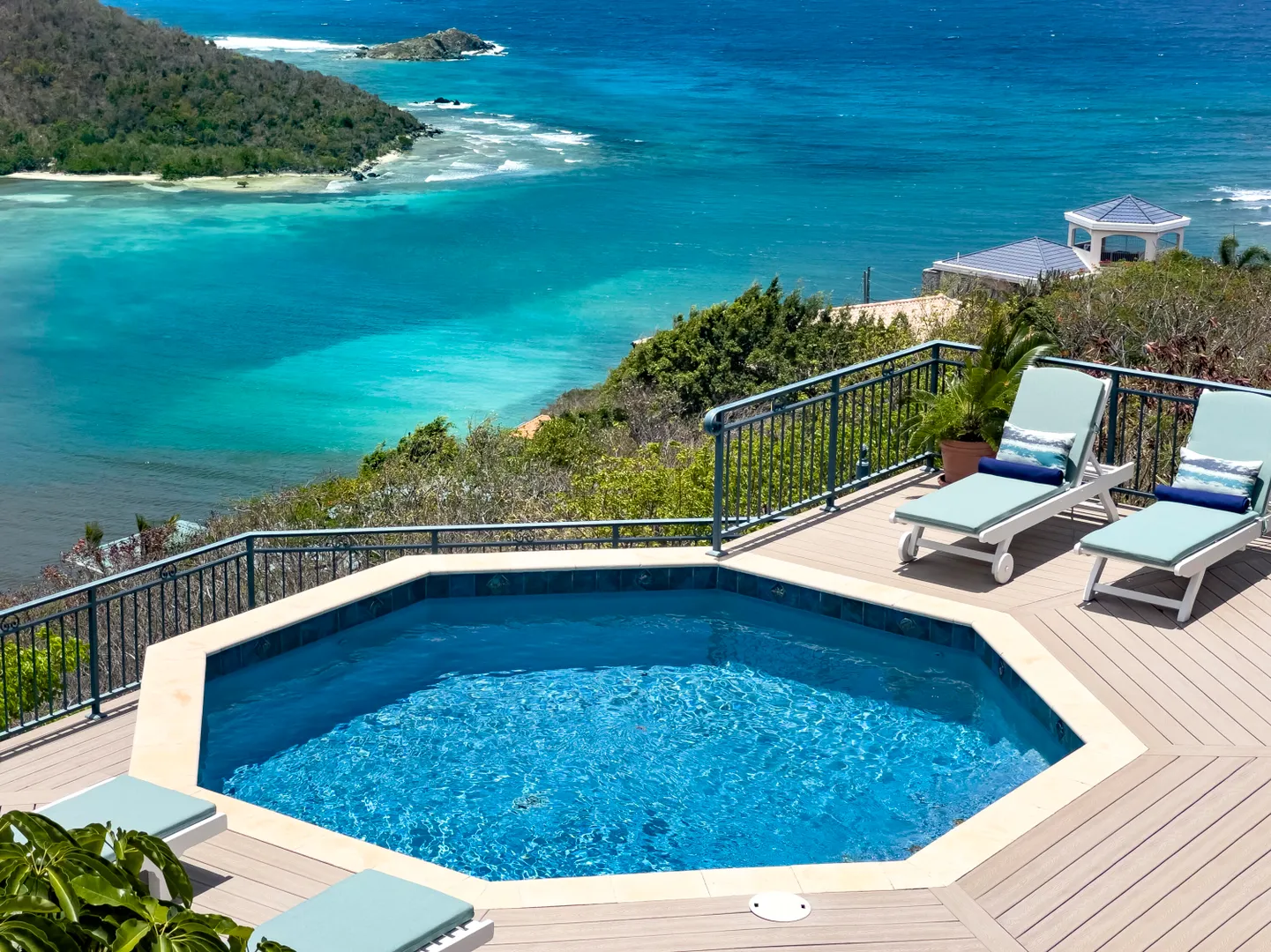 Welcome to WindSong Villa! This enchanting property showcases classic island luxury with modern conveniences. Beginning with the inviting entryway, a warm welcome is complete with intricate arched native stone and brickwork that leads to jaw-dropping views of Fish Bay and the lush green hills of The VI National Park. The views greet you immediately as you enter the front door and continues throughout every room of this lovely home. Framed by large mahogany doors, WindSong Villa can be fully opened to the cooling breezes and lulling ocean waves, or closed up to the comfort of air conditioning while enjoying a cocktail at the luxurious brand new Mahogany wet bar.