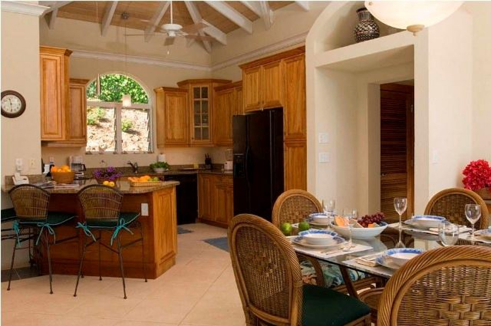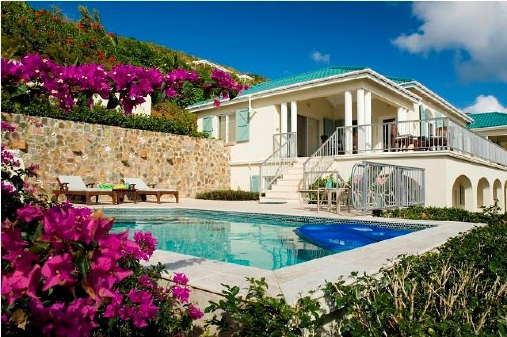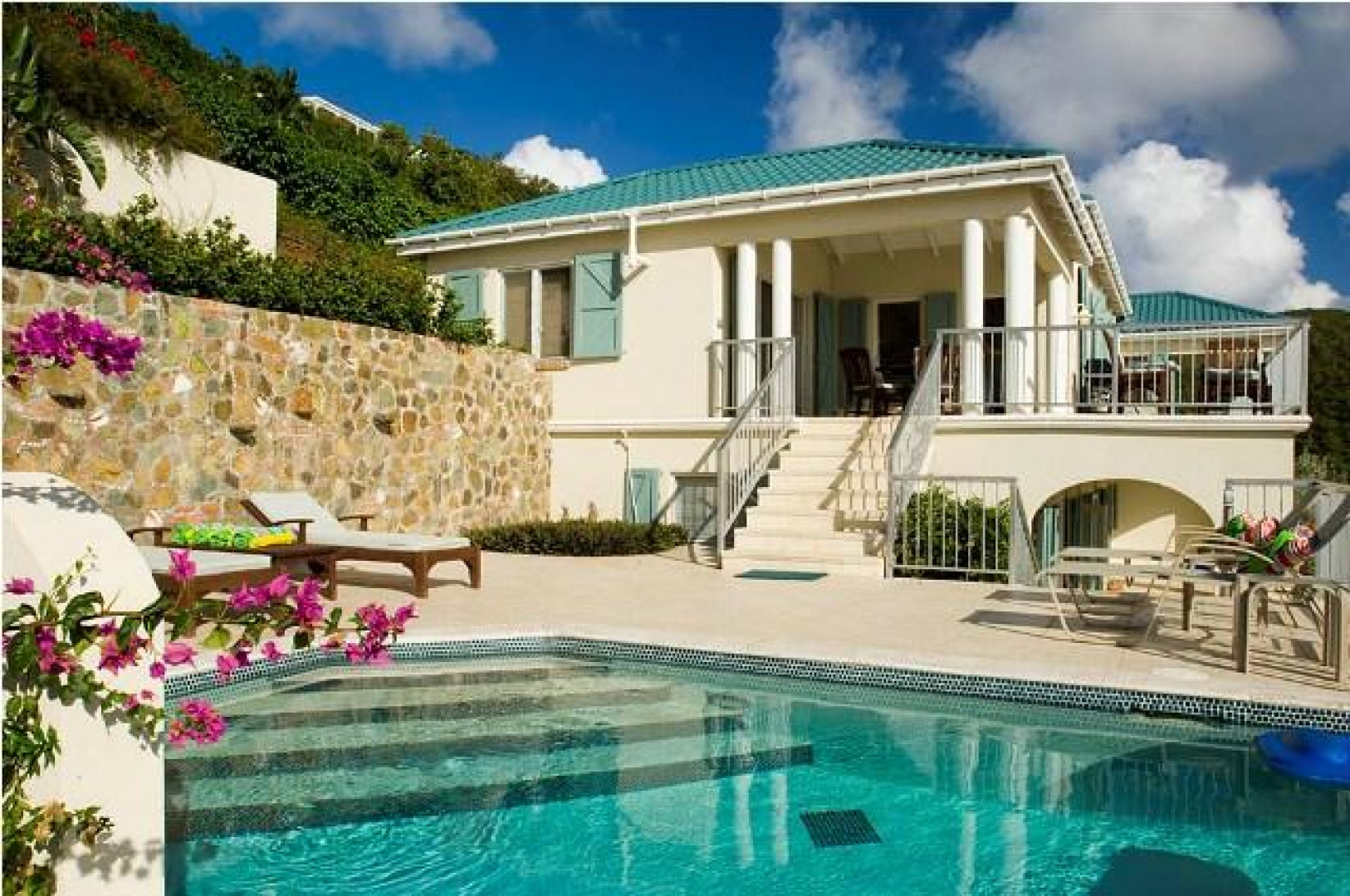 In the desirable upscale neighbrhood of Point Rendezvous, ''Villa Le Virage'' is a welcoming 4 bedroom, 4 bathroom, all masonry pool villa which offers excellent views east to Ram's Head, and south to St. Croix. This home sees incredible sunrises as well as moon rises! It features a generous light and airy open floor plan with expansive outdoor decks, beautiful island stonework, tasteful furnishings, tile floors and lushly landscaped grounds. Two bedrooms are on the upper level and two more are downstairs using an interior staircase! Perfect for families with children or multiple couples vacationing together.