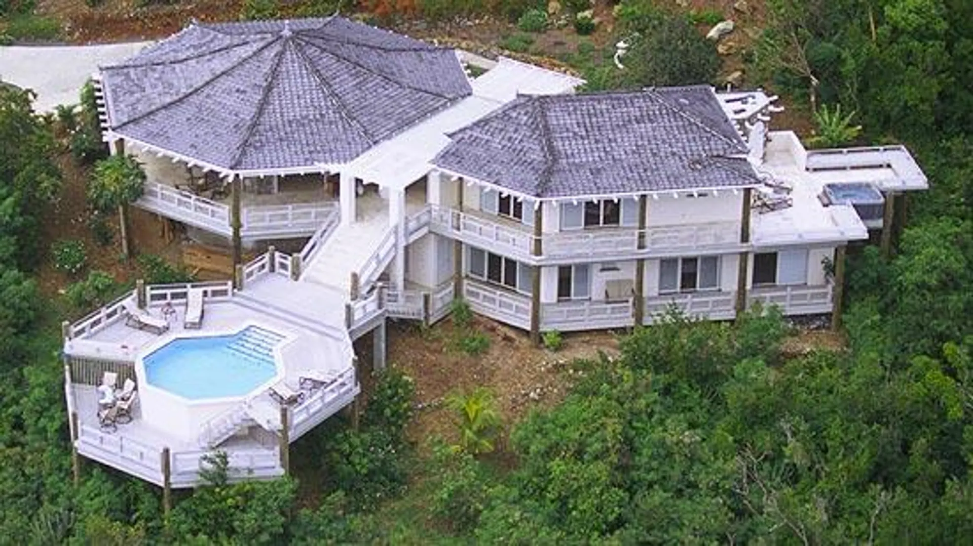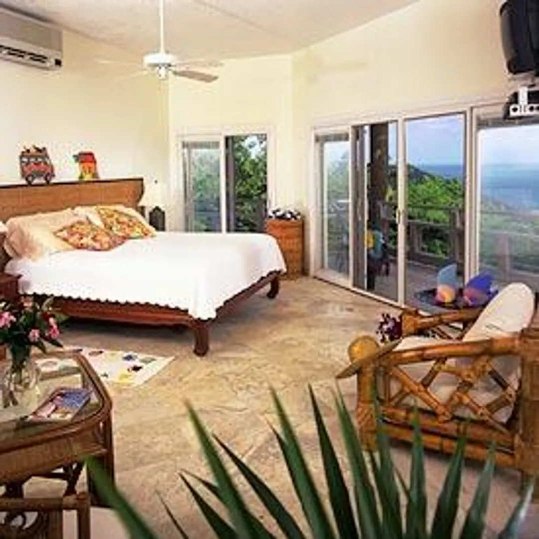 Dramatic, lovely,spacious. 'lost Horizon' sits high in the hills of Point Rendezvous. Breath taking views of Rendezvous Bay and the south shore. Appointed with a unique blend of Far eastern and Caribbean furniture. Accented thoughout with marble, granite and native stone. AC bedroom suites.