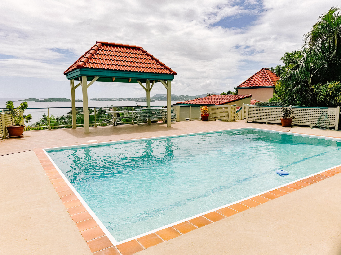 Welcome to Tranquility at Cruz Views, a 2-bedroom, 1-bathroom condo offering a rare chance to embrace island life. Located in the heart of St. John, Tranquility boasts panoramic views of Cruz Bay, the Caribbean waters, and lush hillsides. Just minutes from fine dining, boutique shopping, and beaches like Trunk Bay, this condo is your peaceful retreat. Tranquility is one of the larger condos at the complex as the owner expanded their interior living space to the side deck, which offers guests more areas to relax and spend time together. The living area is open floor plan and includes your living room, dining room, and kitchen. Enjoy the community pool, tropical gardens, and the beauty of island living. Whether as a part-time residence, vacationer, or rental property.