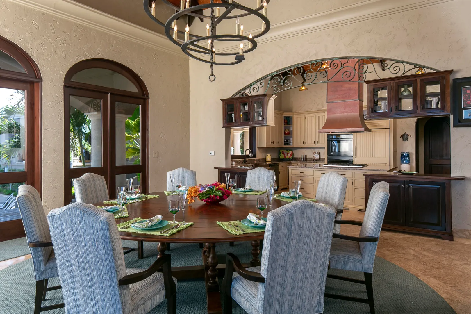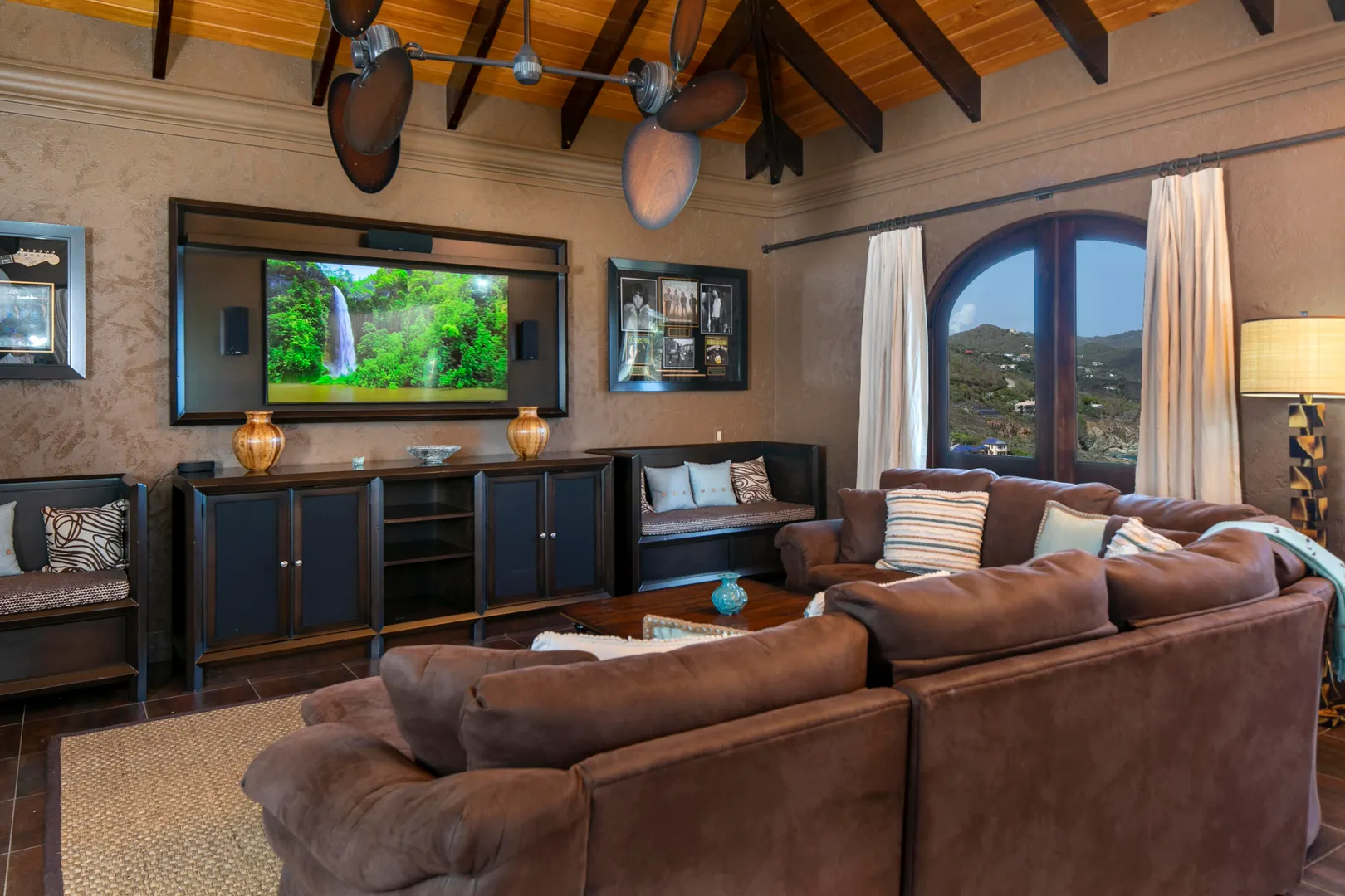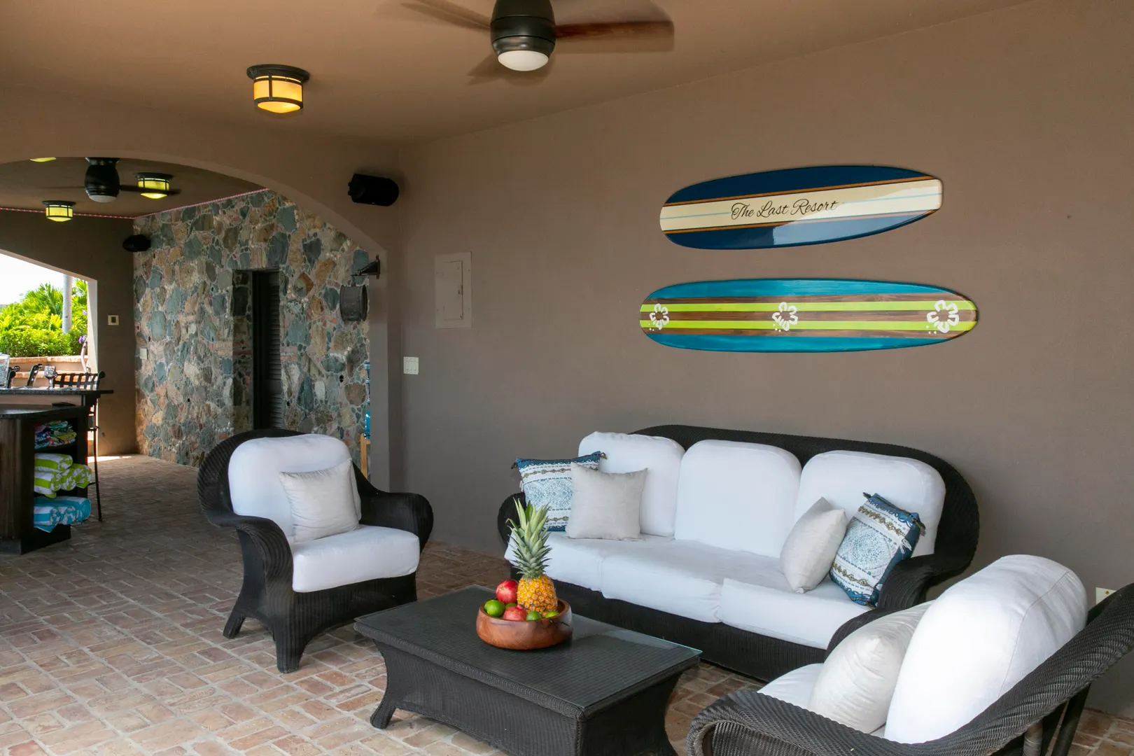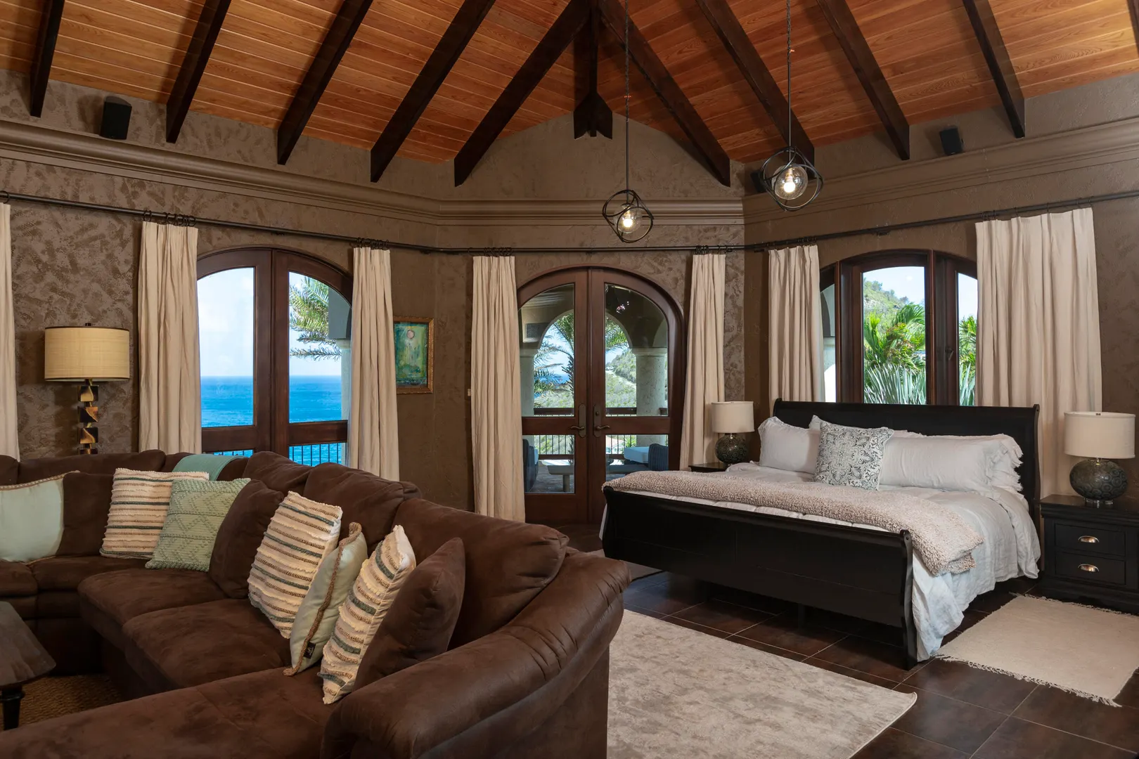 Introducing an unprecedented masterpiece of opulence in the heart of Chocolate Hole, this once private estate has been transformed into a breathtaking ultra-luxury resort style compound. This St. John icon has hosted galas and community events since its creation. The property welcomes you with a gated circular driveway, ensuring ample parking for residents and guests, complemented by an oversized garage for your convenience. Located on a knoll top, this property boasts 5 king suites, each with private balconies that offer panoramic views of the Caribbean Sea. A newly added generously-sized bunk room, complete with pool table and lounge area, is perfect for entertaining guests of all ages. Enjoy the serenity of not one but two stunning swimming pools and relish every sunset