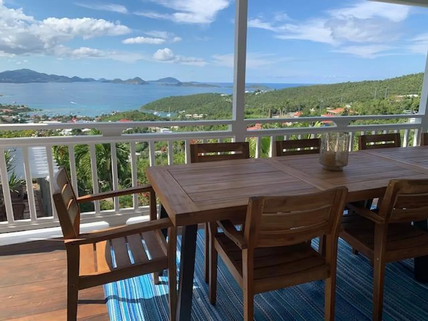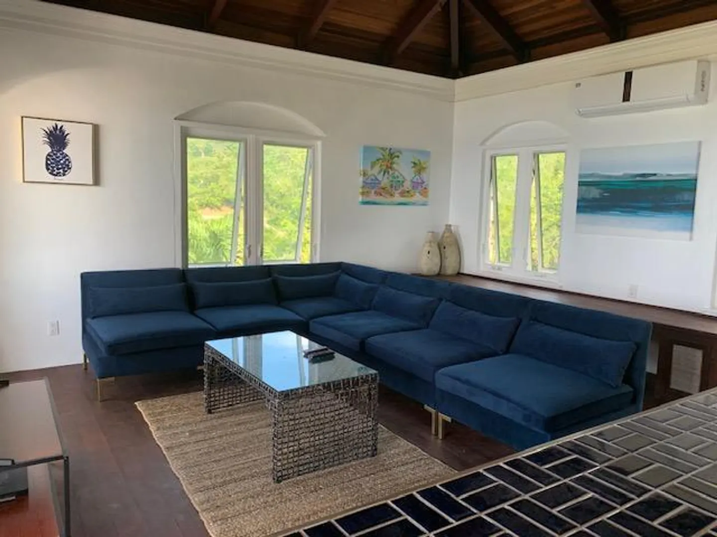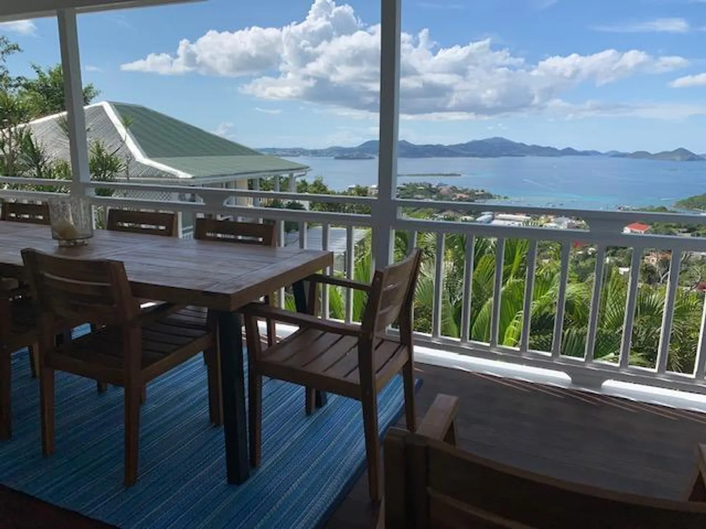 **Sale price did not include contents or rental business that were conveyed via Bill of Sale.*** Six Palms is an extensively updated and fully air conditioned, masonry 5br 4.5ba villa that is comprised of a 3br 2.5ba main house and a 2br 2ba guesthouse. The private and secluded location offers panoramic water and sunset views from Vieques to Lovango Cay. Each house has separate parking areas entries allowing houses to be used together or separately. There is also a dipping pool and sundeck. Great room and covered dining gallery features tropical hardwood floors and vaulted teak ceilings. Windstorm resistant windows and sliding glass doors in main house.Fantastic opportunity to rent together and separately, occupy one home and rent the other or occupy both homes. Walking distance to CruzSeller is licensed realtor.