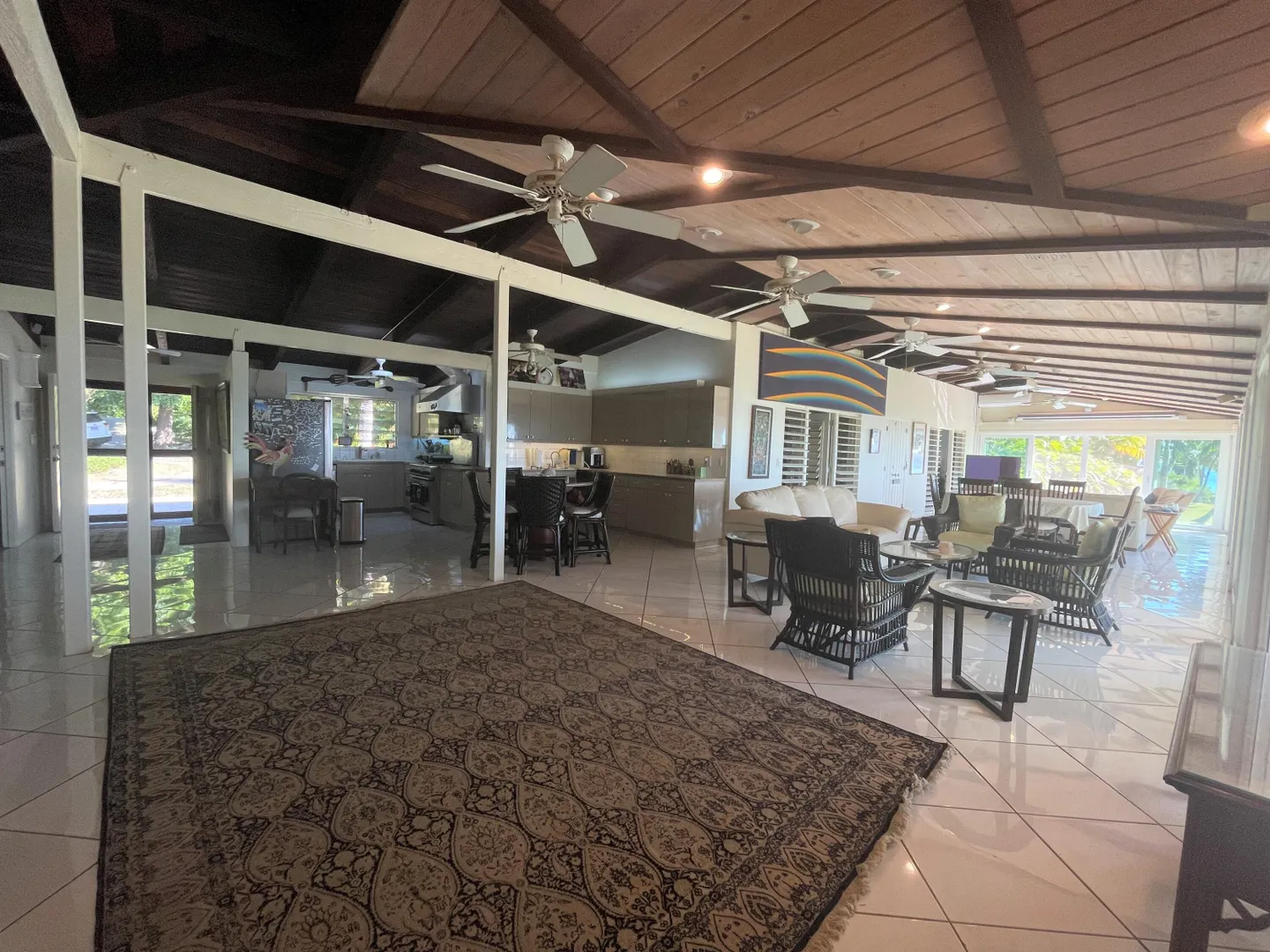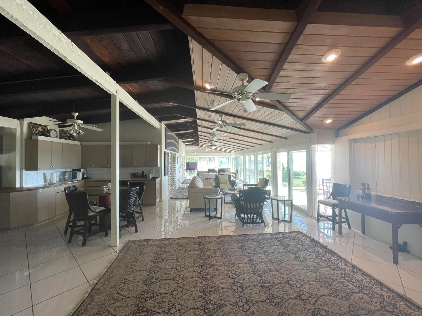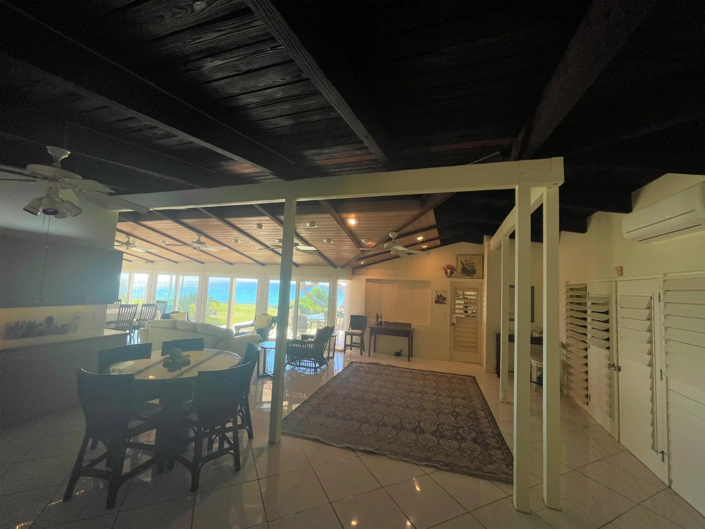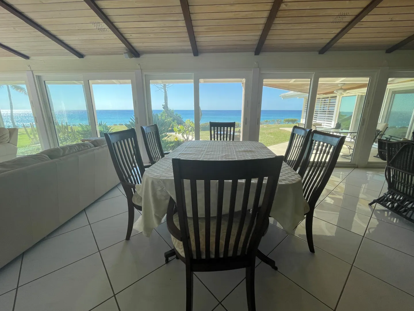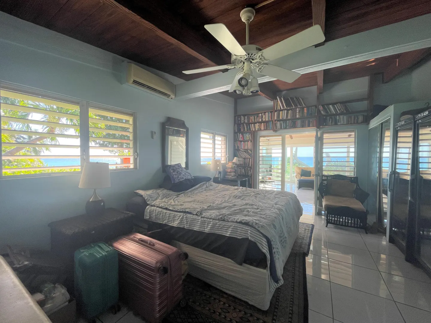 Enjoy panoramic unobstructed views from this beautiful waterfront home on 3.4 acres. A wall of impact rated glass doors offer sea views and complement the huge open floor plan. Two offices and 4 master bedrooms with sea views, each with bathrooms ensuite, make this home a spectacular experience. Over 40 mature Royal palms and coconut palms, lush landscaping, a lilly pond and water features invite you to stroll the grounds, take in the soft breezes and calm Caribbean waters of the West End. This quiet sanctuary near the rainforest is like a private retreat. Home is built over 20 ft above sea level for extra peace of mind. Gated with dense foliage along the road and motion lights for privacy and security. Solar power with 105KW diesel generator backup. 3 lots with development potential.