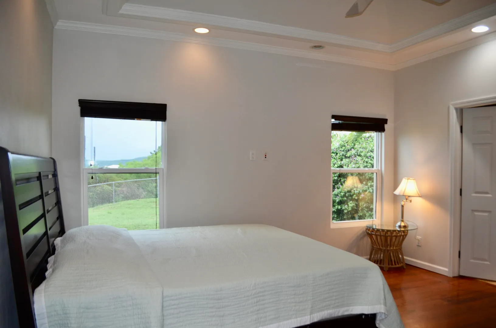 Fully air conditioned 3 bedroom, 2 1/2 bath home sits on a lovely lot with a direct Buck Island view. Large kitchen w/ stainless steel appliances, black granite countertops and lots of cabinet space opens to the dining and living rooms flooded with natural light from the french doors and skylights. Enjoy the private main bedroom with en suite, walk-in closet w/ built-in shelving and 2 additional bedrooms with a shared full bath. Fenced yard, cool back patio, laundry room and the coveted connected garage with direct access to the home. Bedrooms, living room and kitchen just repainted. Broadband, Dish and 1x/month cleaning included.