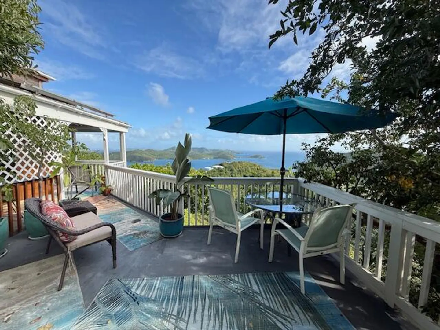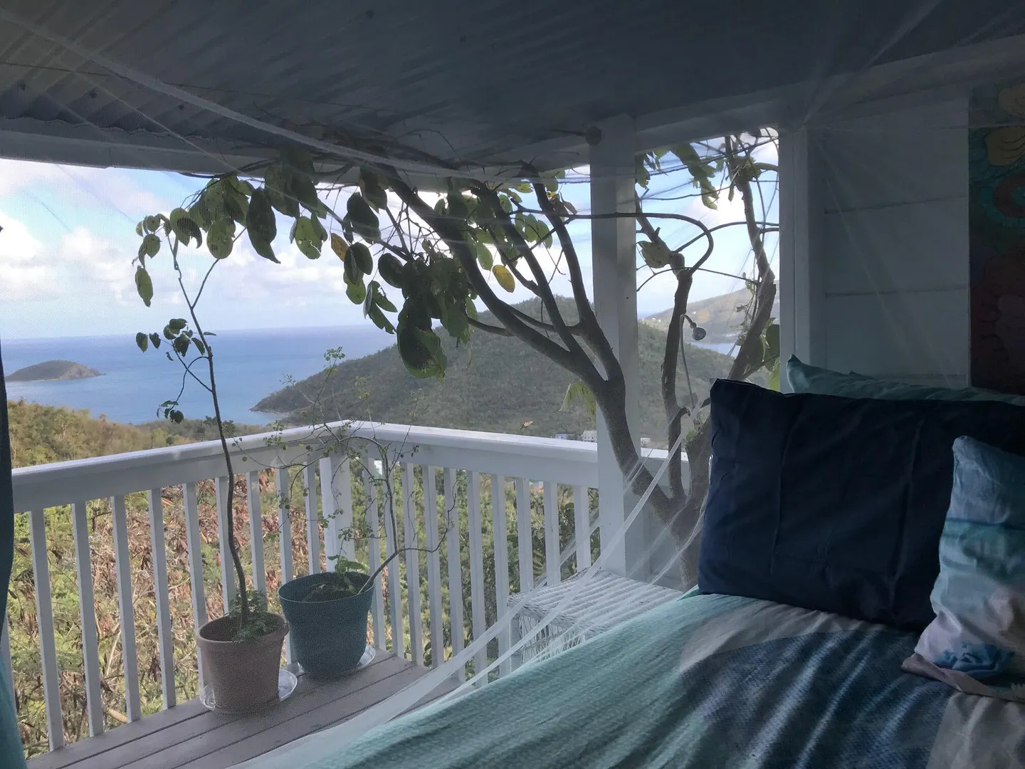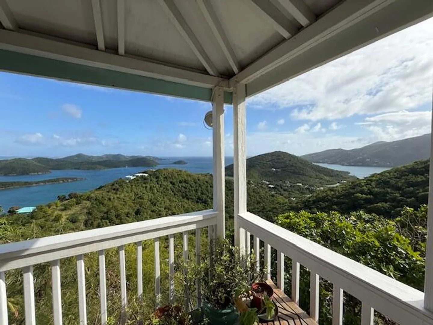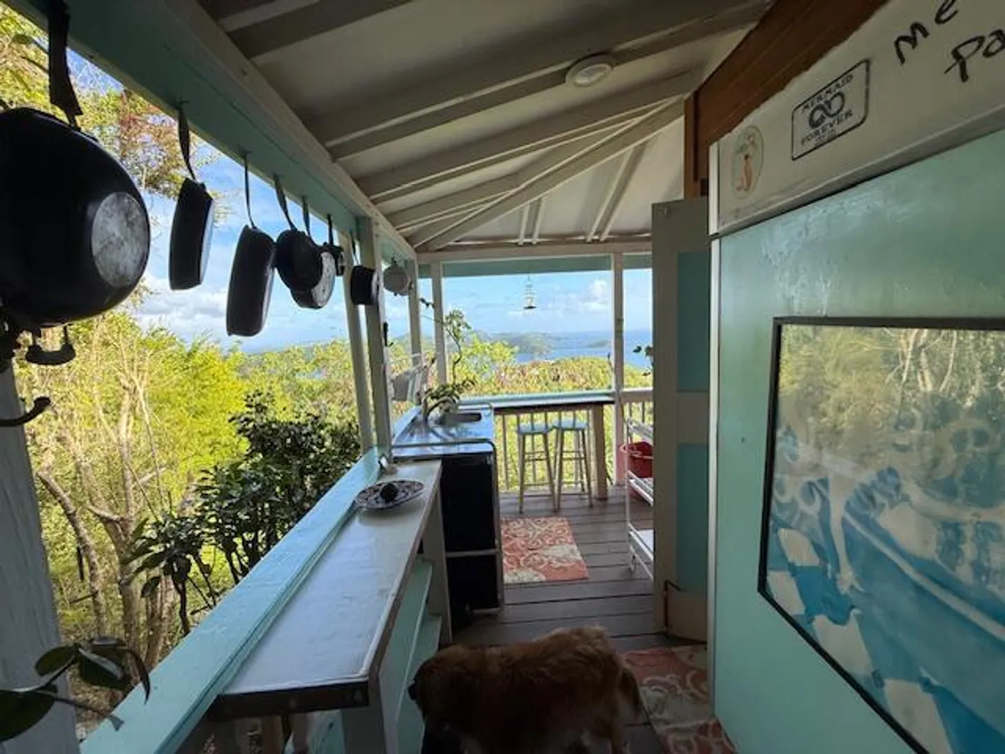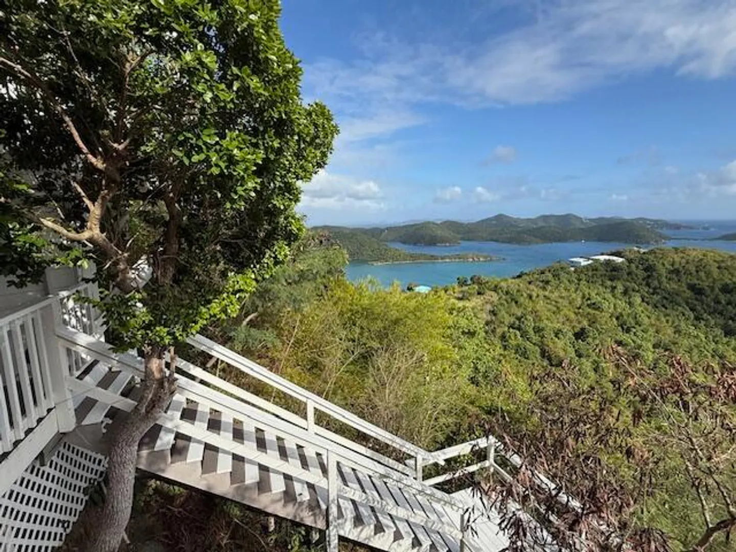 Tropical off-grid paradise on Johnny Horn Trail!Coral Bay Eco Retreat Cottage features a unique 2-bedroom, 2-bath concept designed for those with an adventurous spirit who value privacy, tranquility, and nature (4WD required).This zero-footprint retreat is fully solar powered and offers breathtaking views of the sea, Hurricane Hole, Coral Bay Harbor, and the British Virgin Islands stretching to Virgin Gorda. Enjoy spectacular sunrises, sunsets, and moonlit skies.Situated on a peaceful, private, and romantic half-acre lot adjacent to Virgin Islands National Park, the property is a hiker's dream. The layout includes a loft queen bedroom and a second open-air sleeping area, a spacious open deck nestled among the trees, and a screened main living space.The open-air Caribbean-style kitchen enhances the indoor-outdoor living experience. A full bath is located adjacent to the bedroom, with an additional half bath on the main level and an outdoor garden shower.