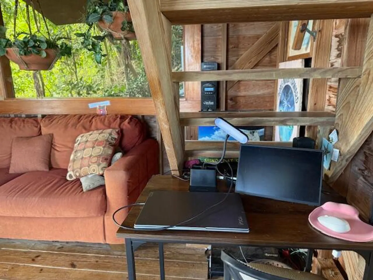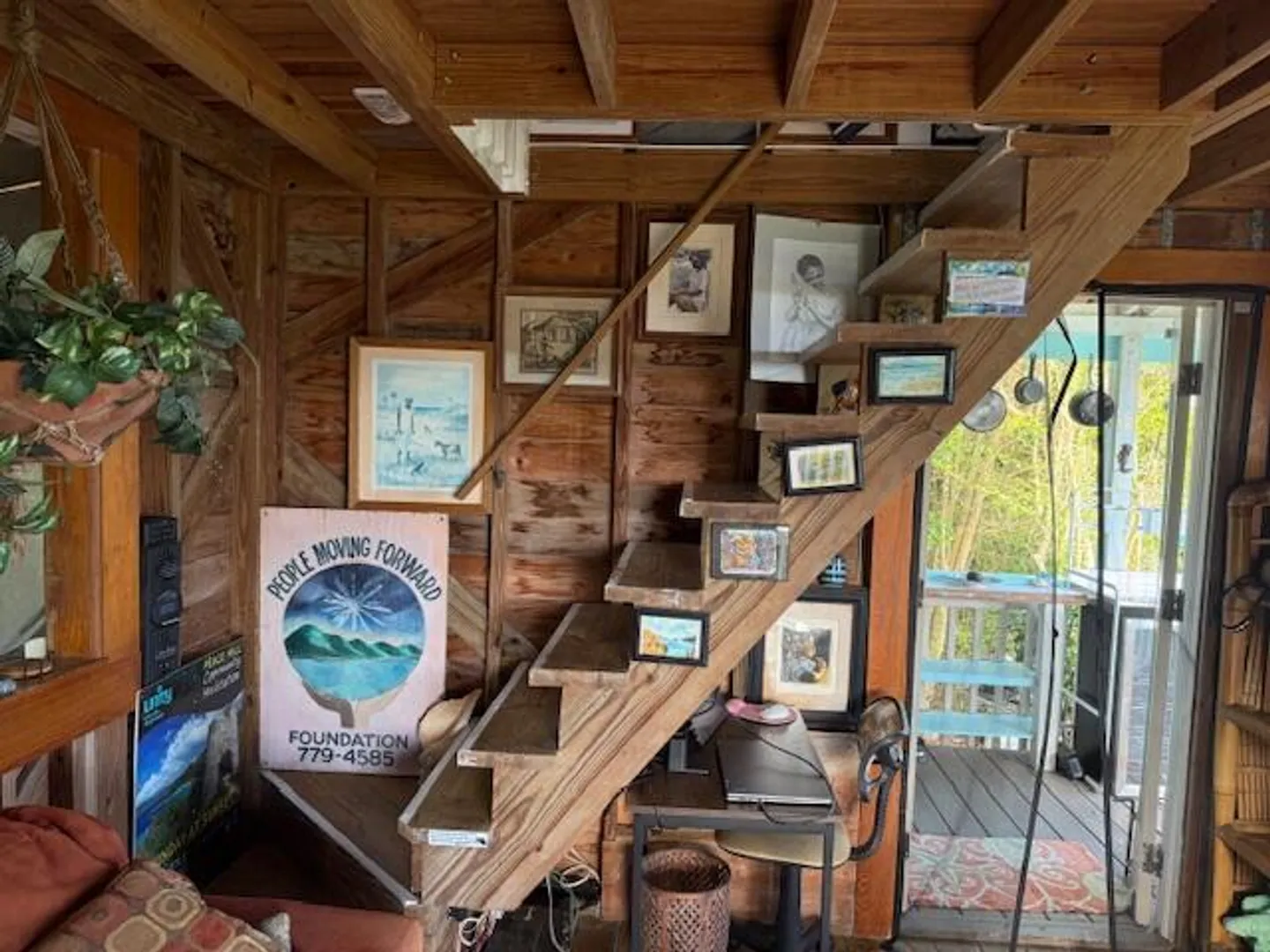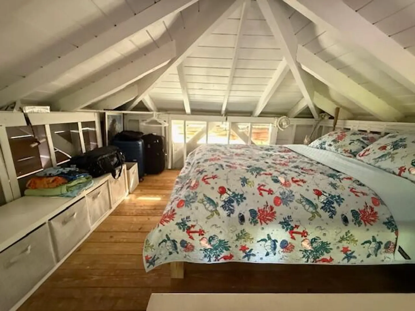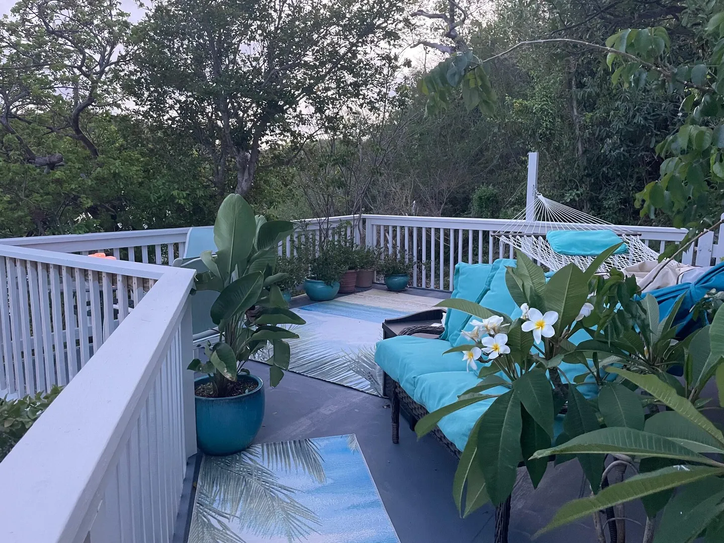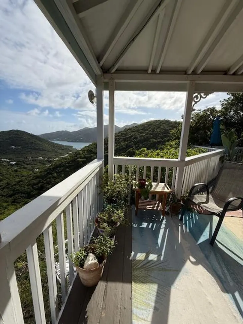 Tropical off-grid paradise on Johnny Horn Trail!Coral Bay Eco Retreat Cottage features a unique 2-bedroom, 2-bath concept designed for those with an adventurous spirit who value privacy, tranquility, and nature (4WD required).This zero-footprint retreat is fully solar powered and offers breathtaking views of the sea, Hurricane Hole, Coral Bay Harbor, and the British Virgin Islands stretching to Virgin Gorda. Enjoy spectacular sunrises, sunsets, and moonlit skies.Situated on a peaceful, private, and romantic half-acre lot adjacent to Virgin Islands National Park, the property is a hiker's dream. The layout includes a loft queen bedroom and a second open-air sleeping area, a spacious open deck nestled among the trees, and a screened main living space.The open-air Caribbean-style kitchen enhances the indoor-outdoor living experience. A full bath is located adjacent to the bedroom, with an additional half bath on the main level and an outdoor garden shower.