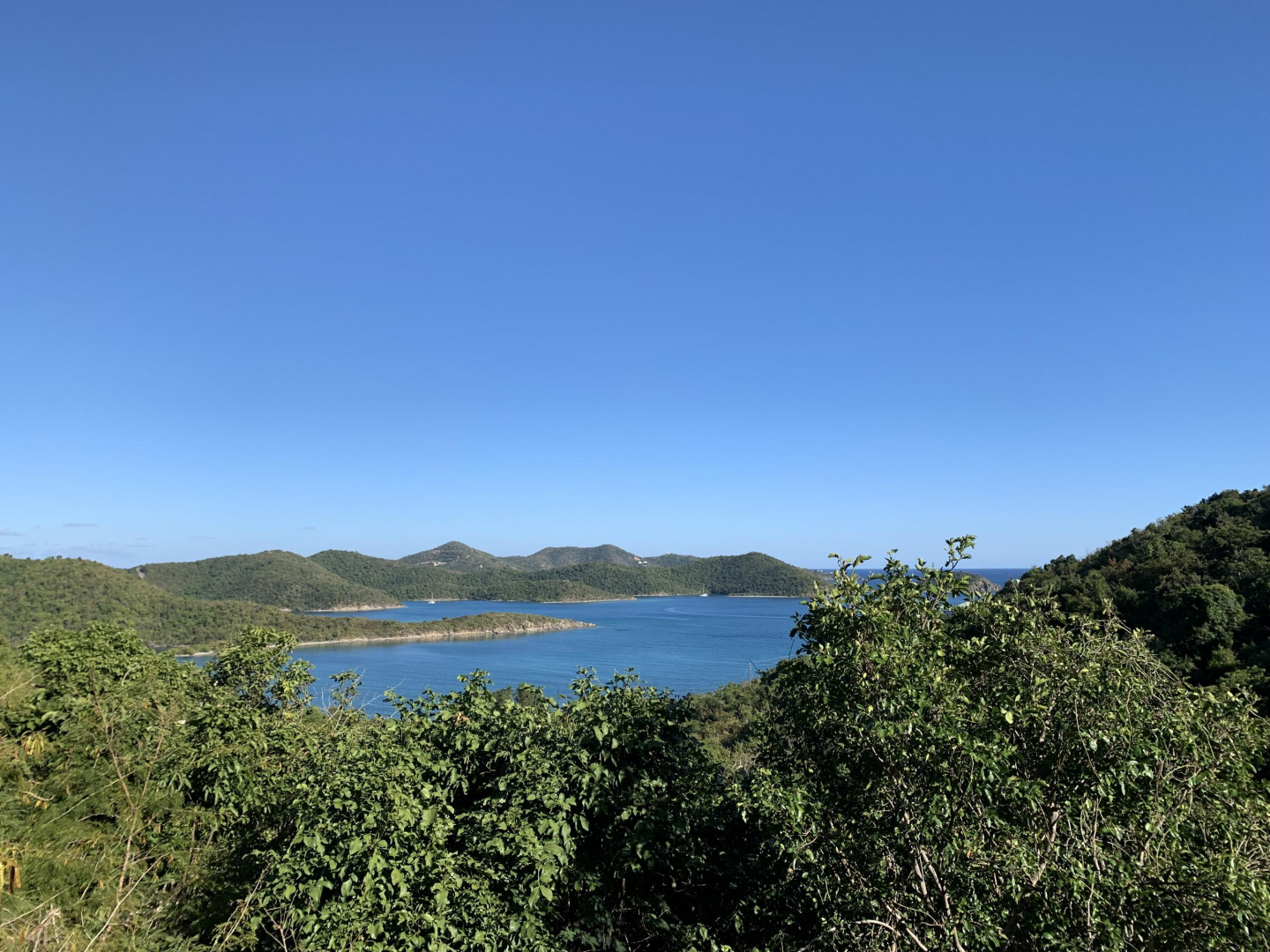 Unobstructed views towards Hurricane Hole, East End and Round bay from this 0.99 acre parcel with a masonry cistern in place. Easy access down the dirt road to the property / downhill build. Great opportunity to complete the dream home your way! A must see to appreciate.