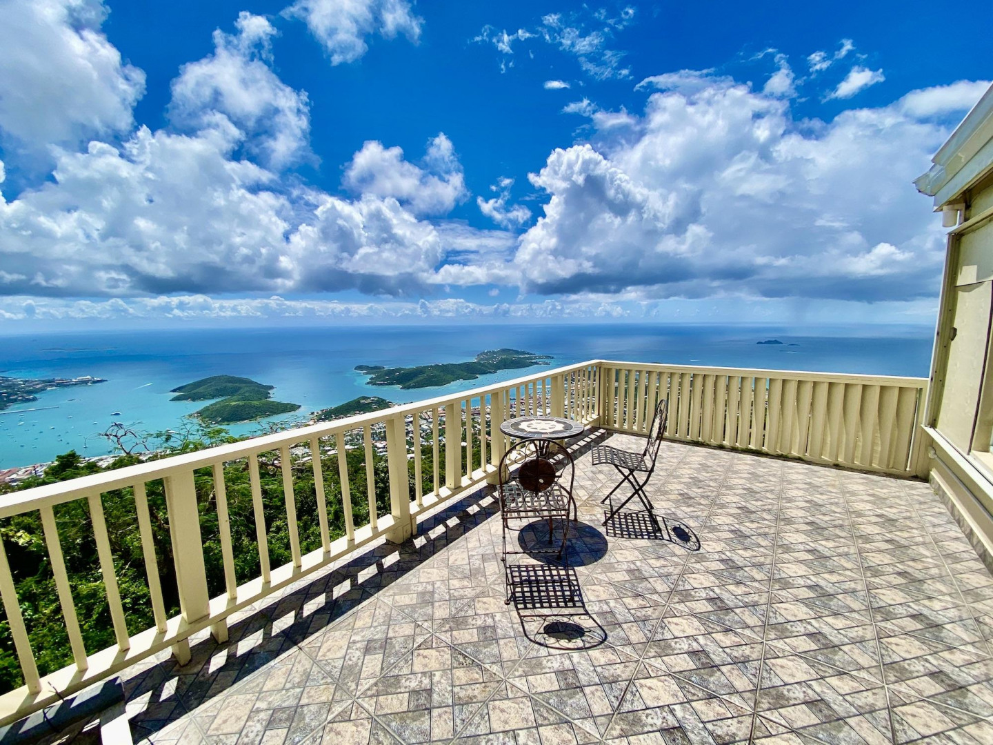 Spacious 3Bed-2bath Condo with Amazing Panoramic Ocean Views from St John to Puerto Rico on the highest point on St. Thomas. Furnished, washer & dryer and nice swimming pool area.
