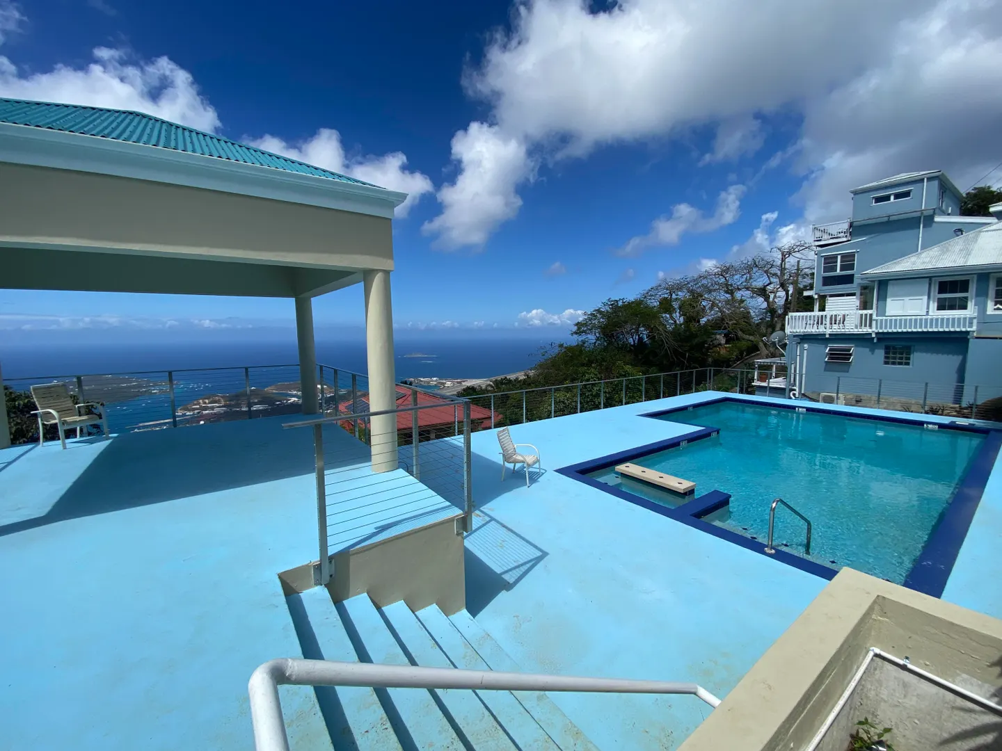 Rare three bedroom, two bathroom condo, at Mountain Top, located at the very end the complex. Sweeping down island and town/harbor views. Sit on your private porch as you see on of the most unique vantage points of St. Thomas, St. John and the BVI's.
