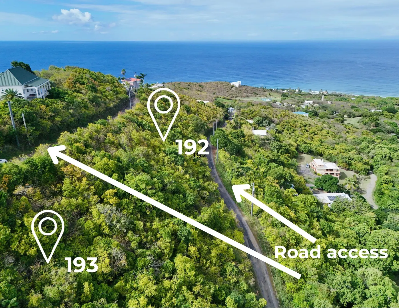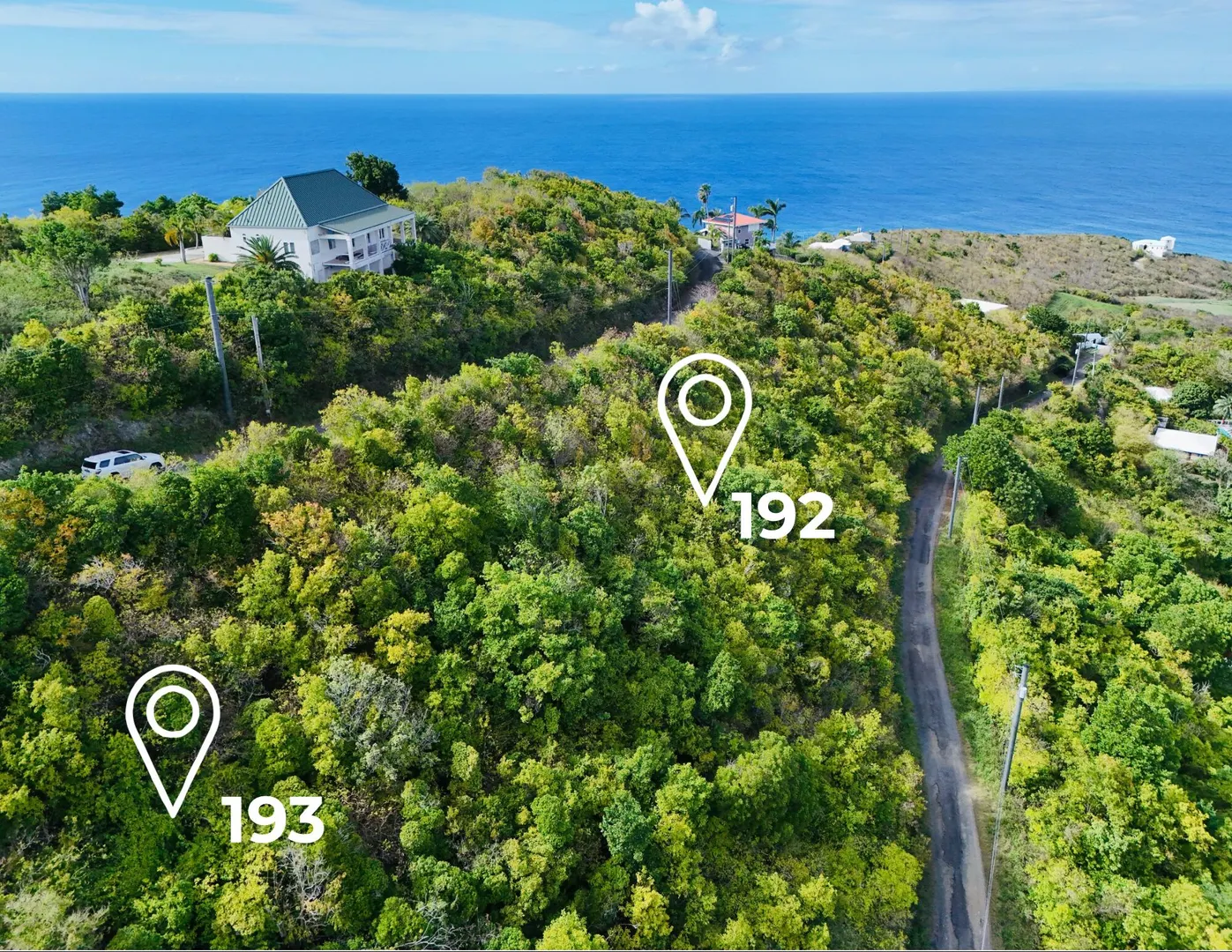 Panoramic views, steady tradewinds, and rolling green hills define 192 & 193 La Vallee on St. Croix's North Shore. These adjoining parcels total 0.8 acres and offer expansive vistas toward the east and the North Shore. The setting provides an ideal opportunity to build your dream home while enjoying cooling breezes year-round. With road access from both the upper and lower boundaries, the property allows for flexible design and building options. Located just minutes from Cane Bay's restaurants, world class diving, and hiking trails, and approximately 15 minutes to The Carambola Golf Course, this location offers a balance of natural beauty and convenience.